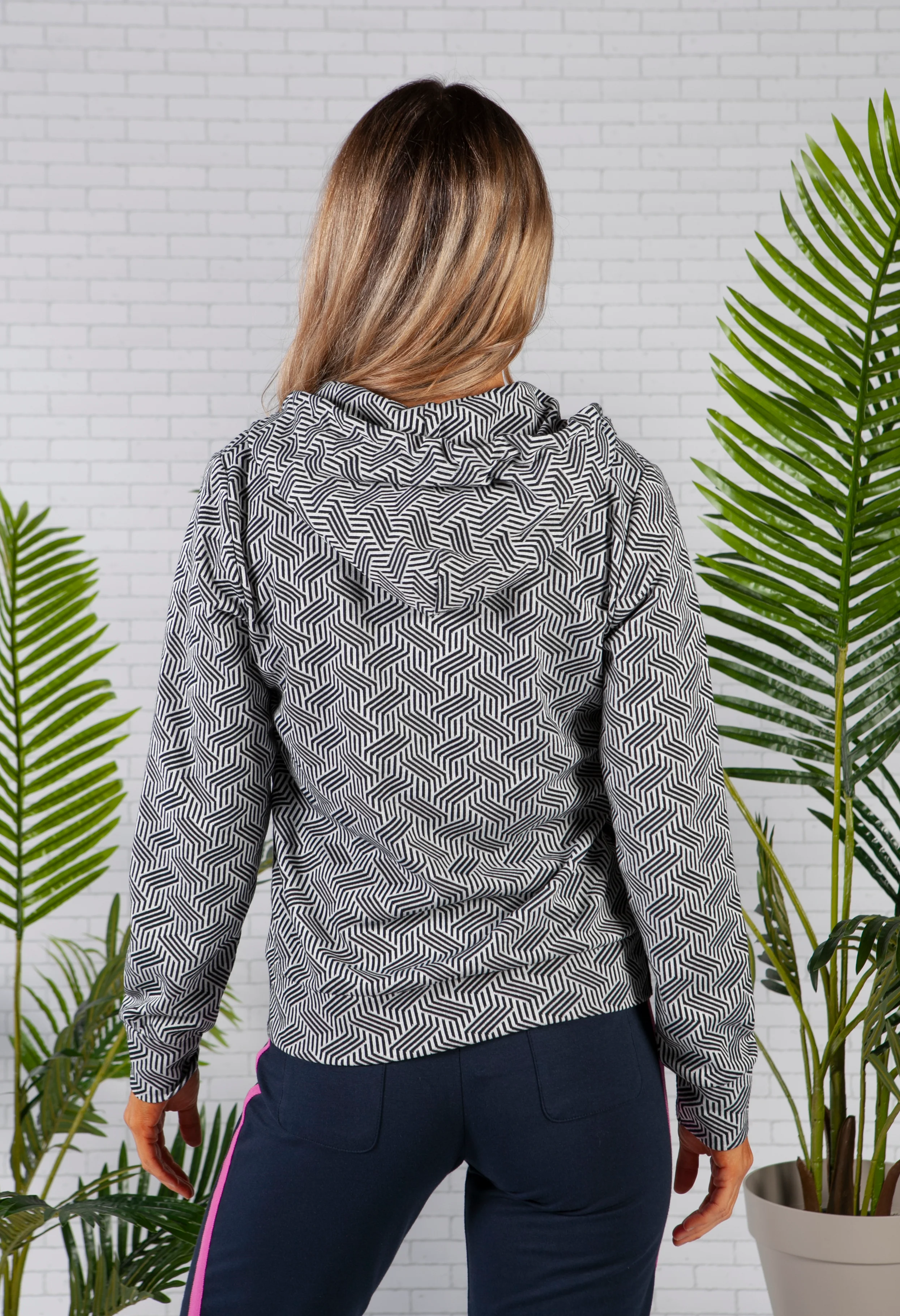 SOFT KNIT JACQUARD DESIGN ZIP UP HOODY