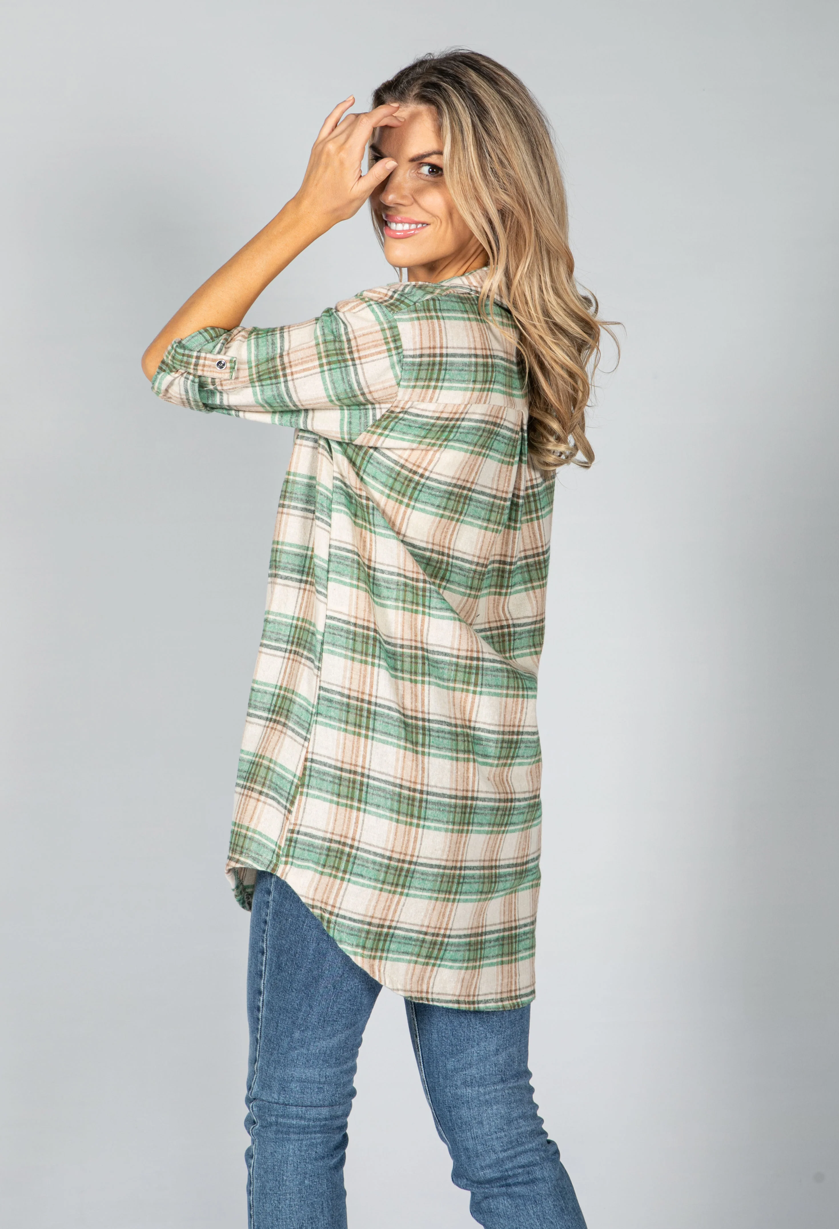 SOFT LINEN TOUCH TOP WITH INDIGO FLOWERS