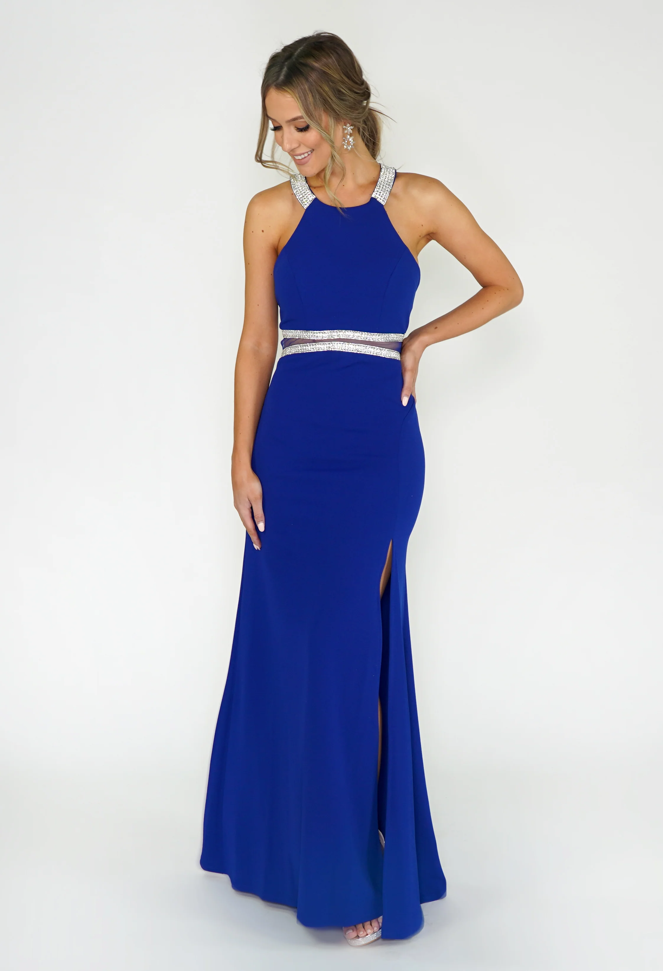 ROYAL BLUE DRESS WITH DIAMONTE DETAIL