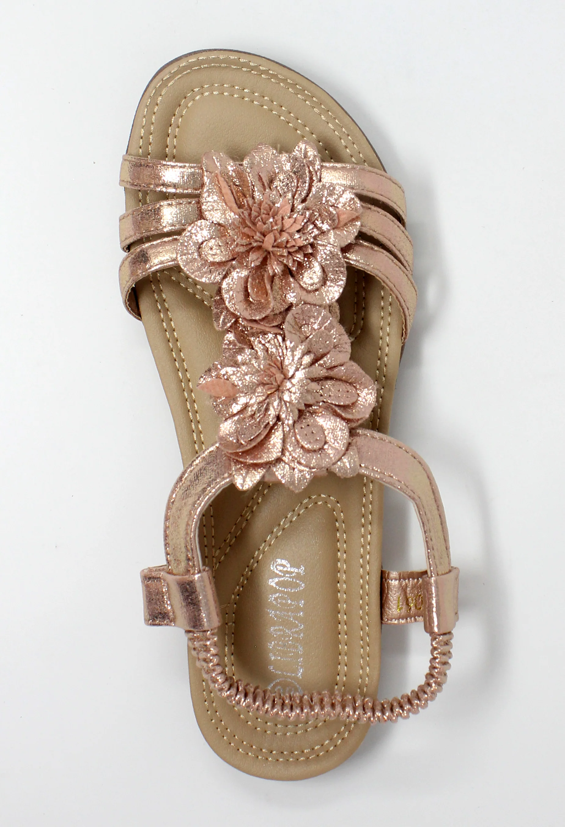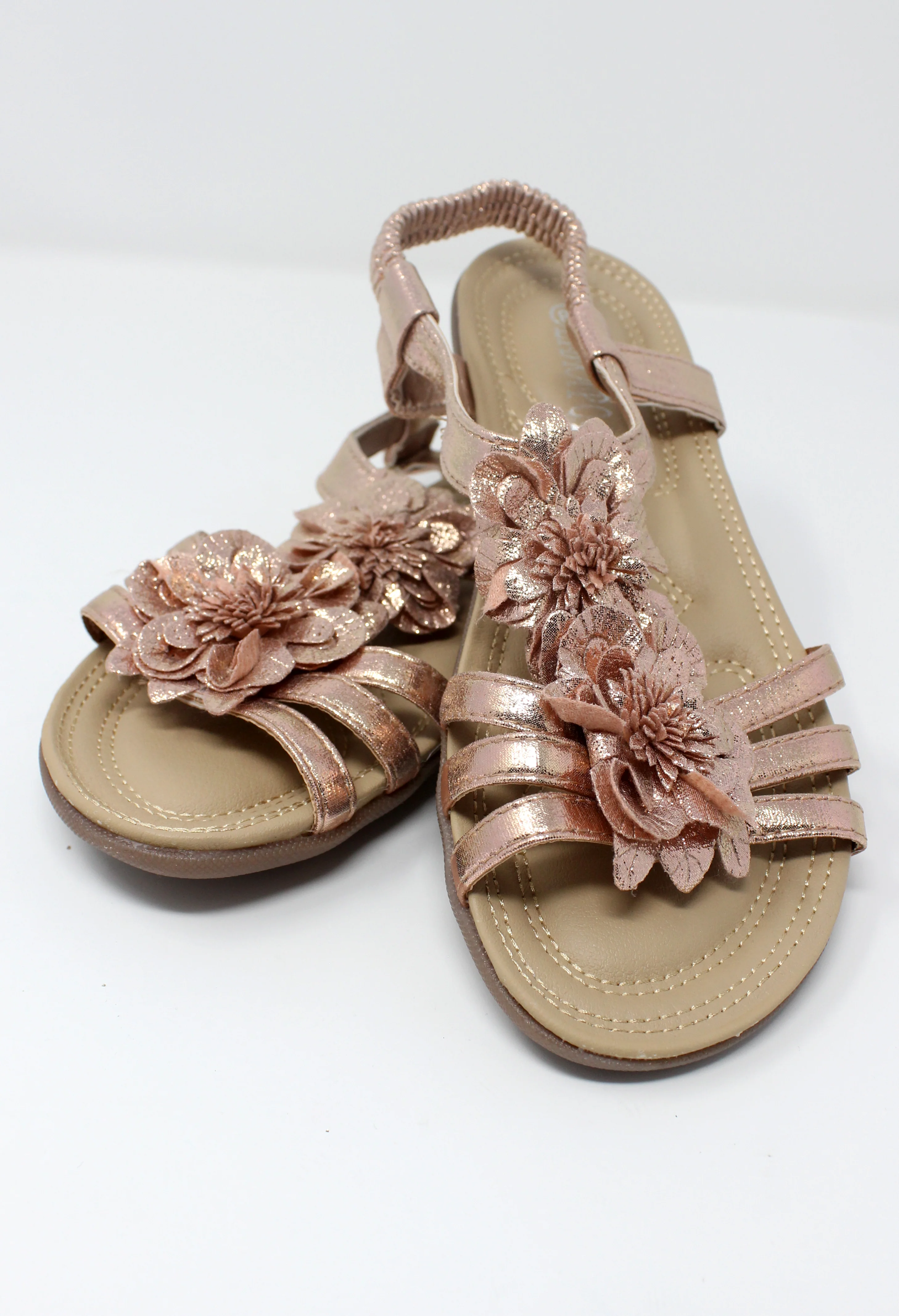 Rose Gold Lightweight T Strap Flat Sandal