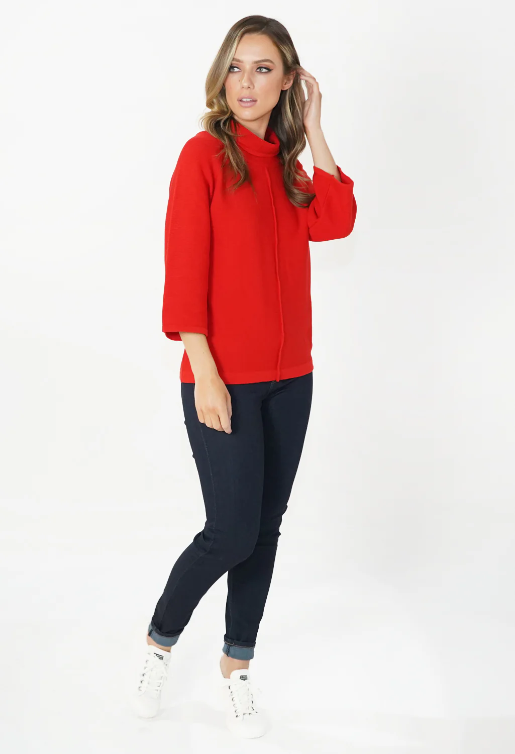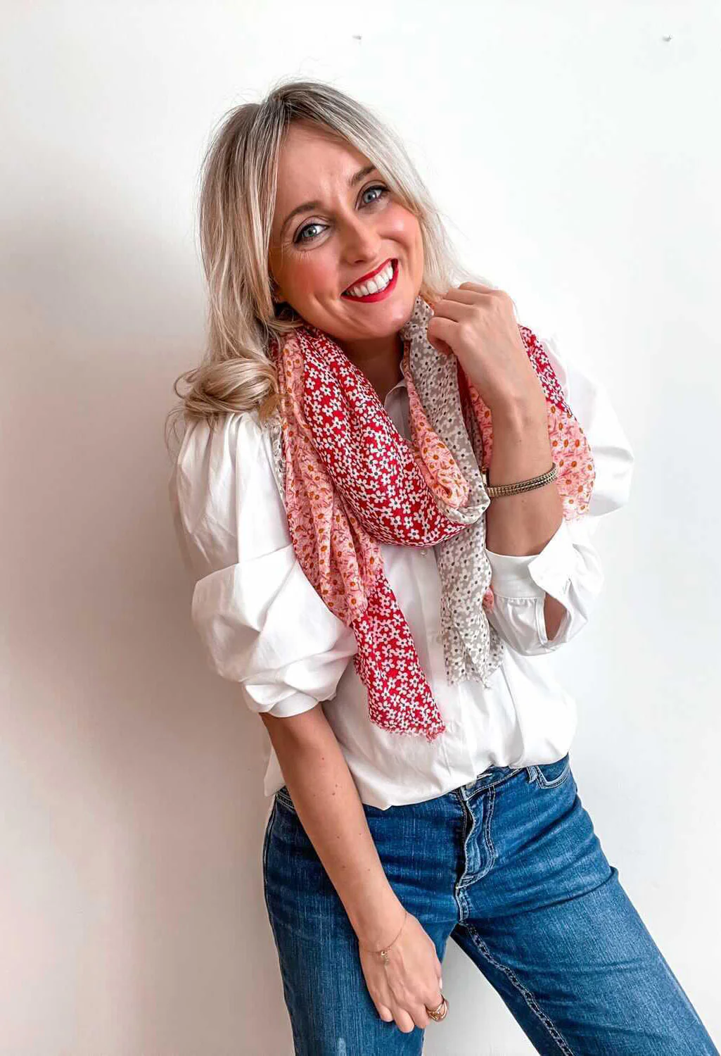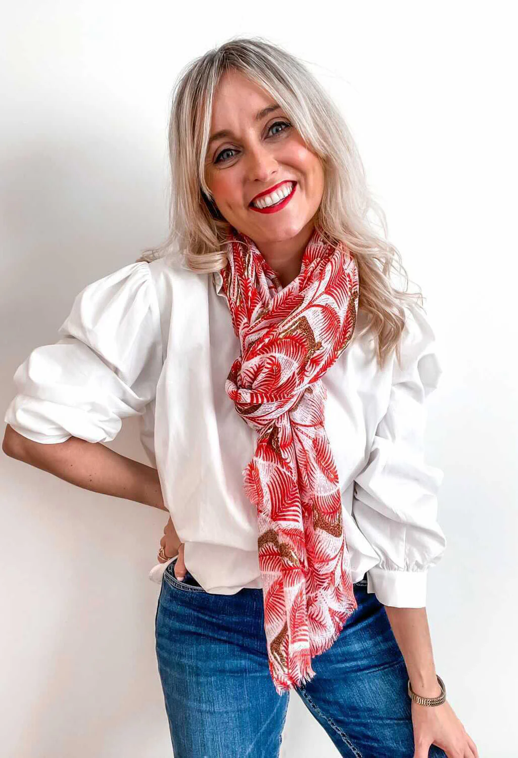 RED RUFFLE DRESS WITH LONG SLEEVES