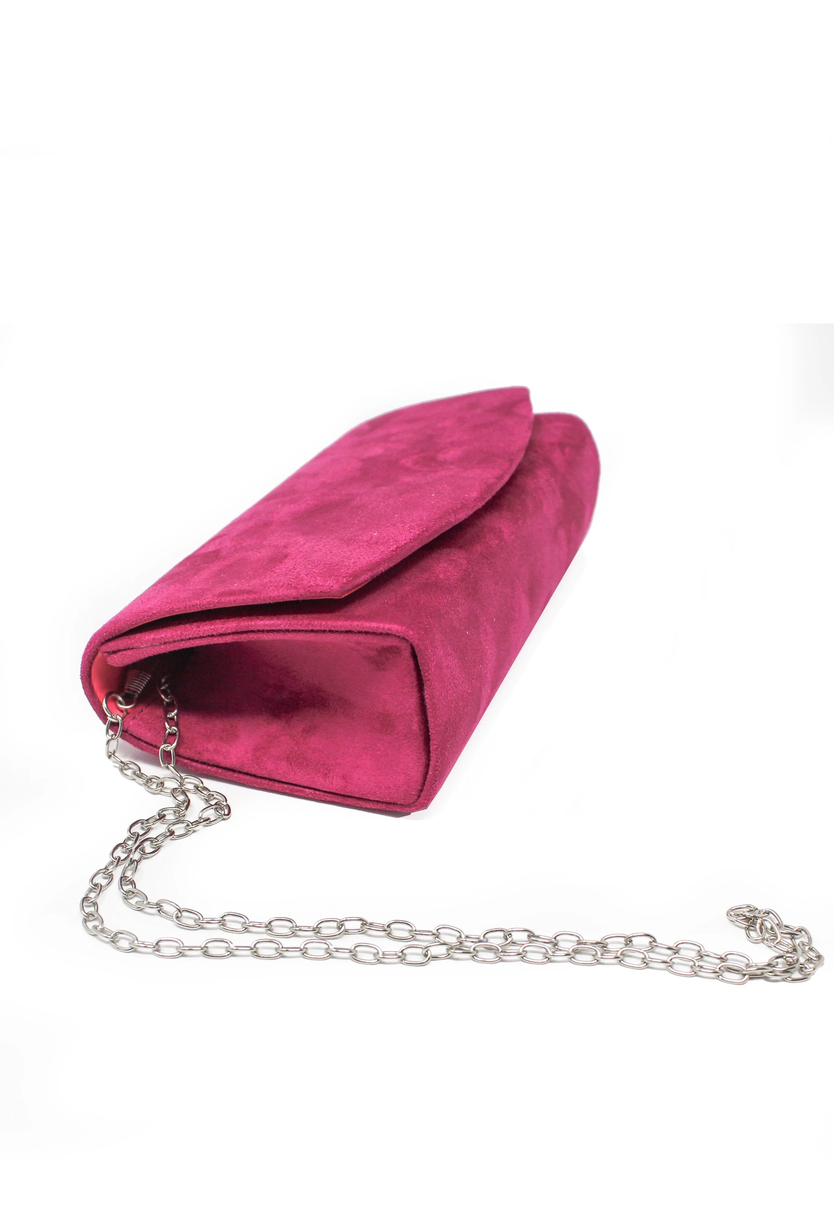 Pink Faux Suede Clutch Bag