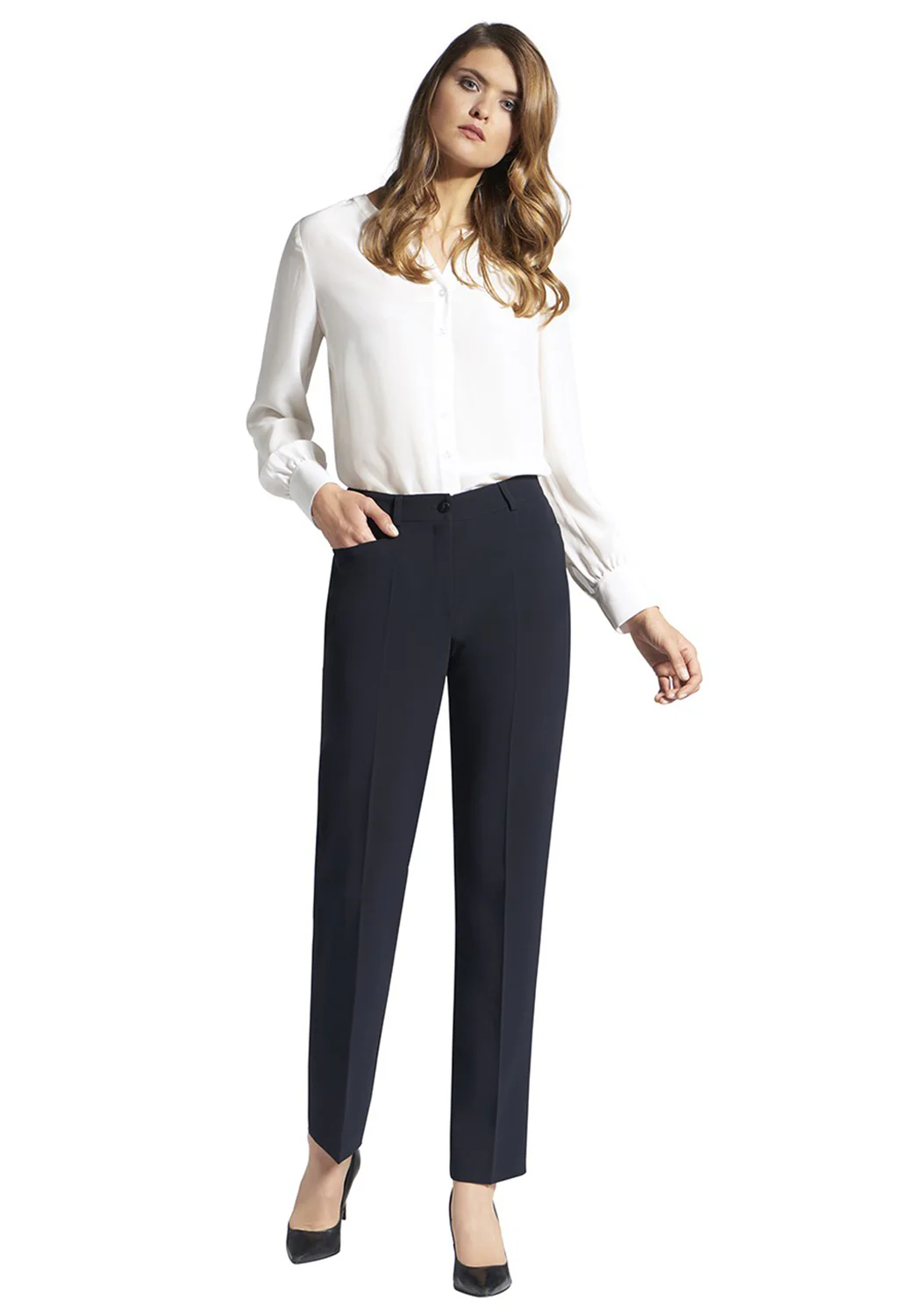 PANTS DIANA WITH POCKETS AND BELT LOOPS NAVY