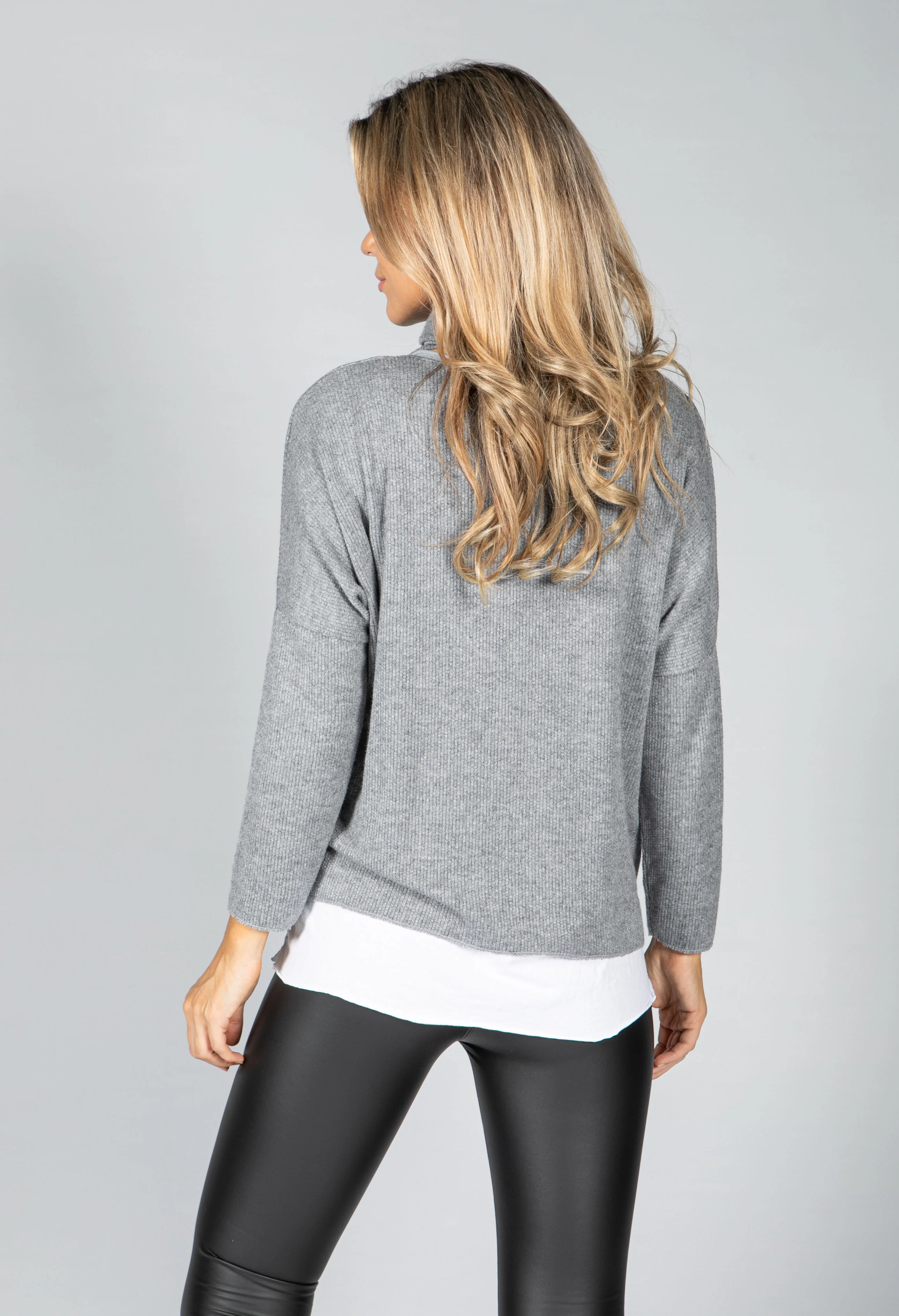 PAMELA SCOTT GREY JUMPER WITH MATCHING SCARF
