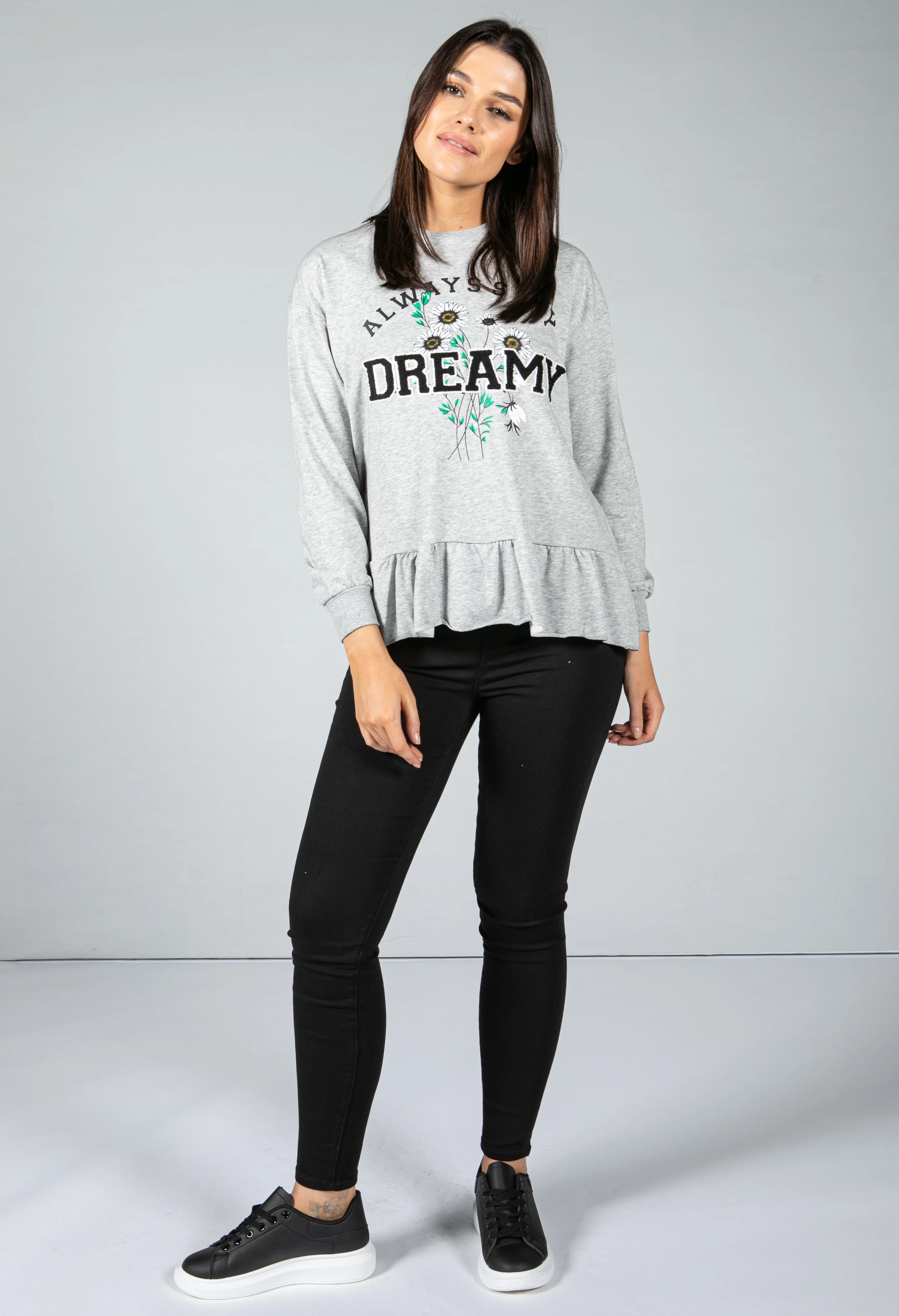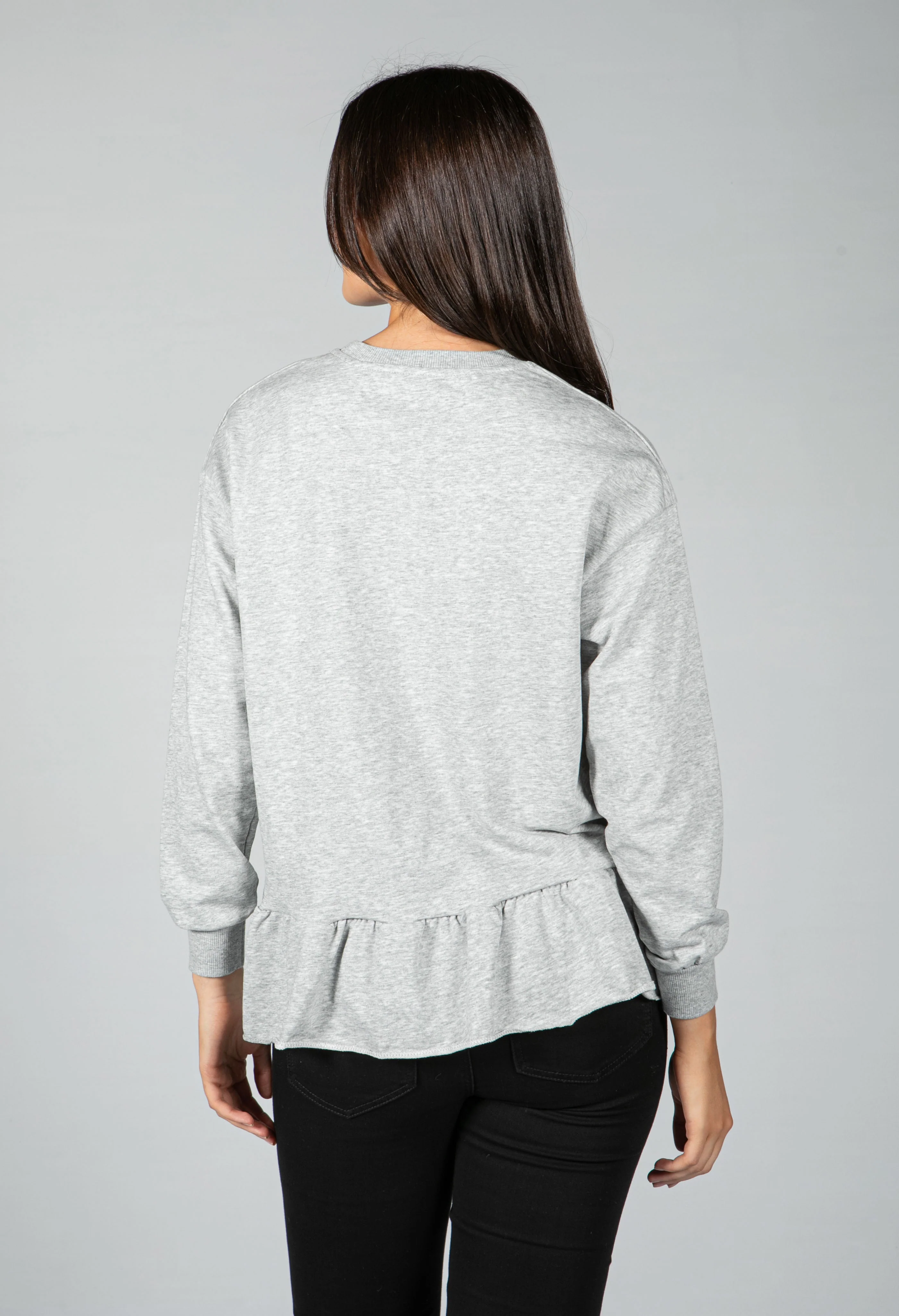 PAMELA SCOTT CREW NECK GRAPHIC JUMPER IN GREY