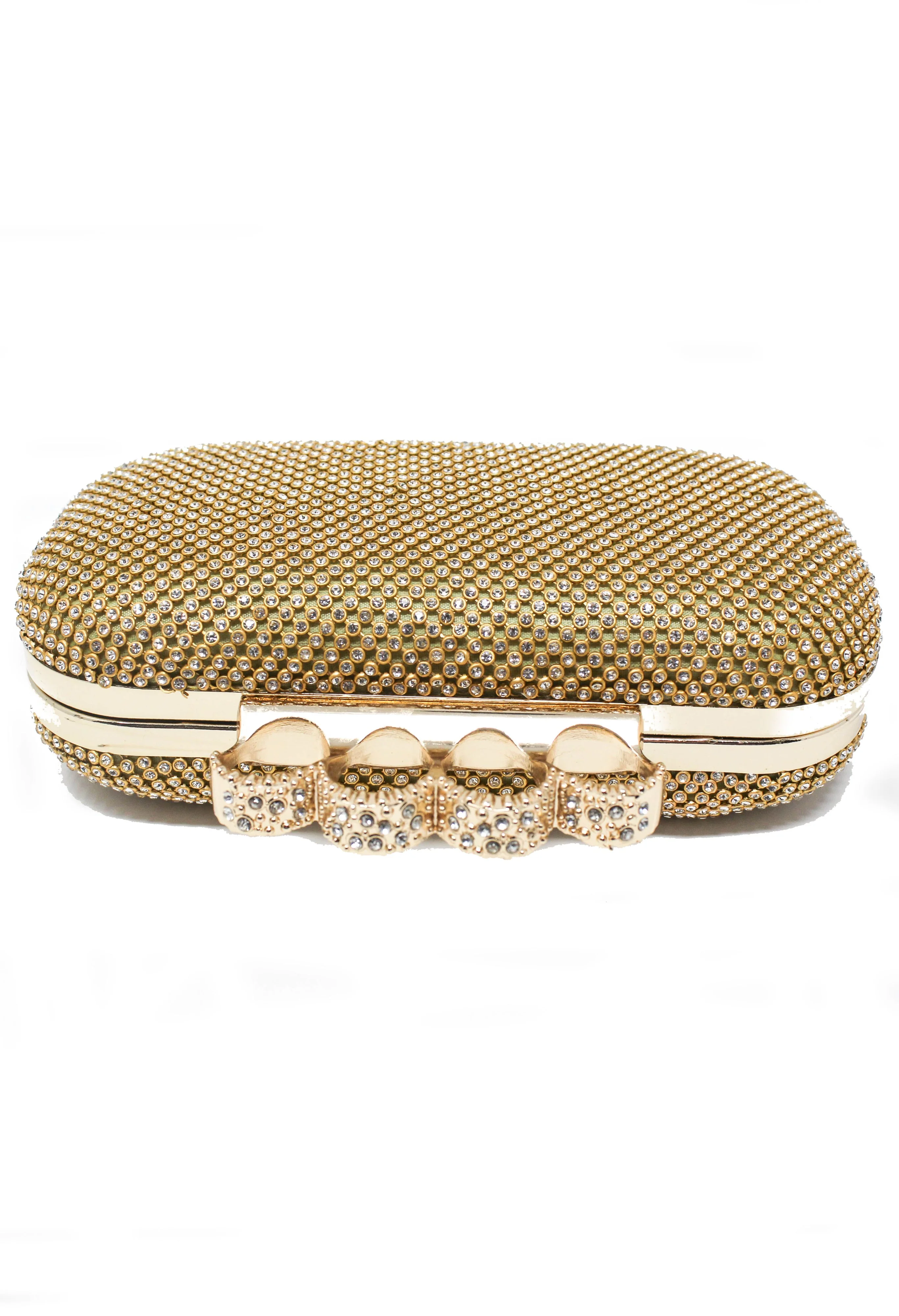 PAMELA SCOTT DIAMANTE CLUTCH BAG IN GOLD