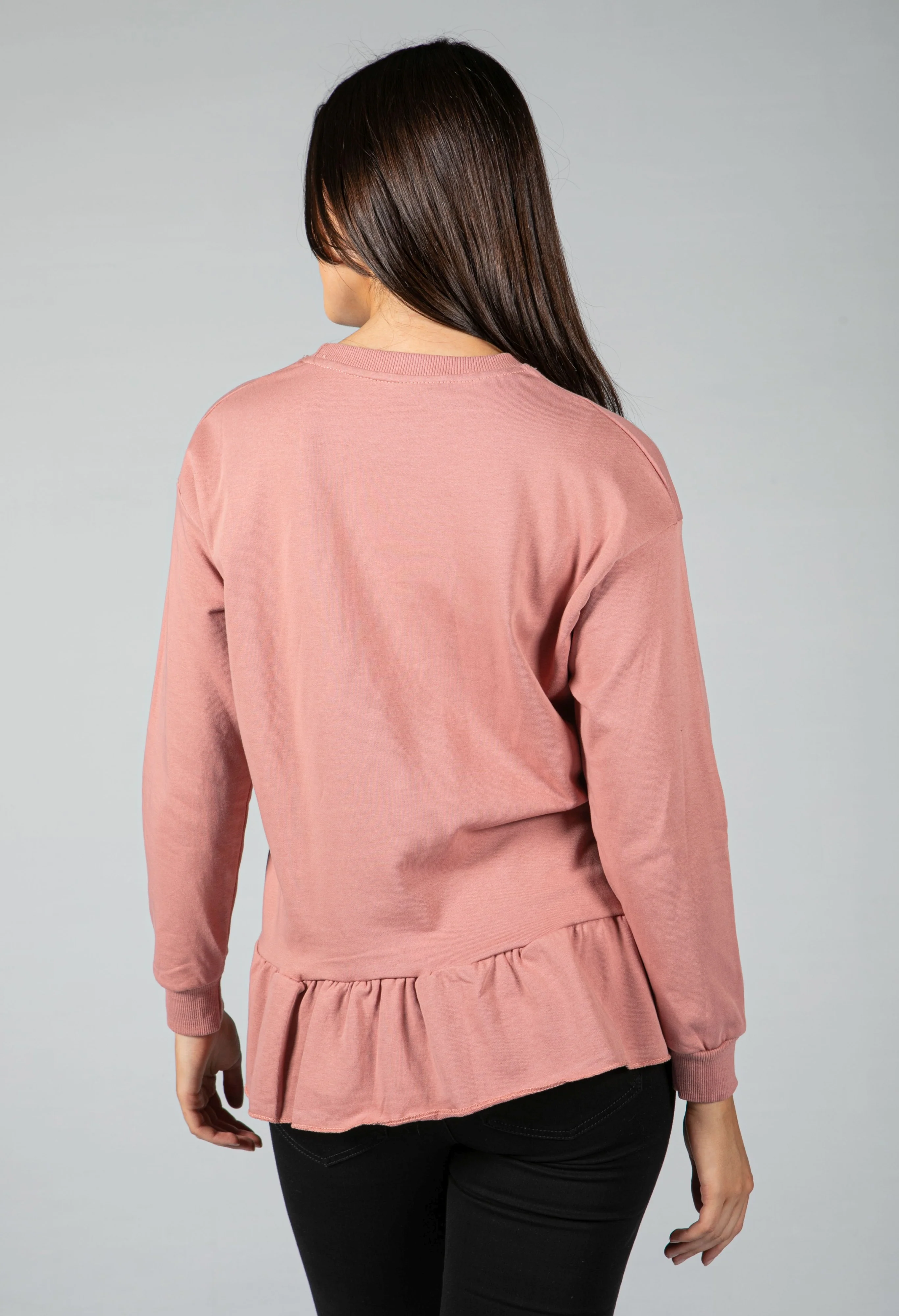 PAMELA SCOTT CREW NECK GRAPHIC JUMPER IN BLUSH