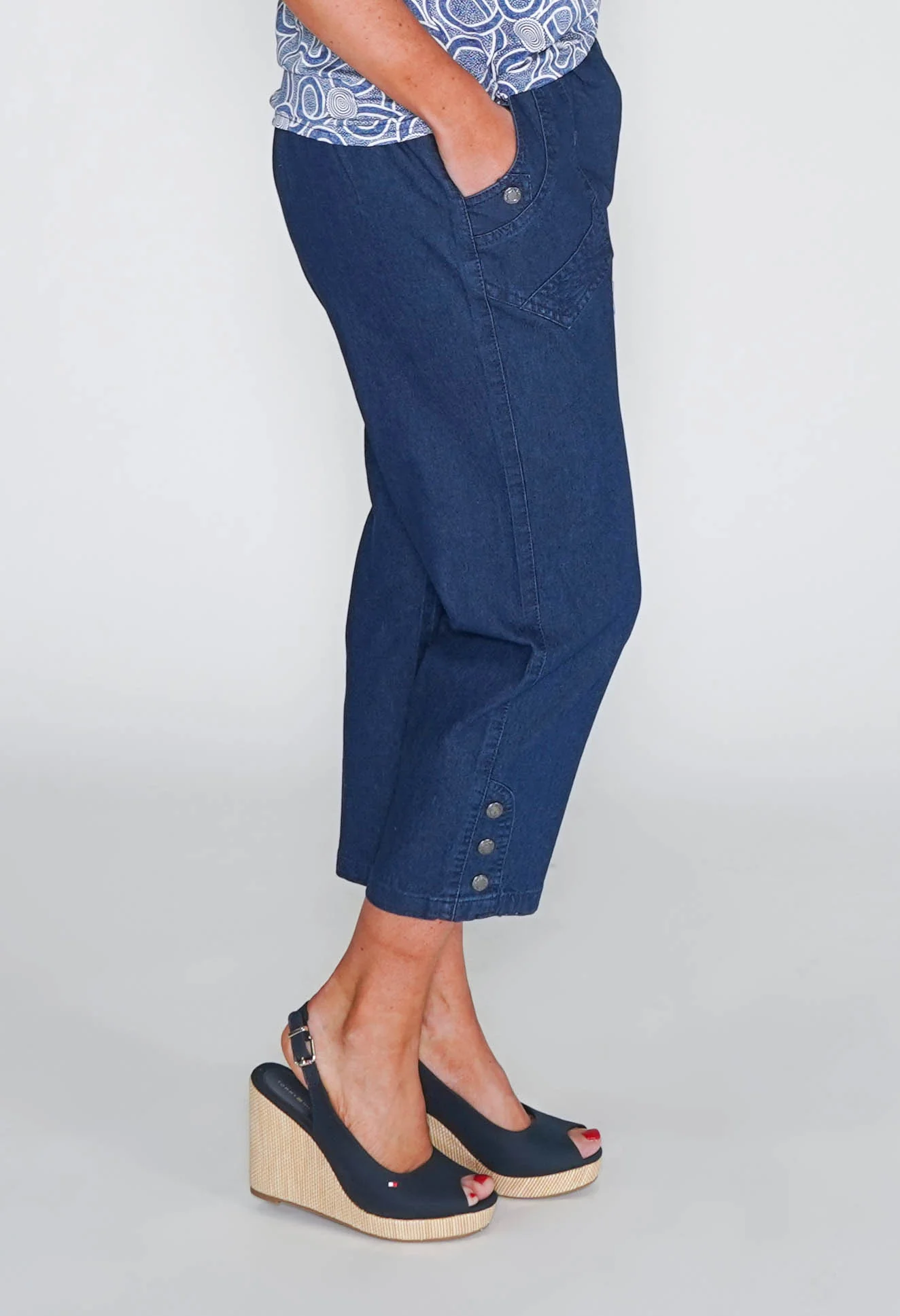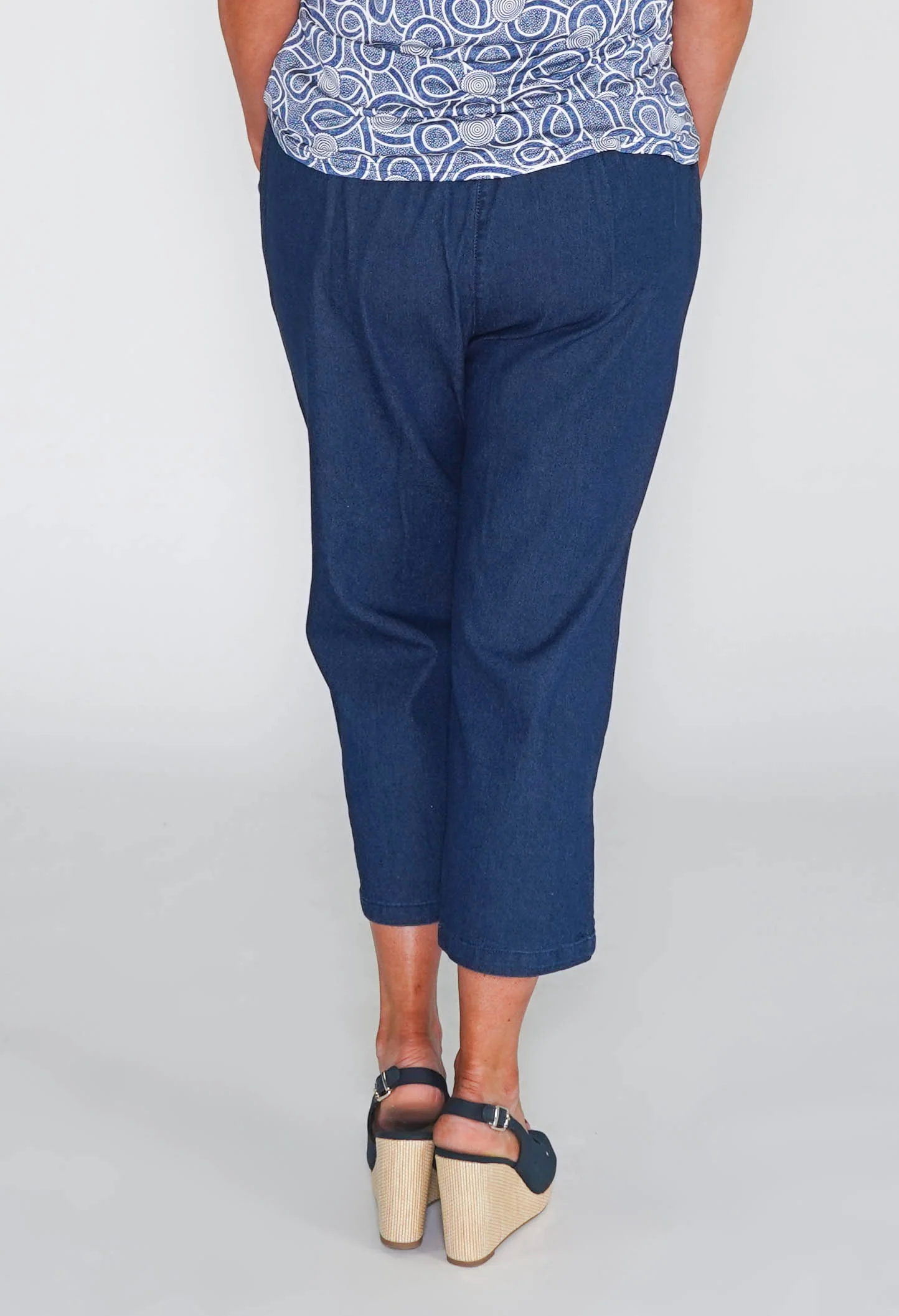 PAMELA SCOTT CAPRIS WITH ELASTICATED WAIST IN SOFT DENIM
