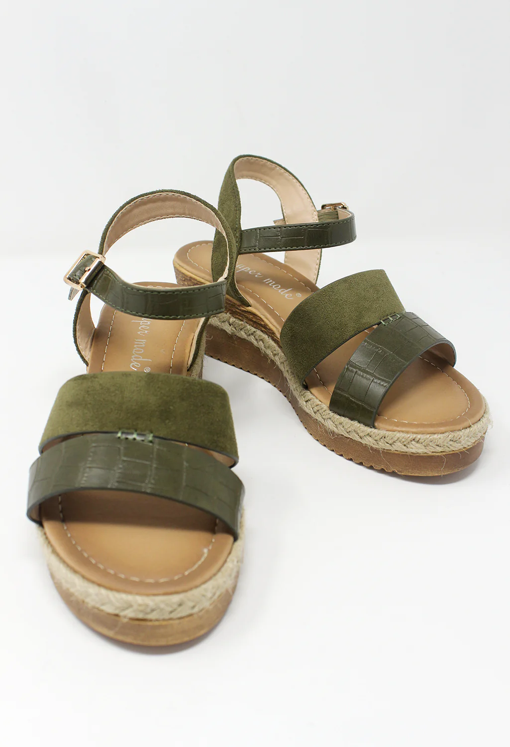 Olive Mid-Wedge Strap Sandal
