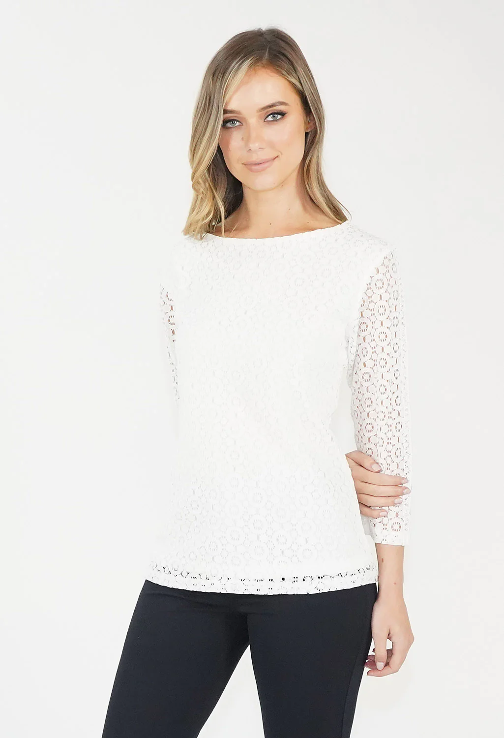 Off White Boat Neck Lace Top