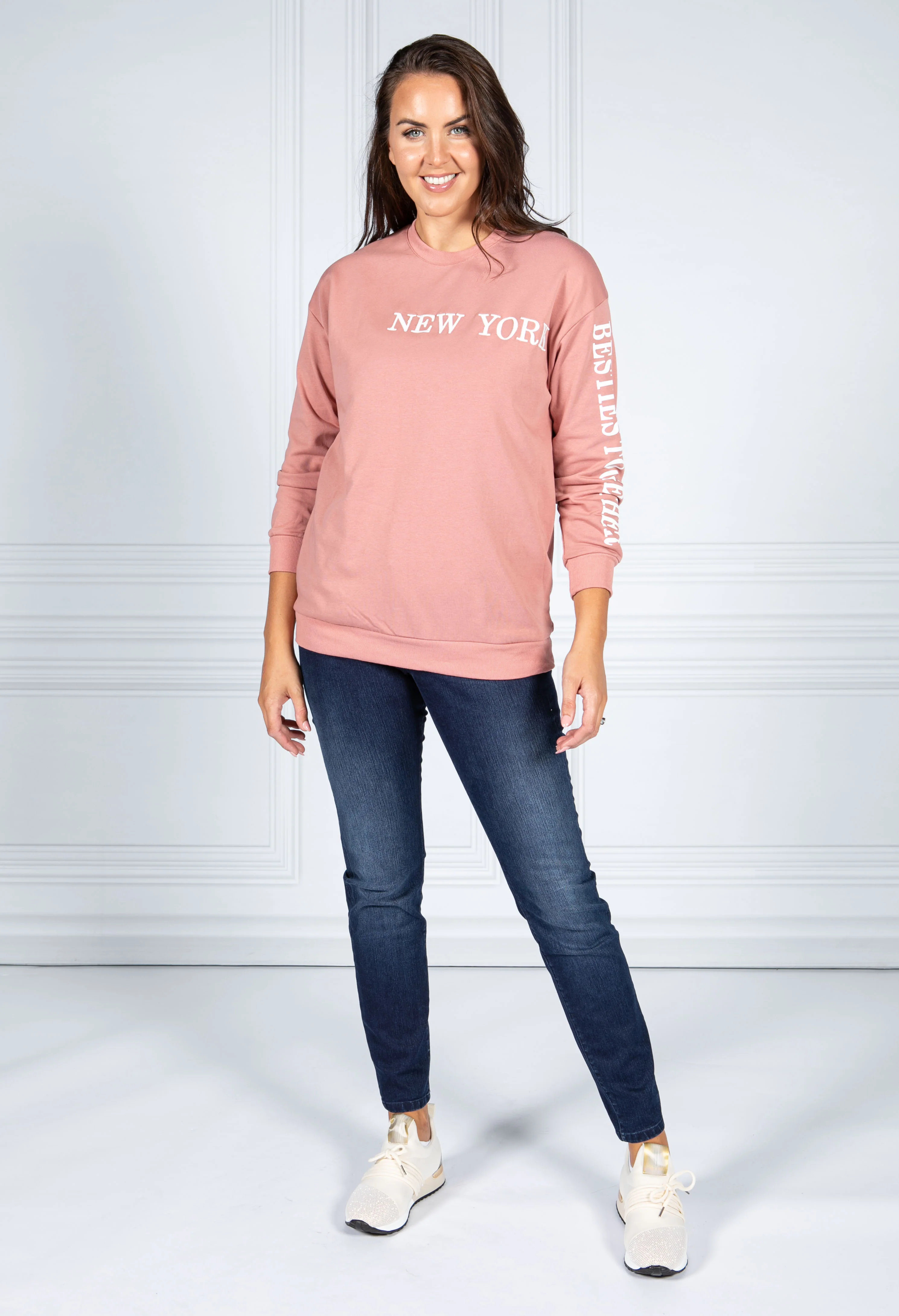NEW YORK VARSITY CREW NECK JUMPER IN BLUSH