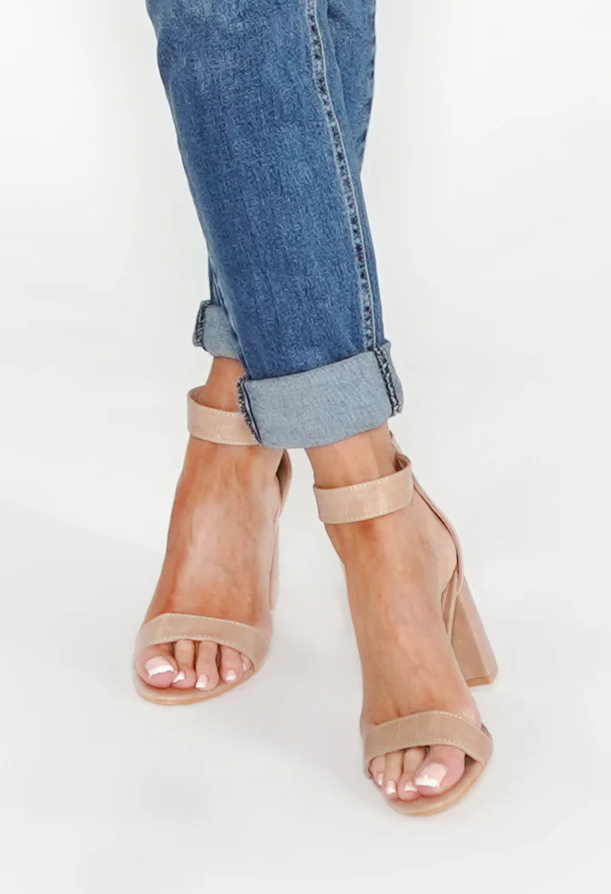 NUDE CROC PRINT BLOCK HEEL SANDAL