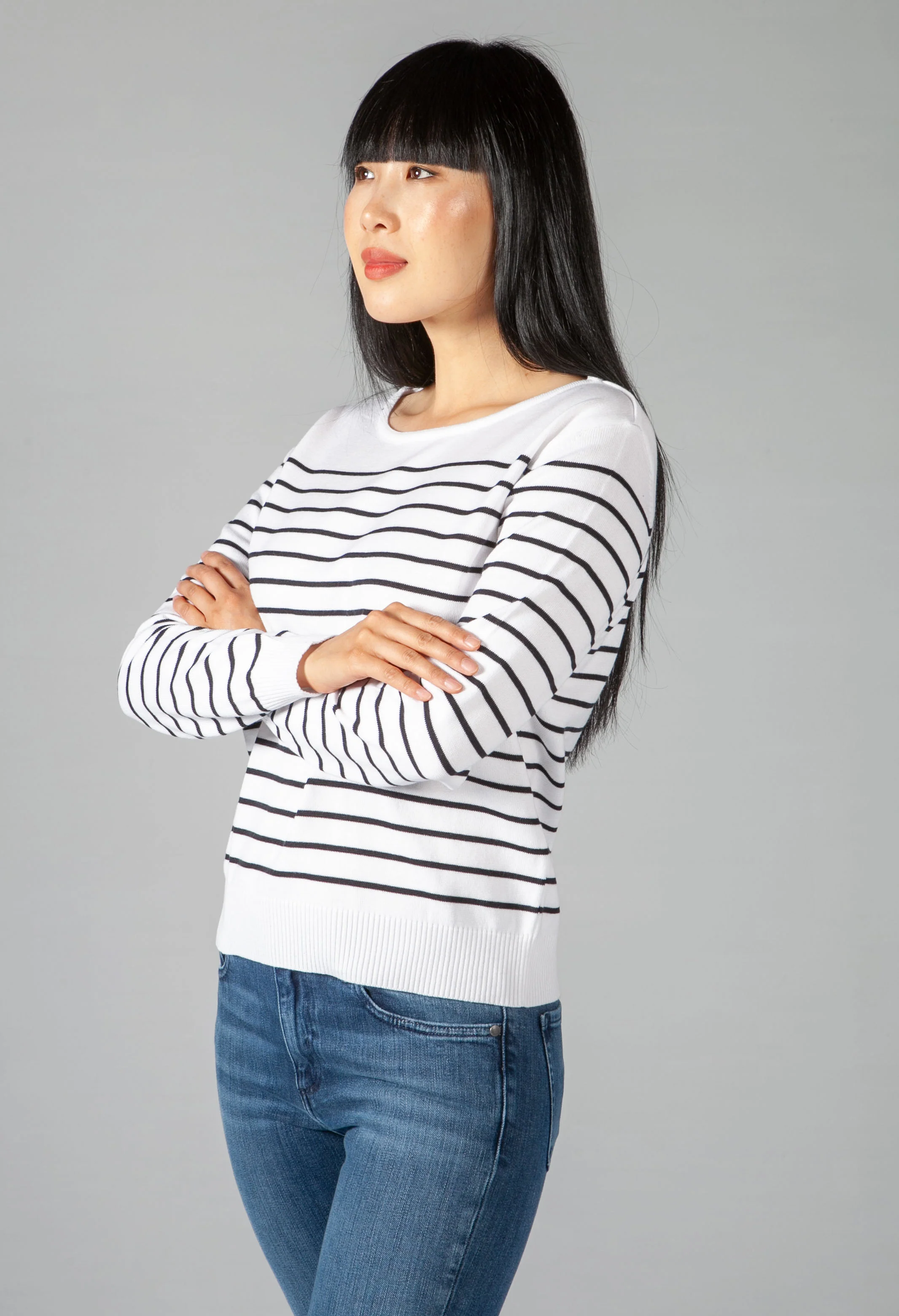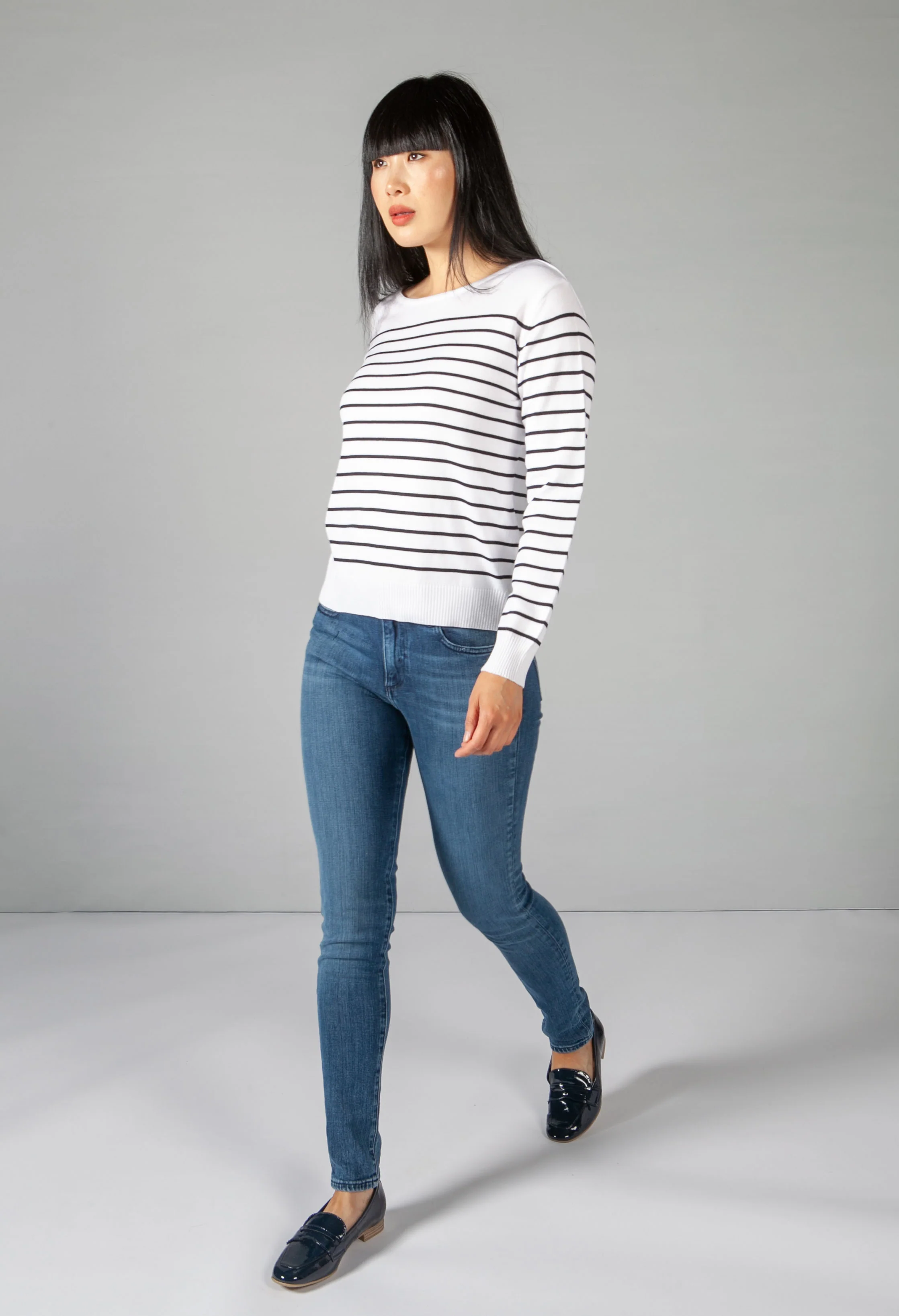 Navy and Cream Striped Top