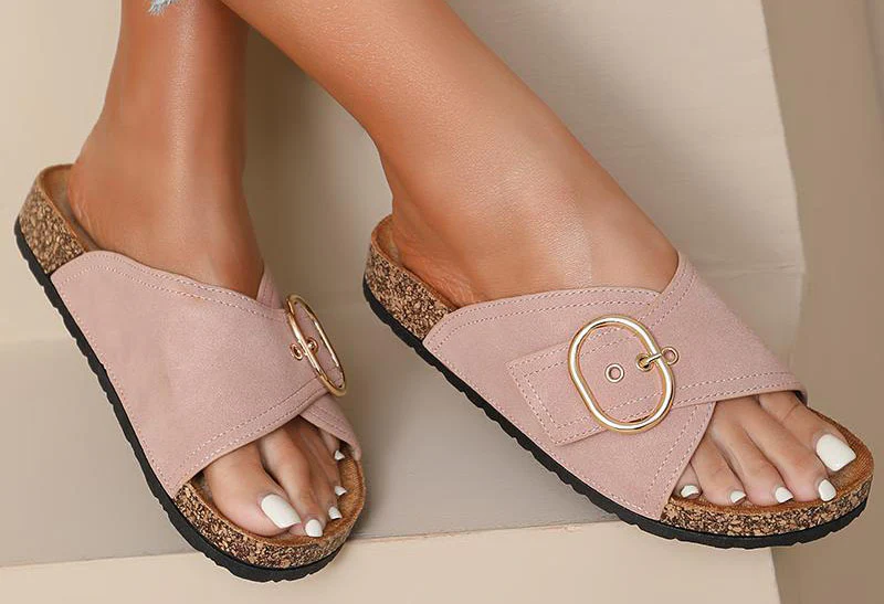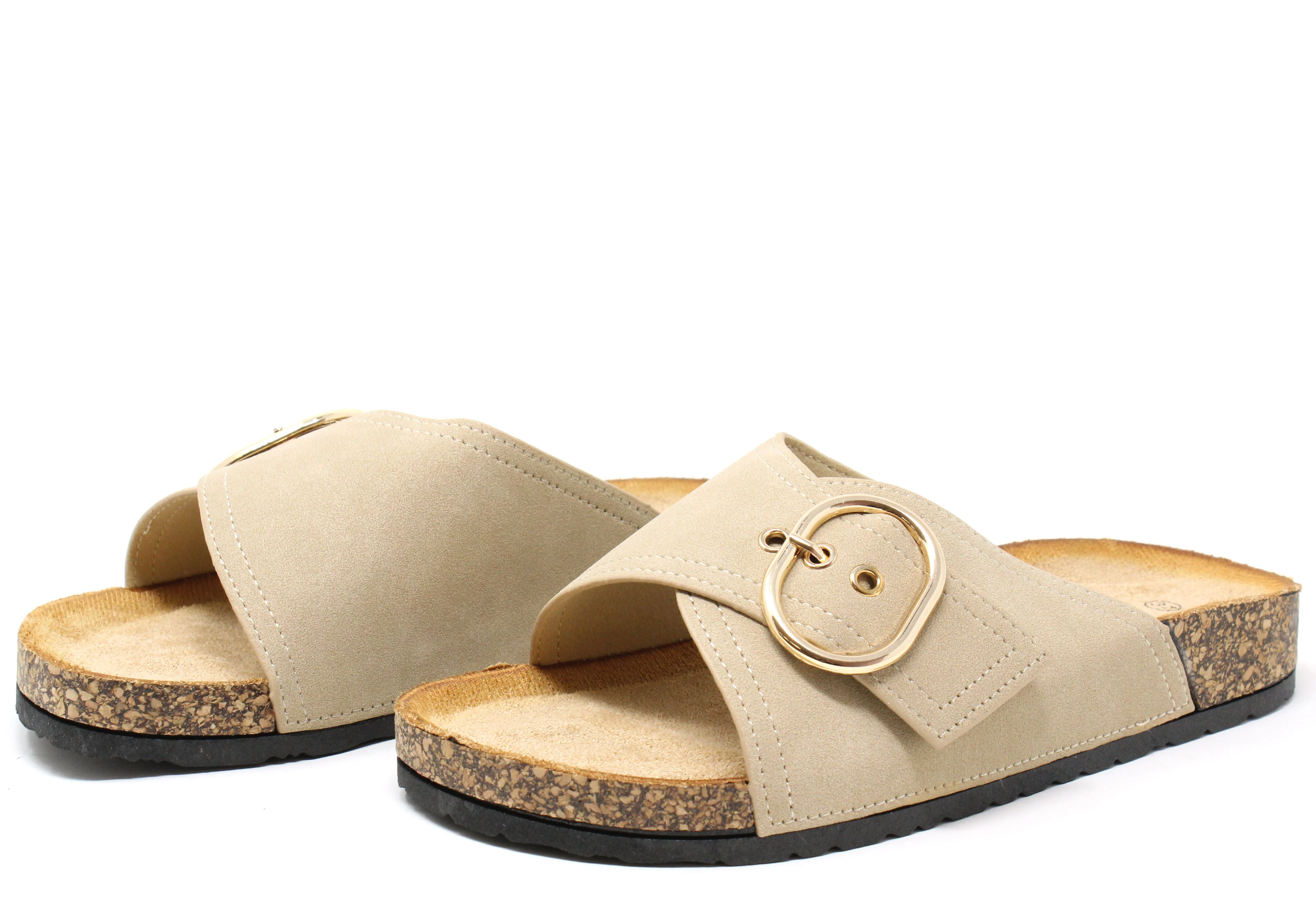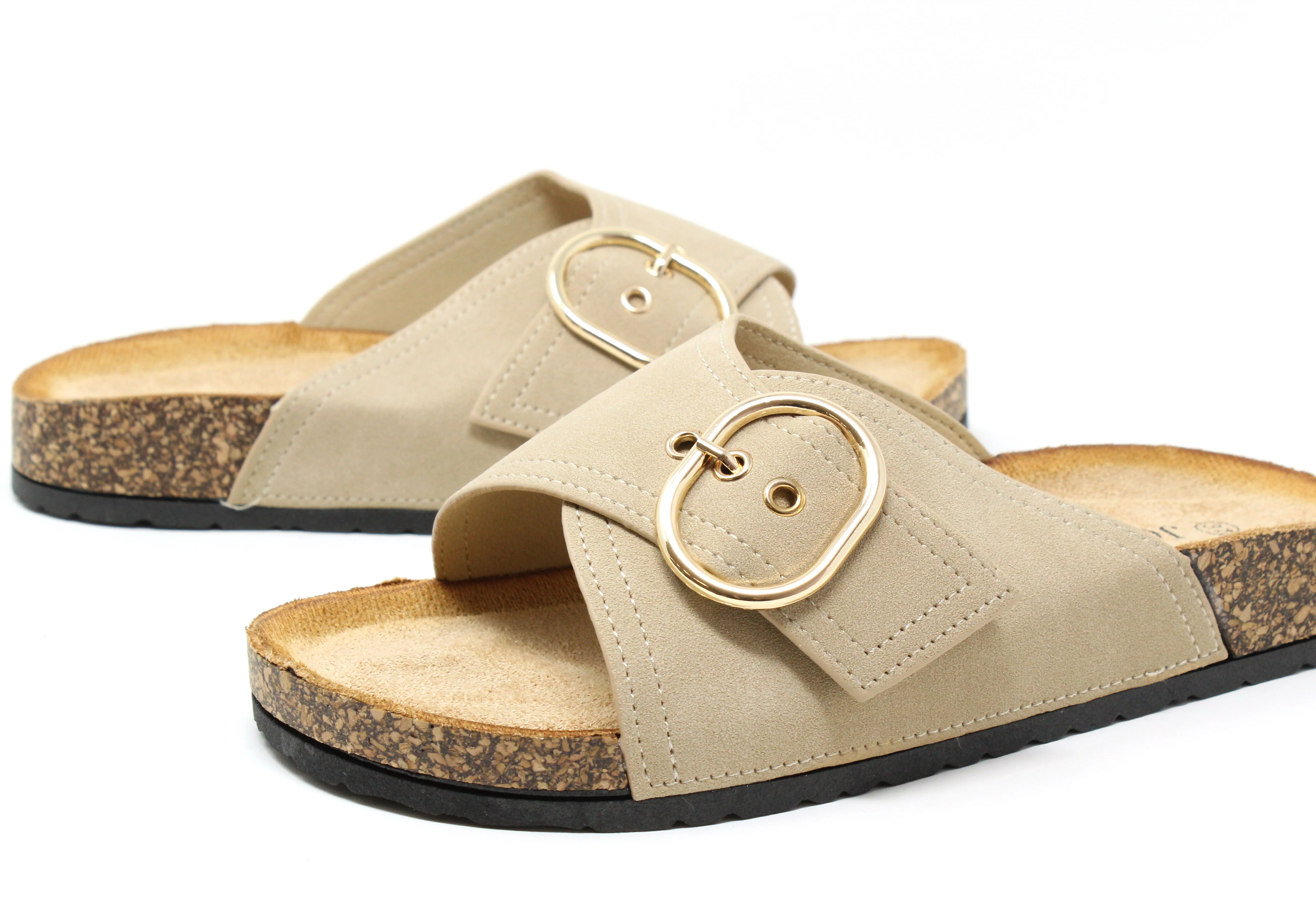 SHOE LOUNGE GLITTERED DETAIL STRAP WEDGE SANDAL IN BEIGE