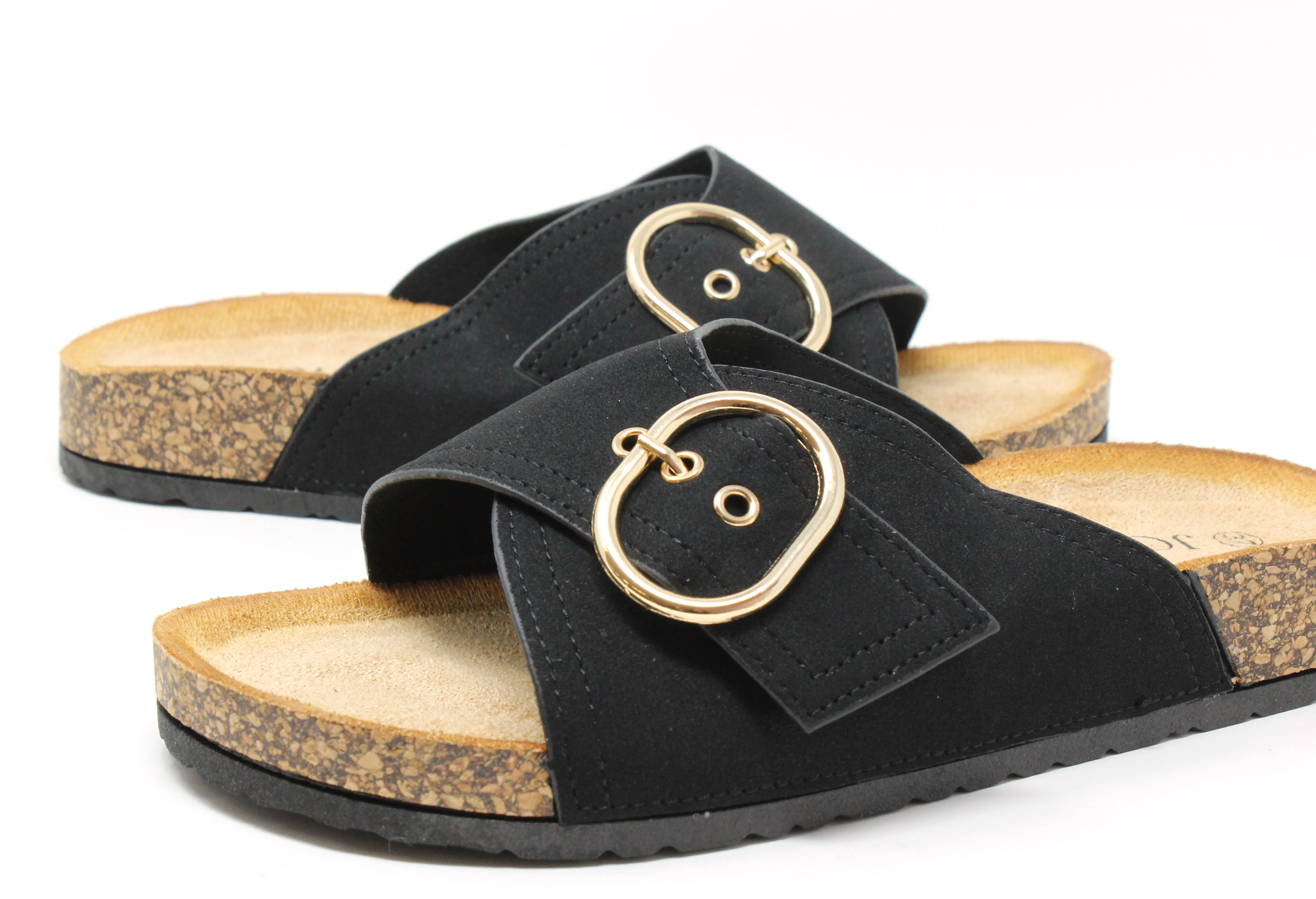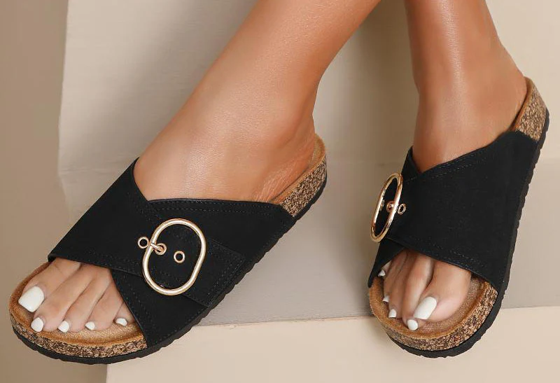 SHOE LOUNGE GLITTERED DETAIL STRAP WEDGE SANDAL IN BLACK