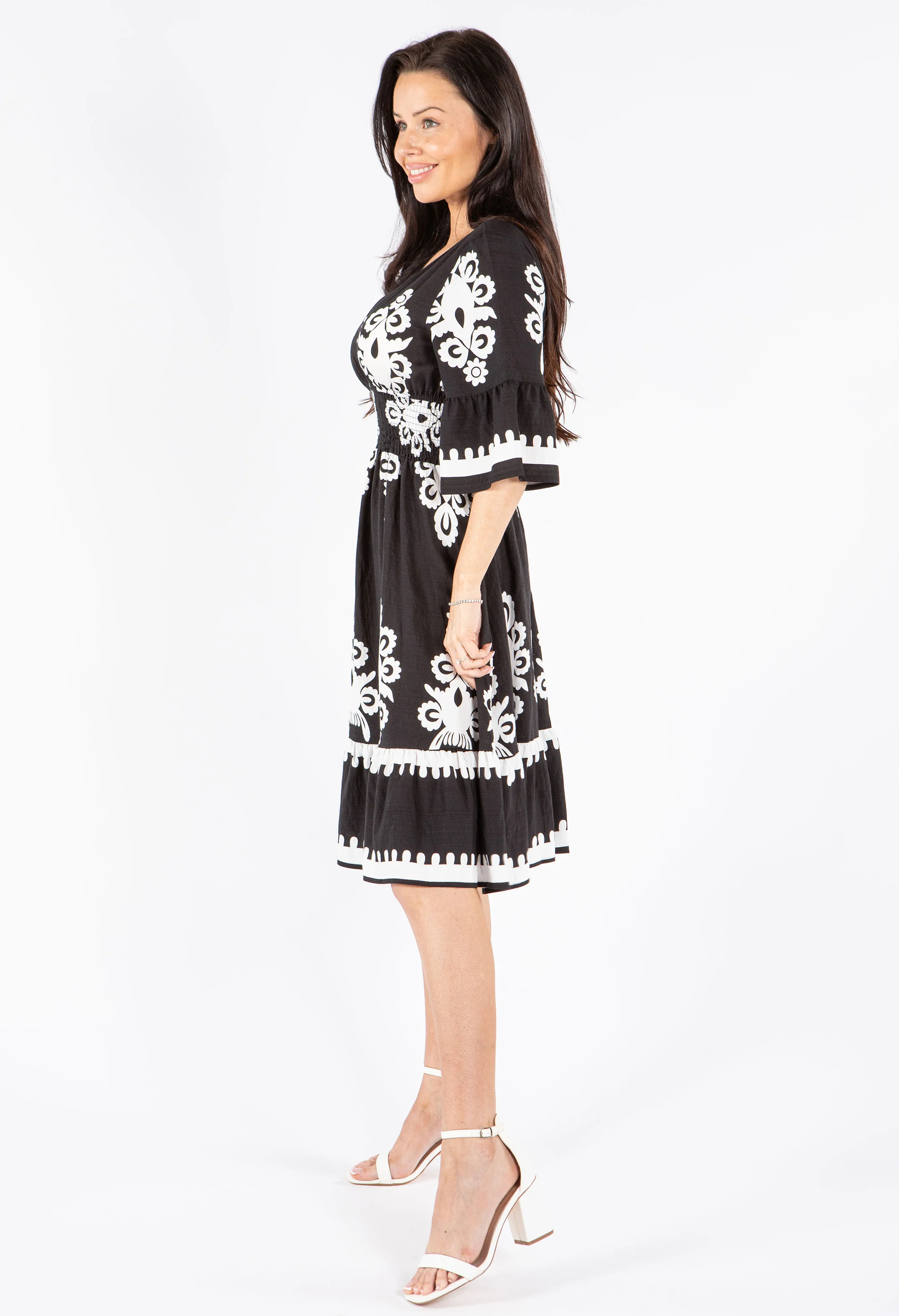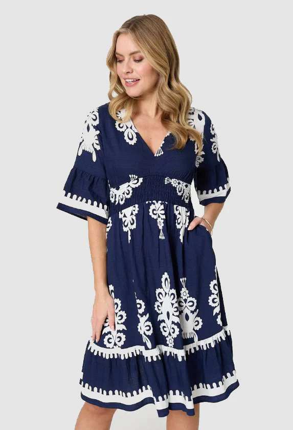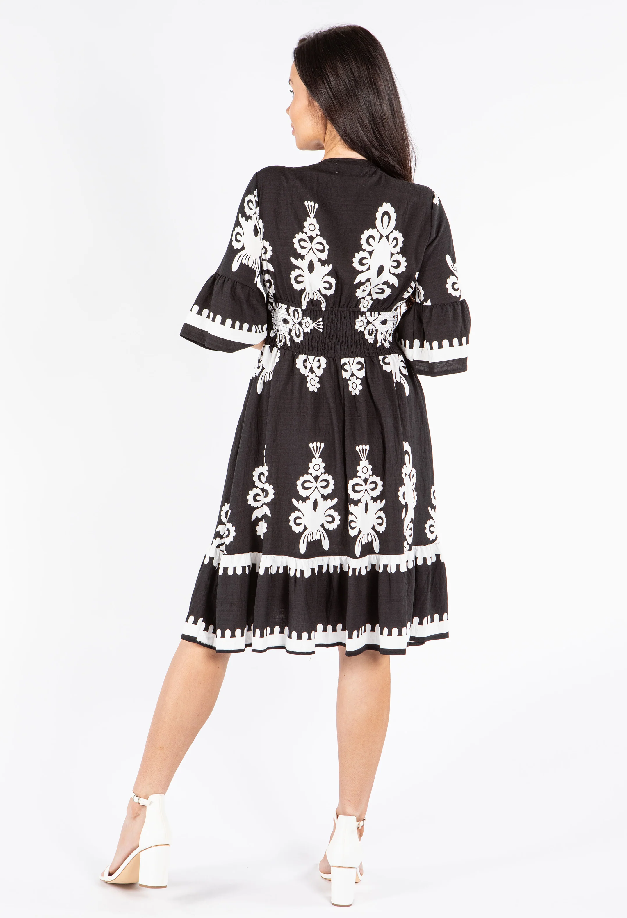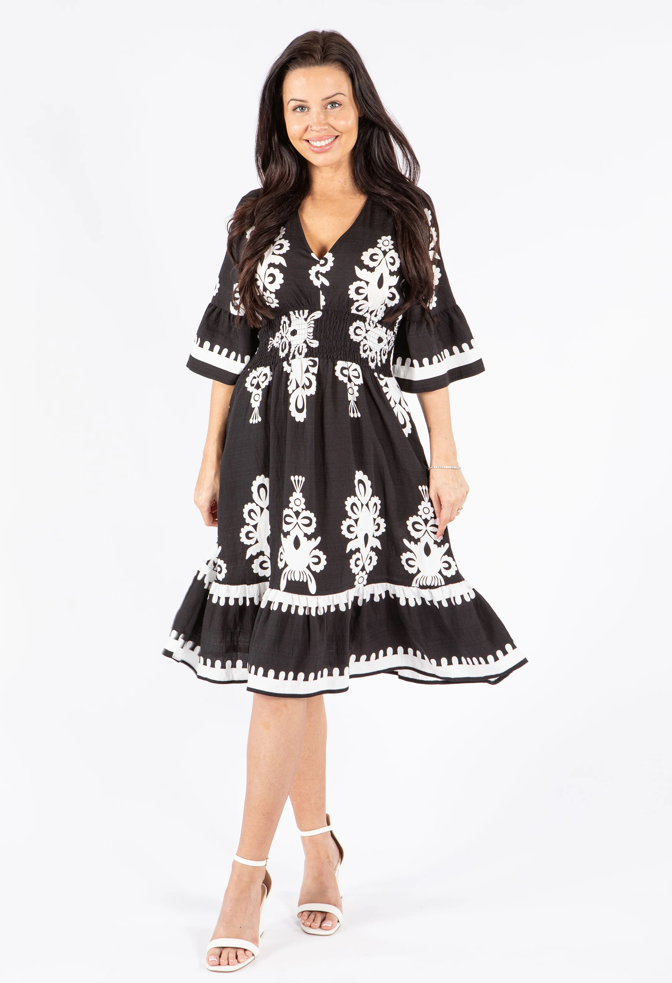 Shirred Waist Wrap Top Flutter Sleeve Midi Dress
