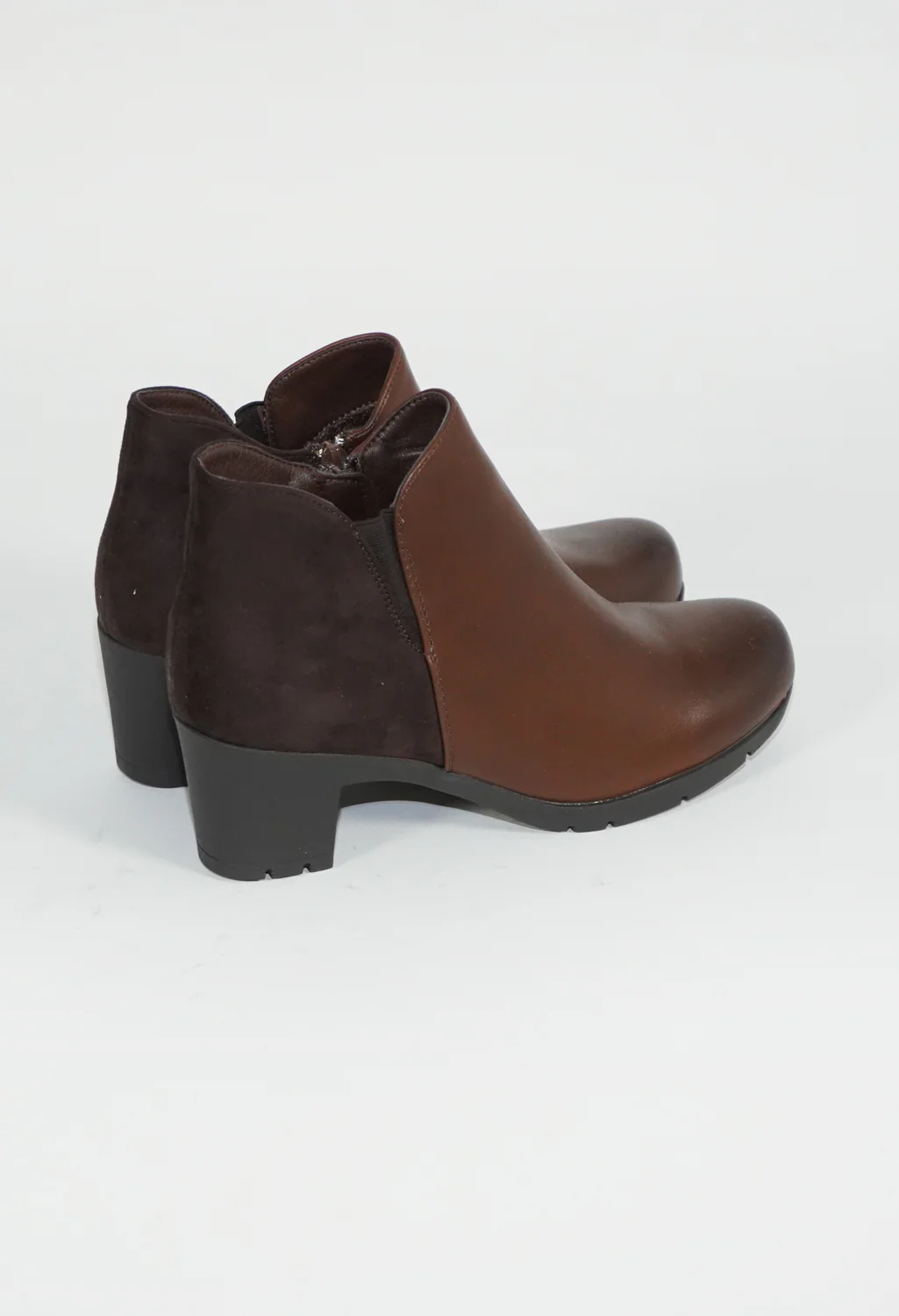 Brown Block Heel Ankle Boot with Pom Pom Detail