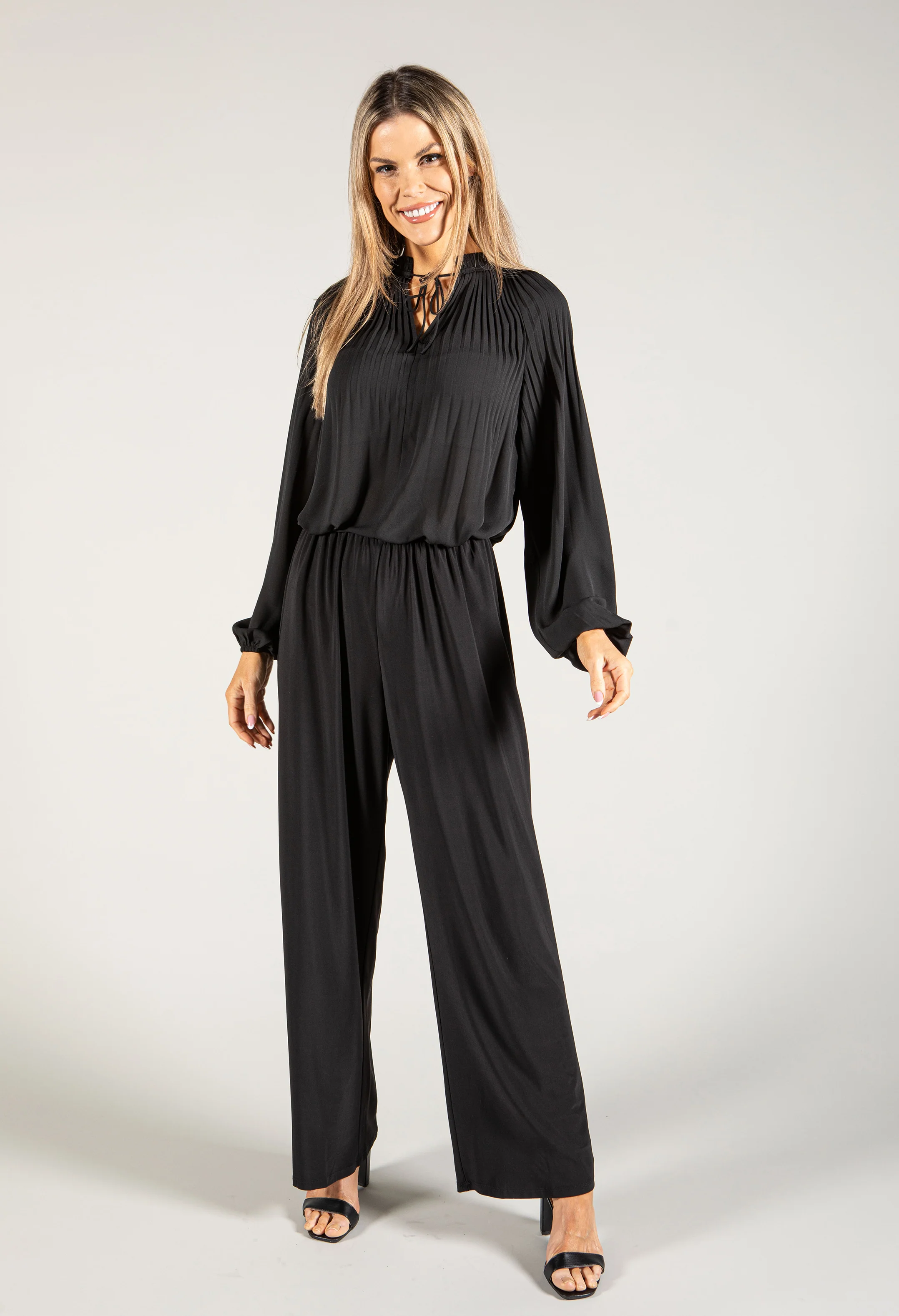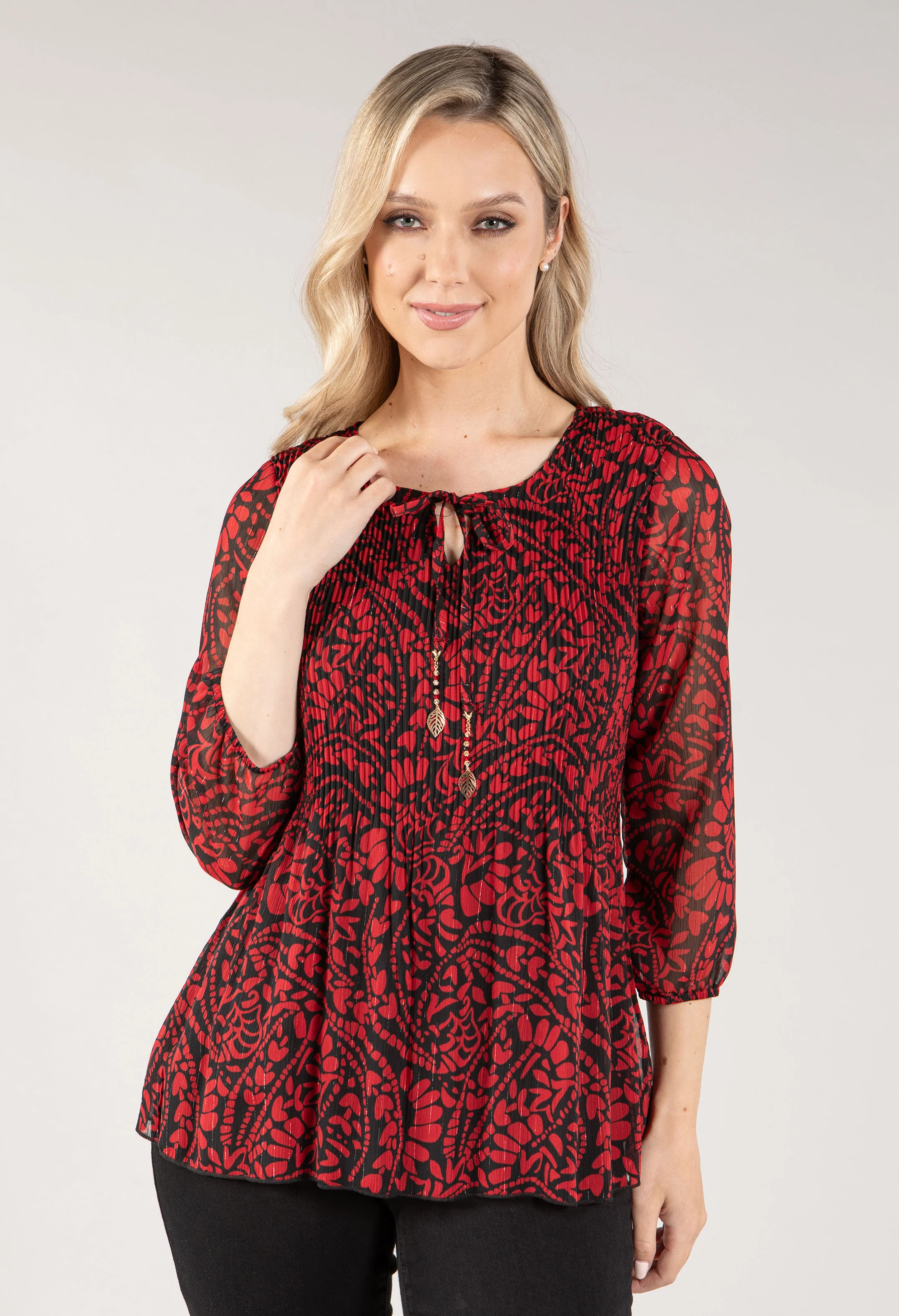 Plisse Pleat Tie Neck Top