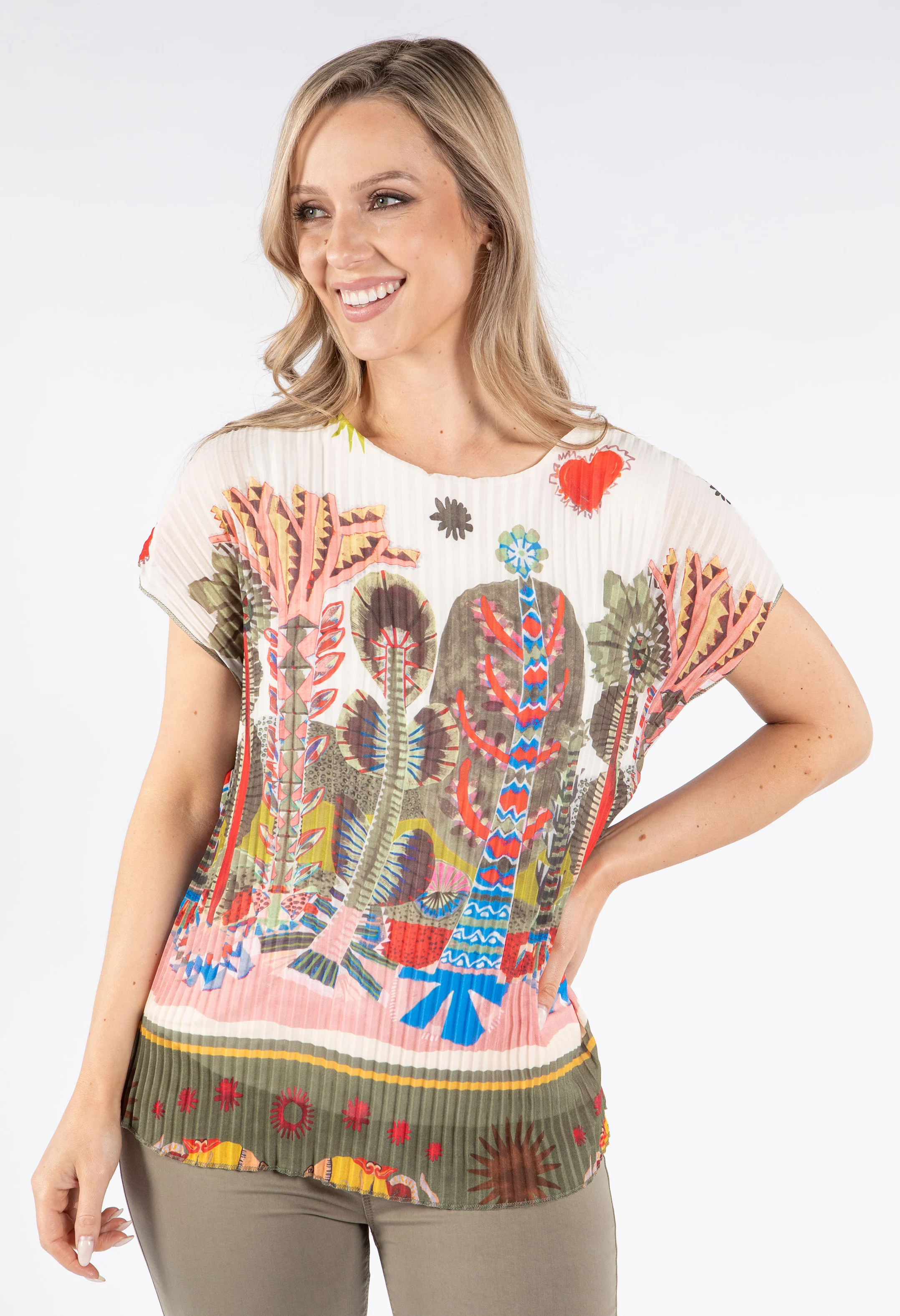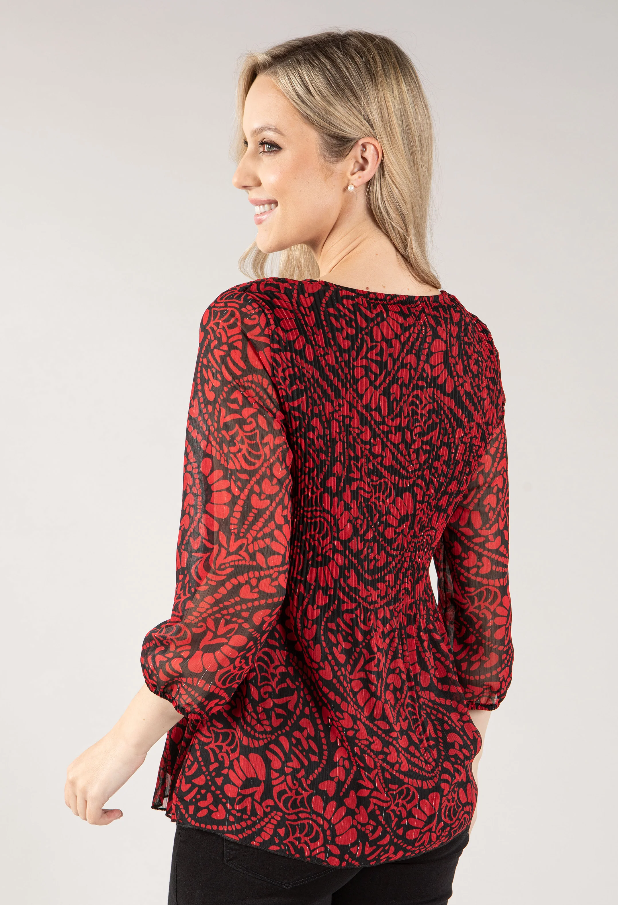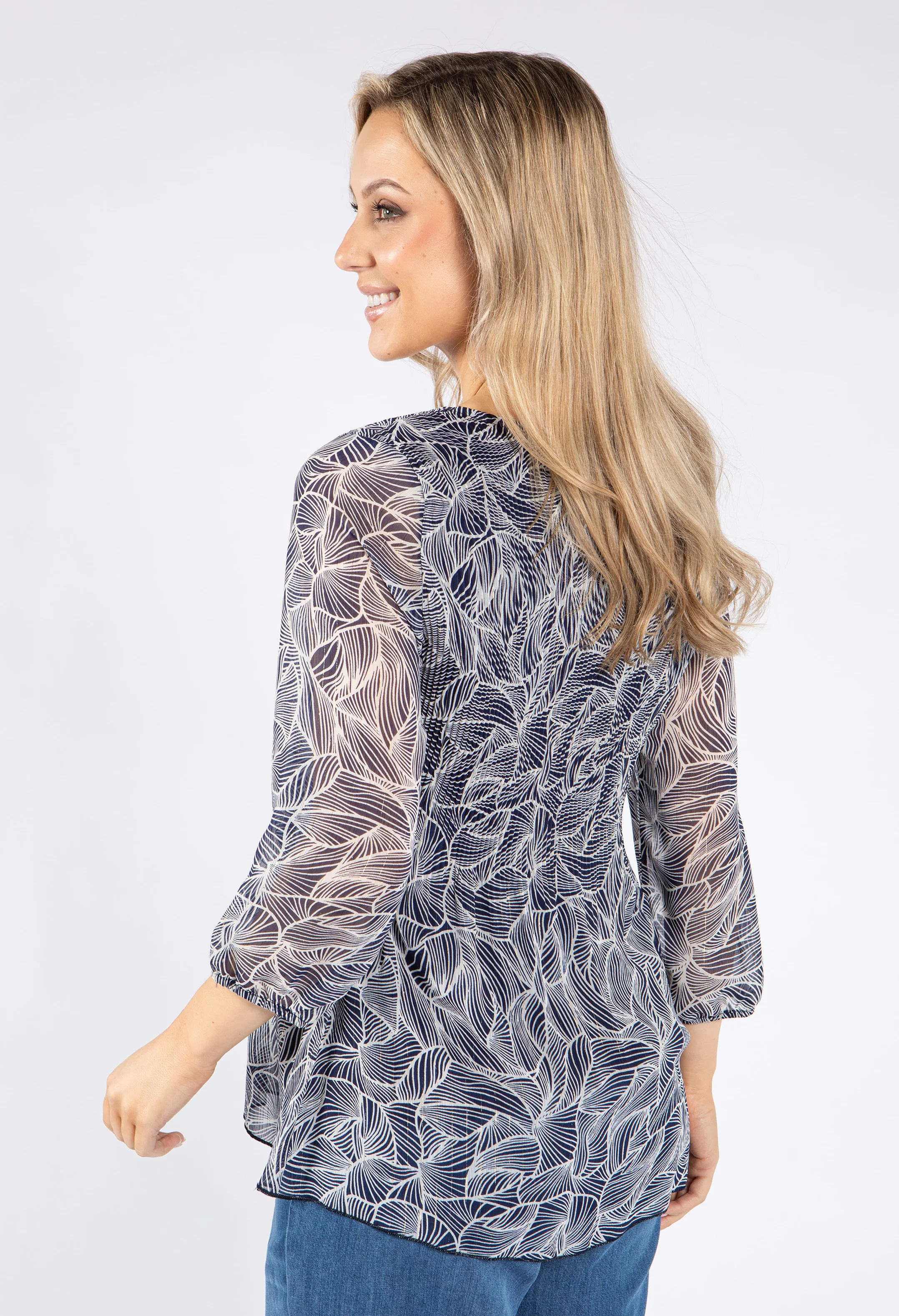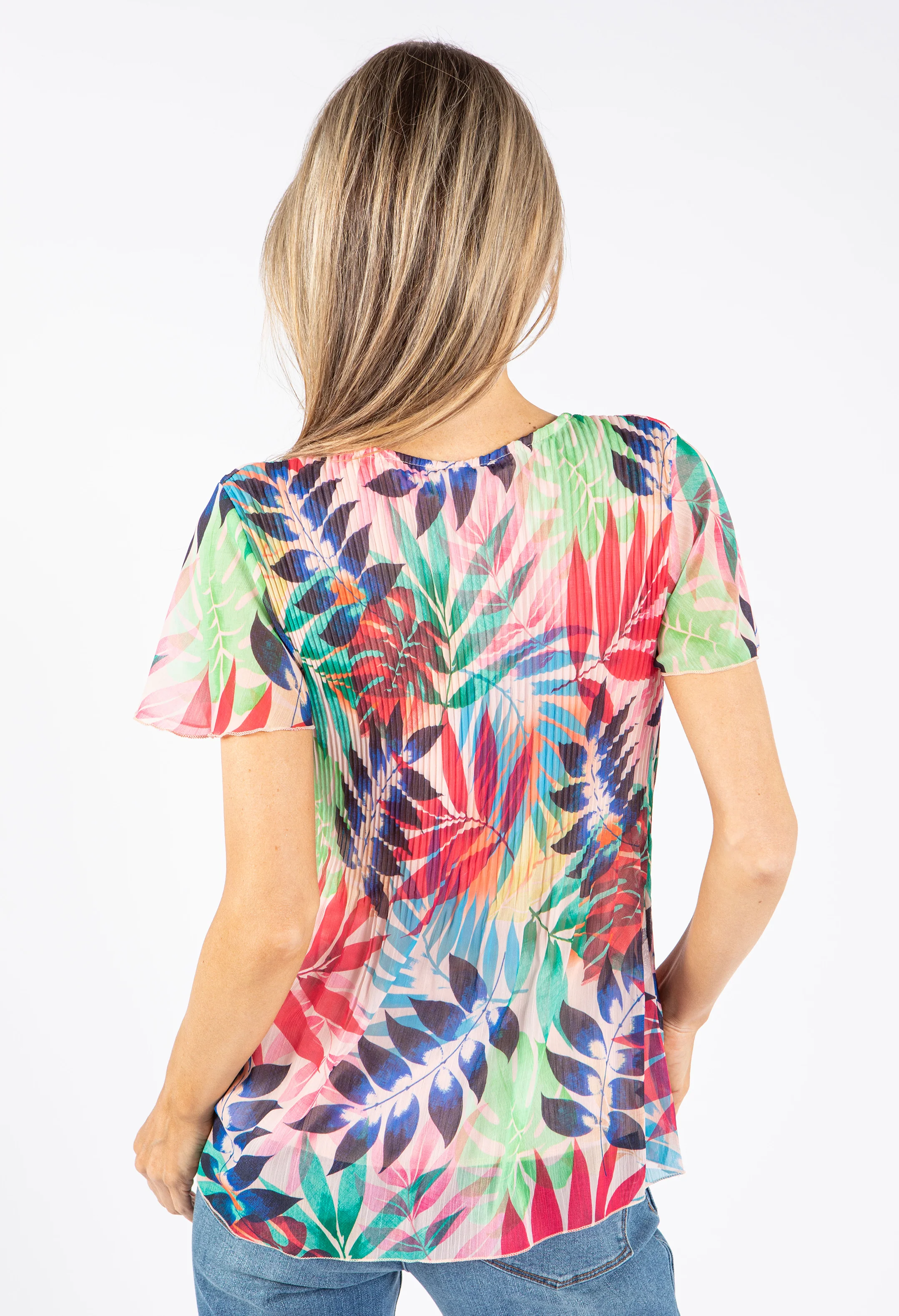 Plisse Pleated Leaf Print Top