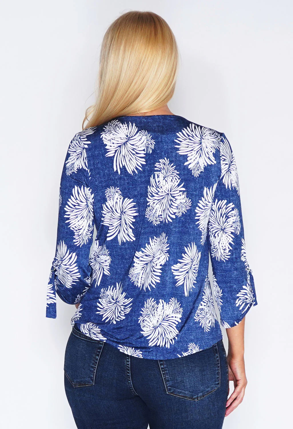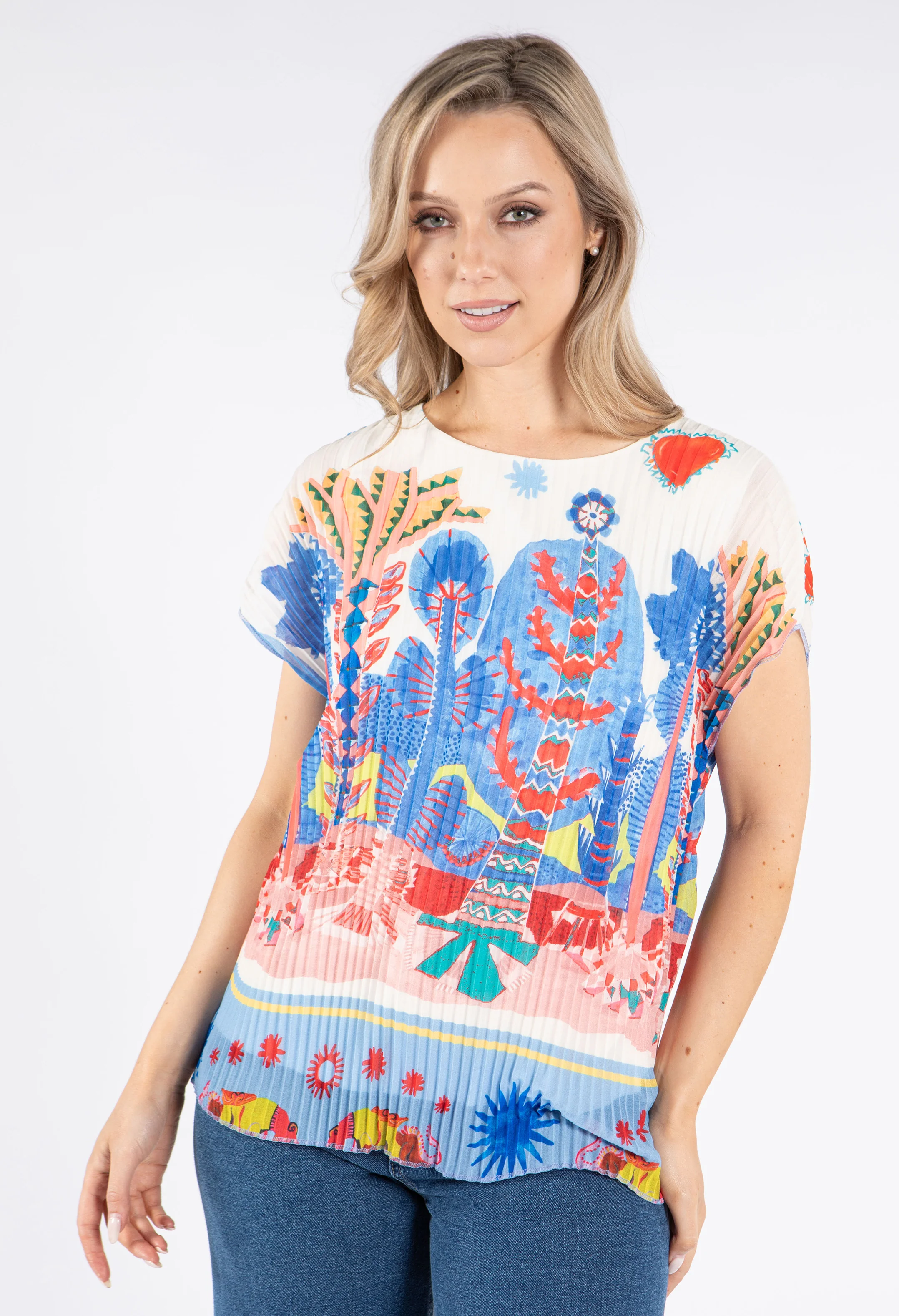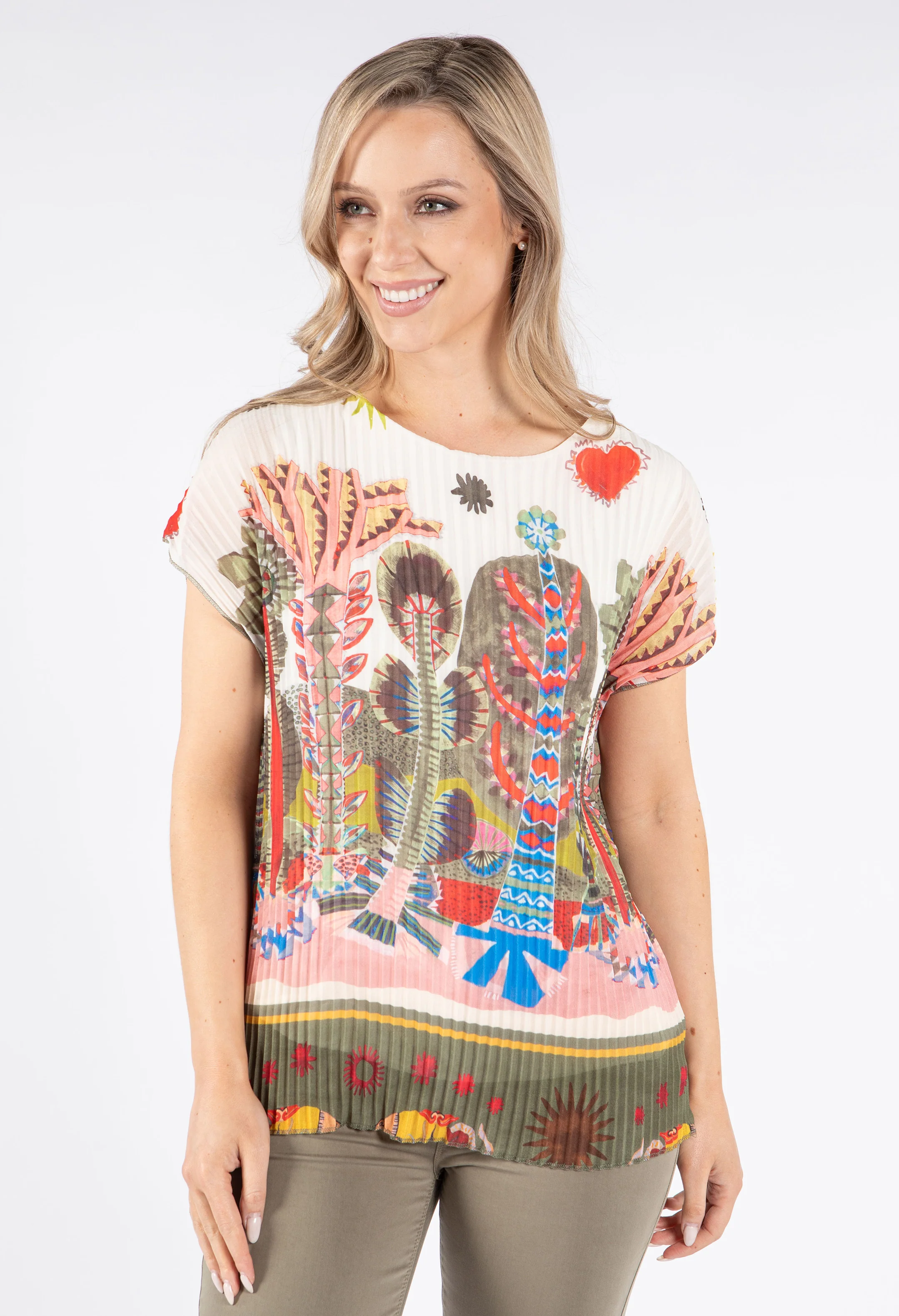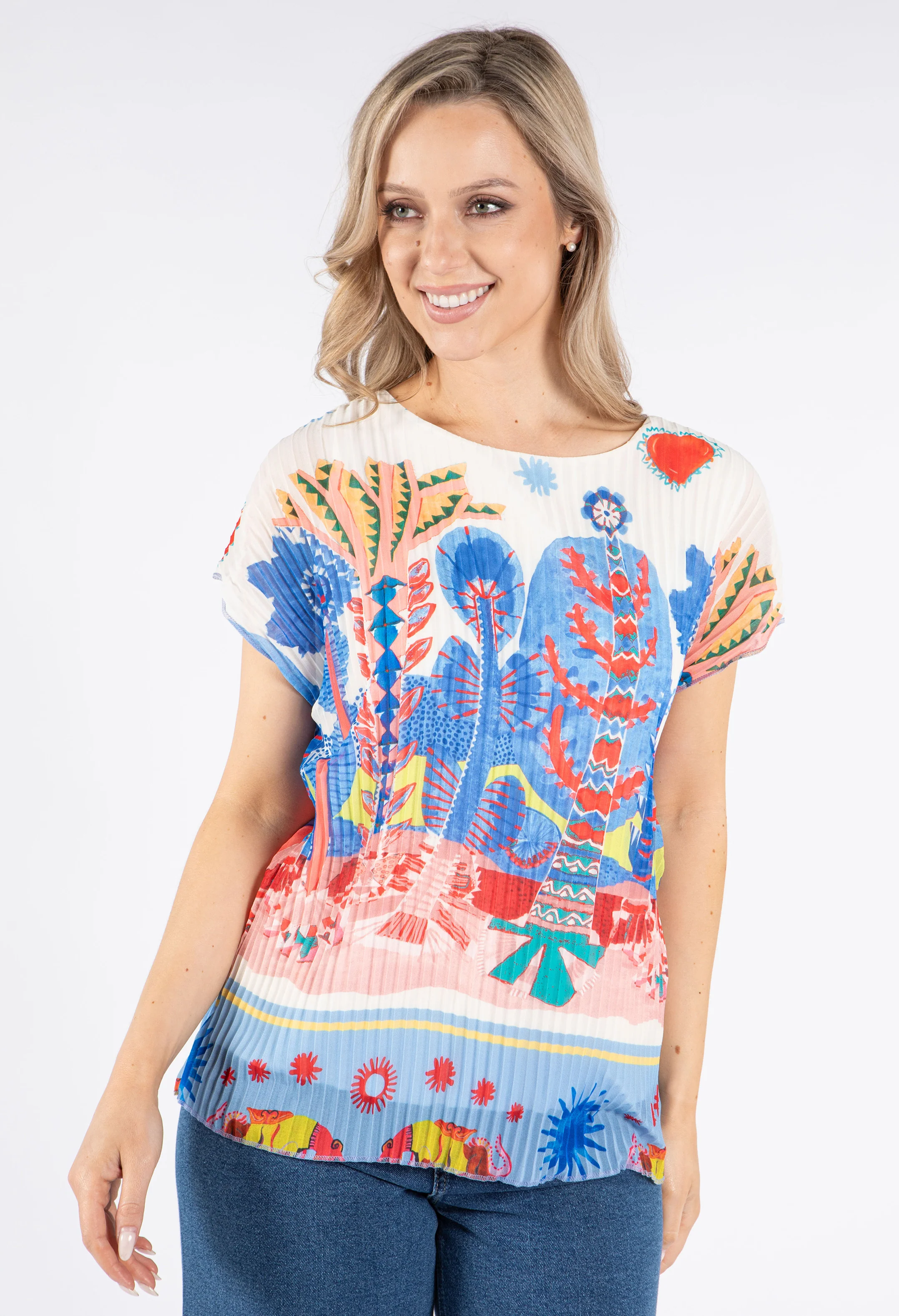 Plisse Pleated Leaf Print Top