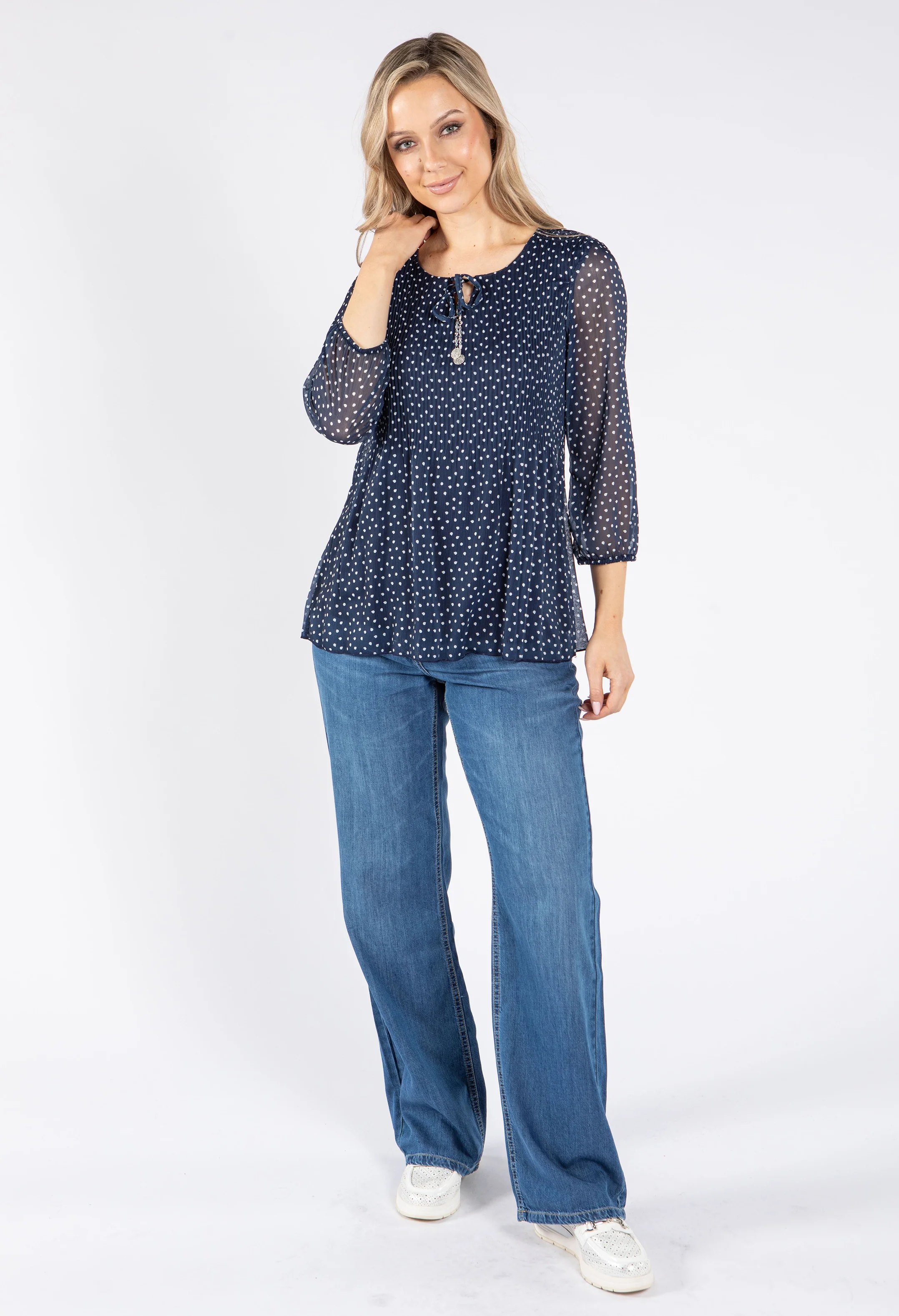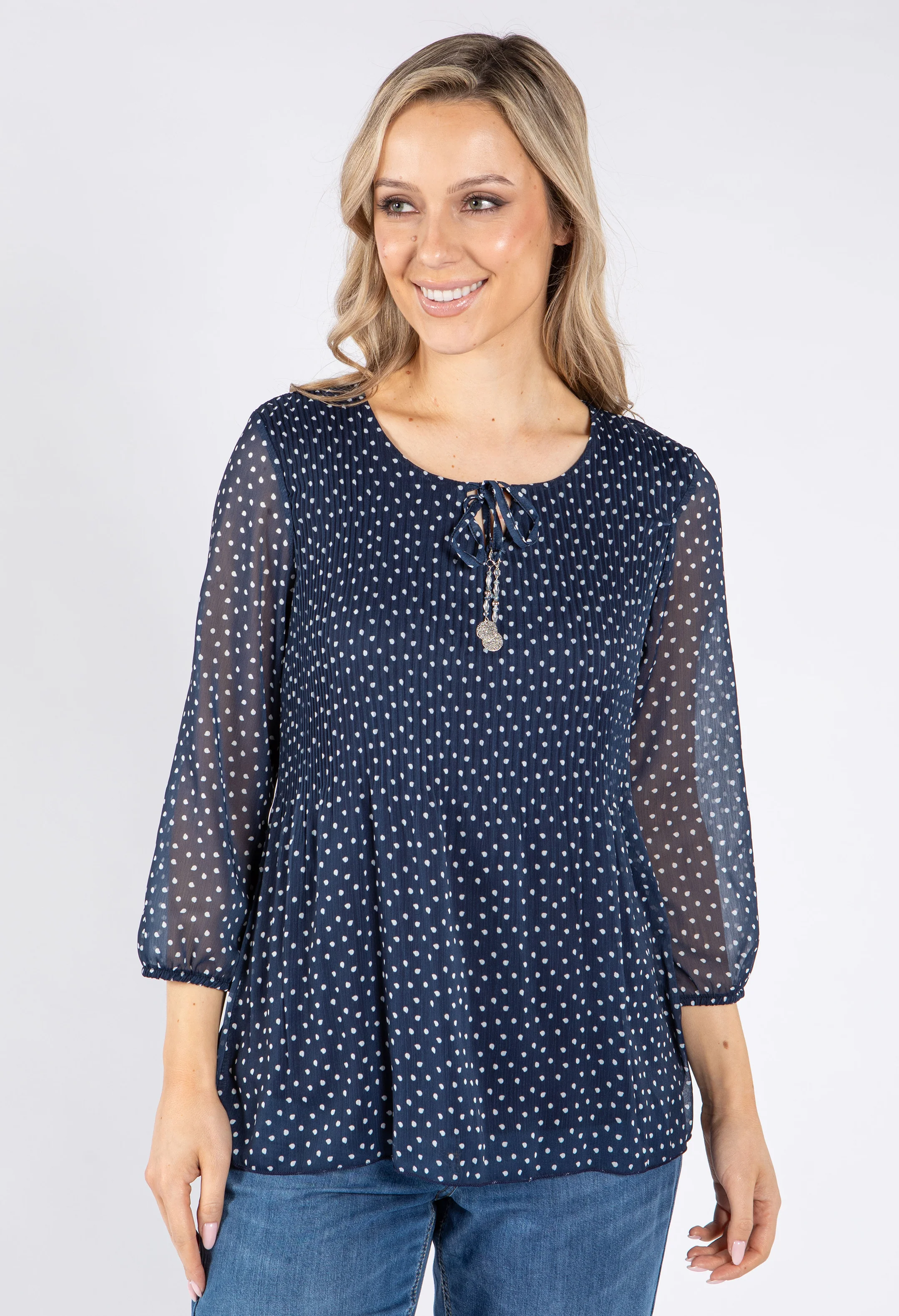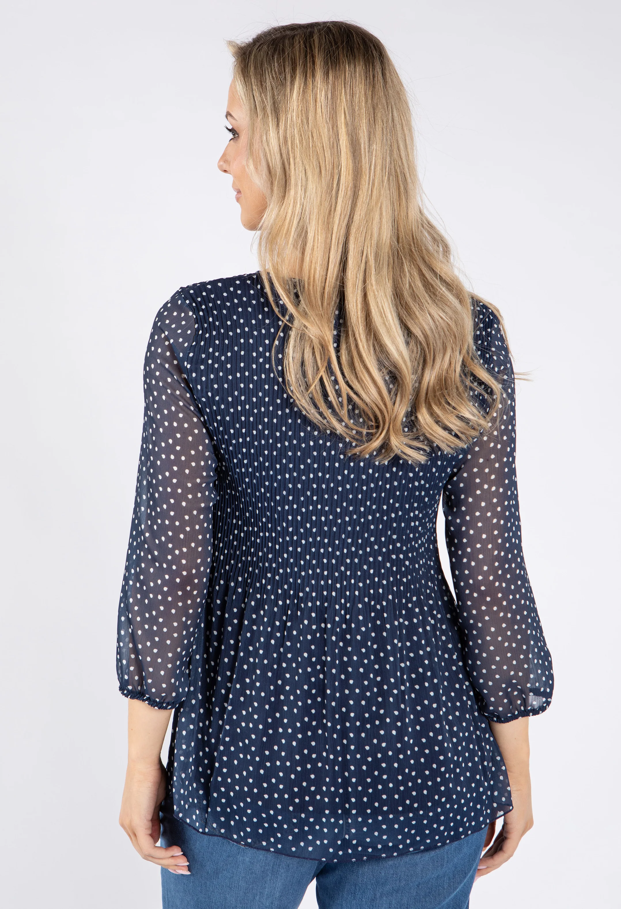 Plisse Pleated Polka Dot Top