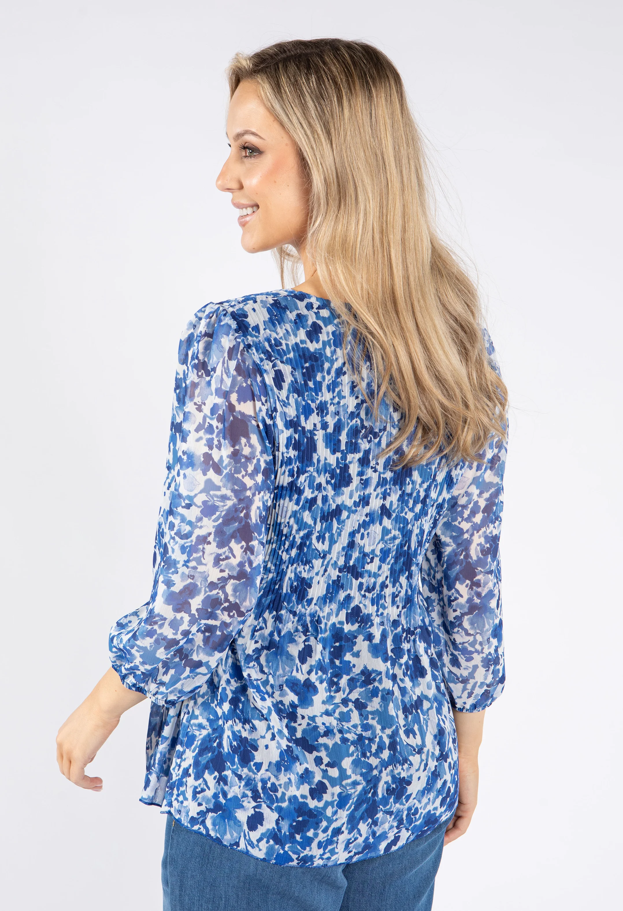Plisse Pleated Floral Print Top