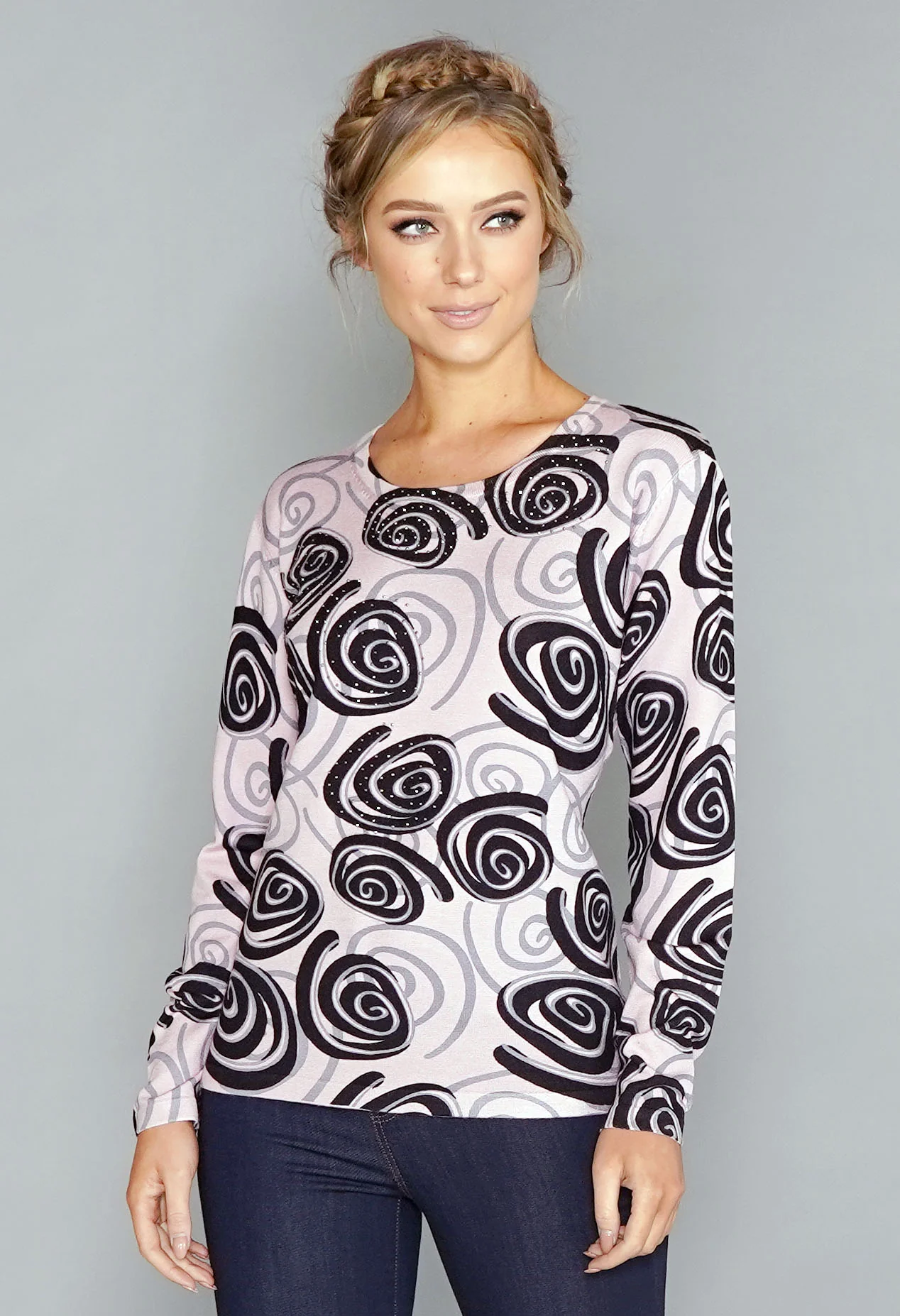 Pink Swirl Print Pullover with Diamonte Detail