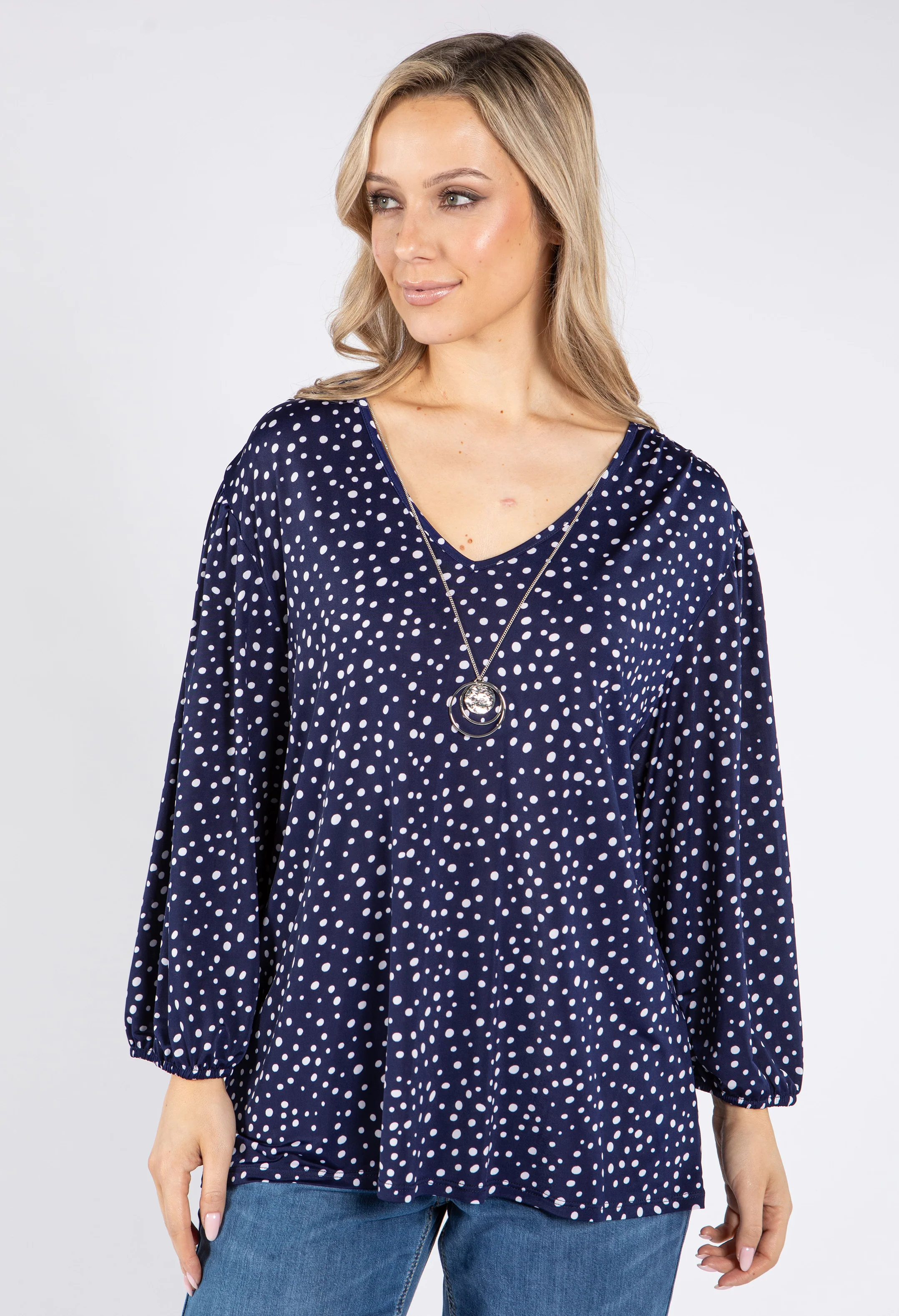 Polka Dot Soft V Neck Top