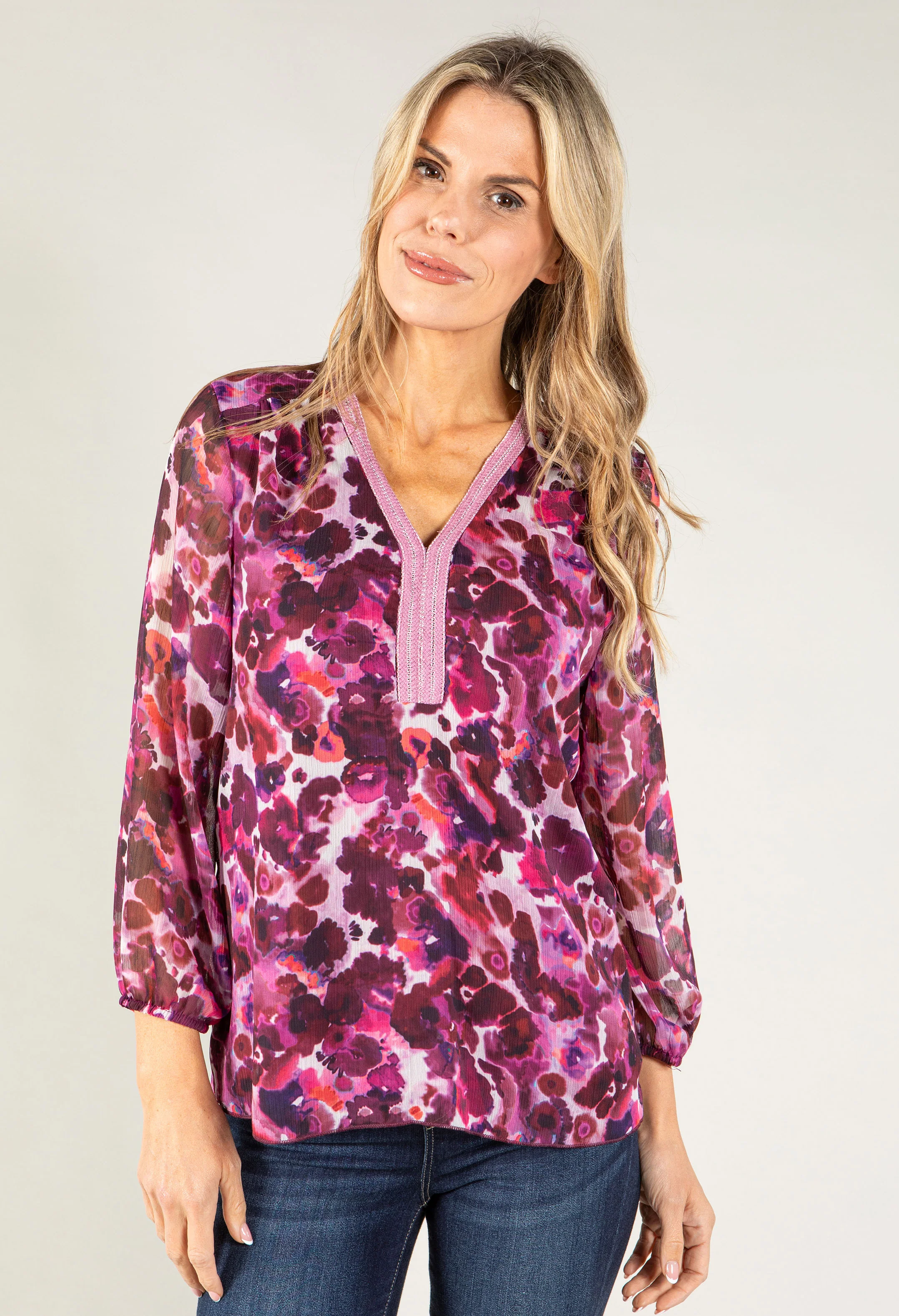 Poppy Print V Neck Top