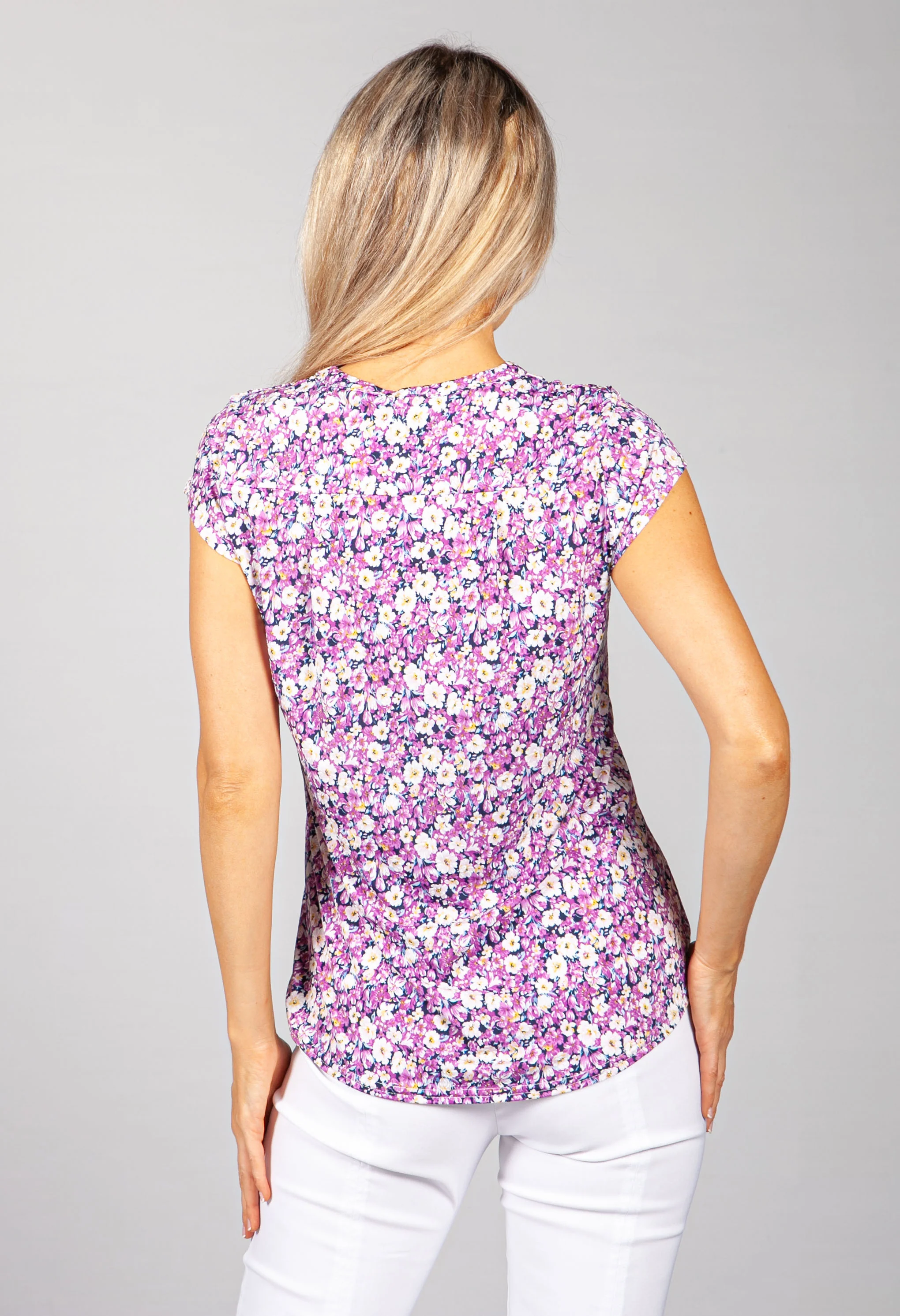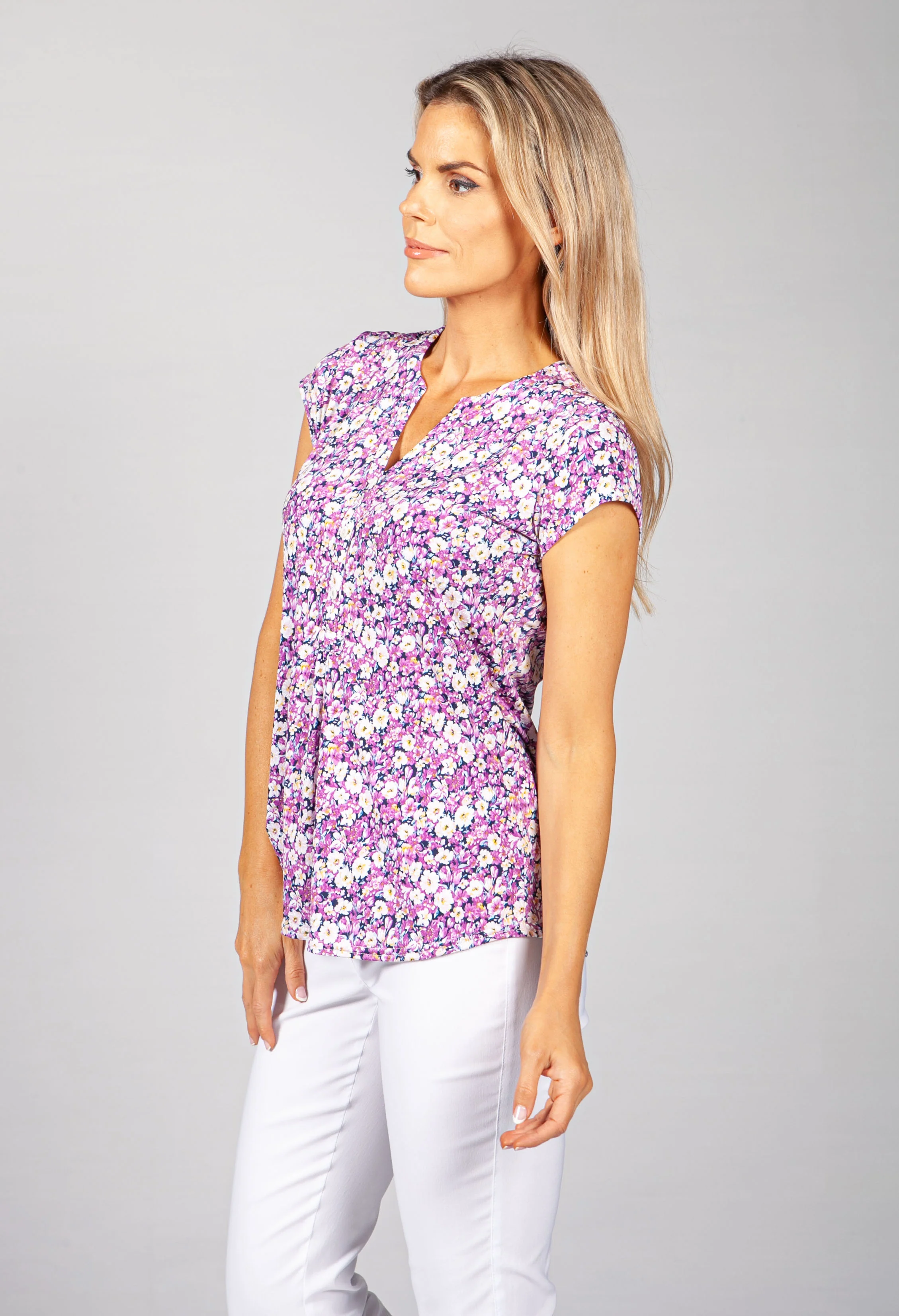 PAMELA SCOTT FLORAL V NECK TOP IN LILAC