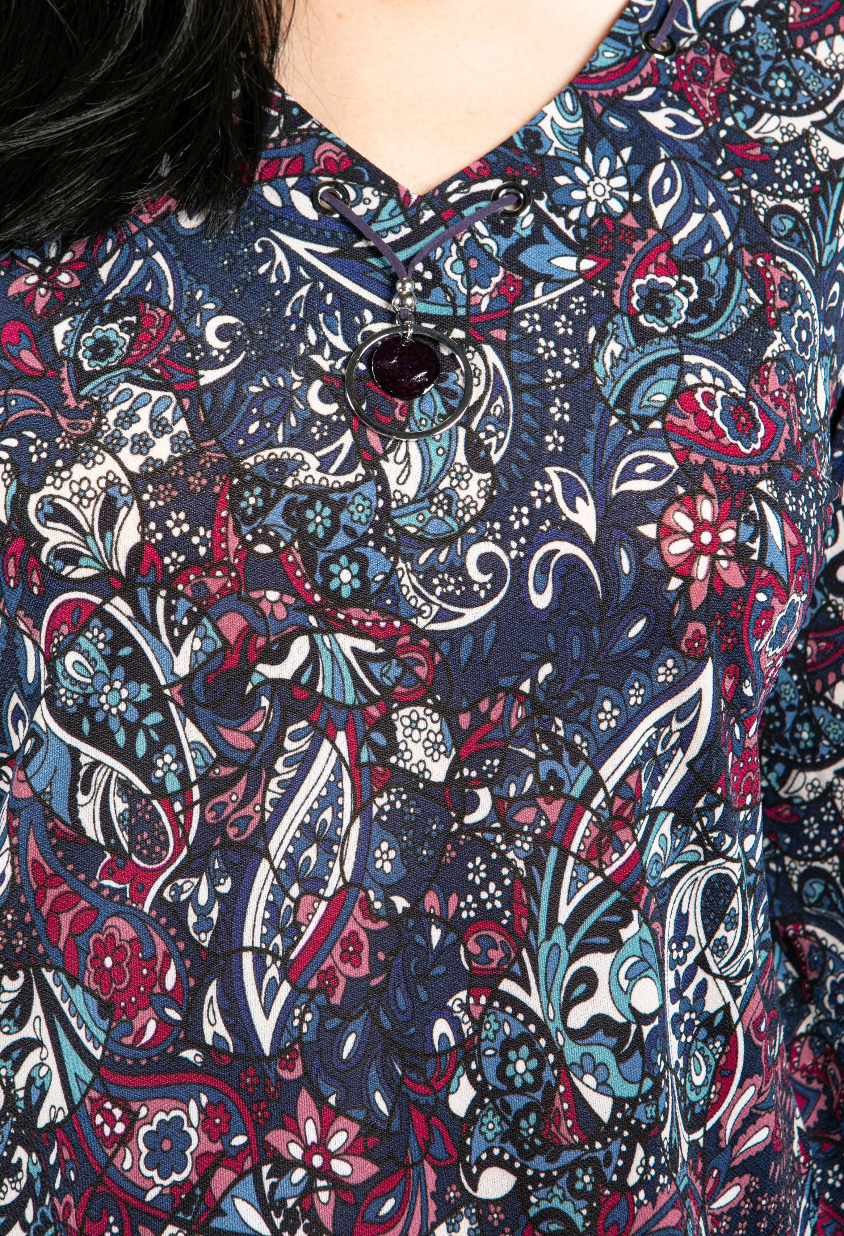 Paisley Print Top with Necklace Detail