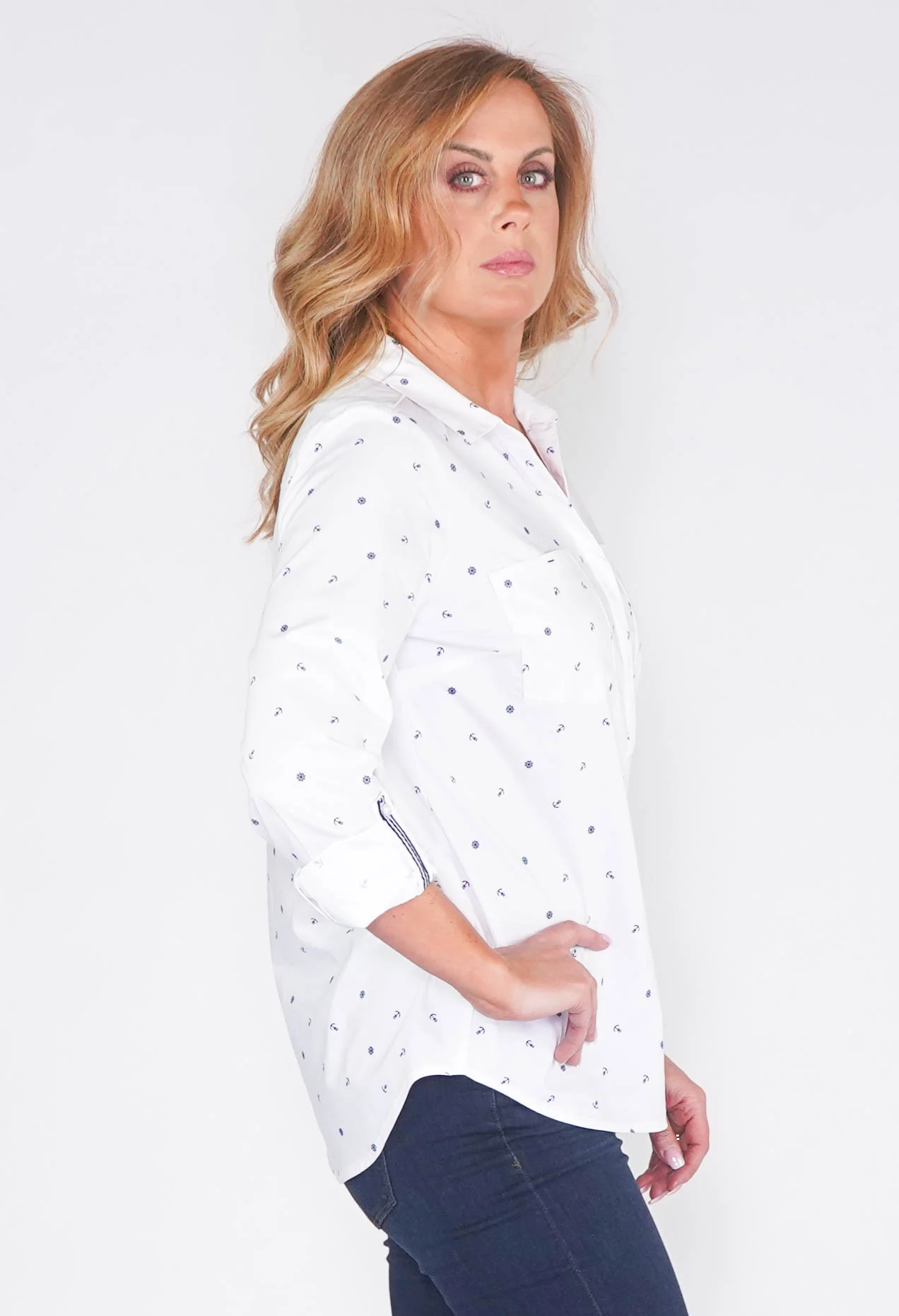 OVER SIZE SHIRT WITH ANCHOR PRINT