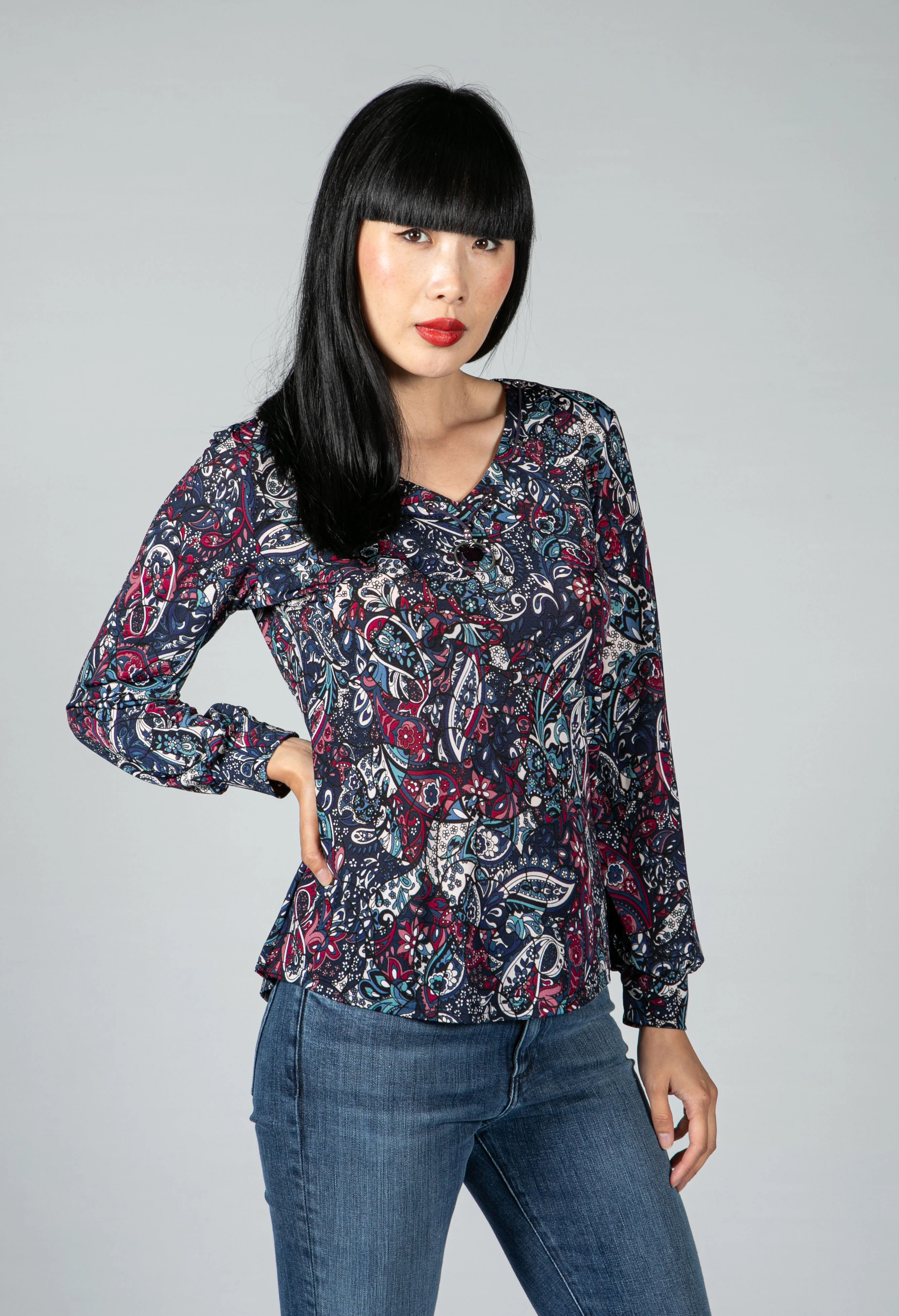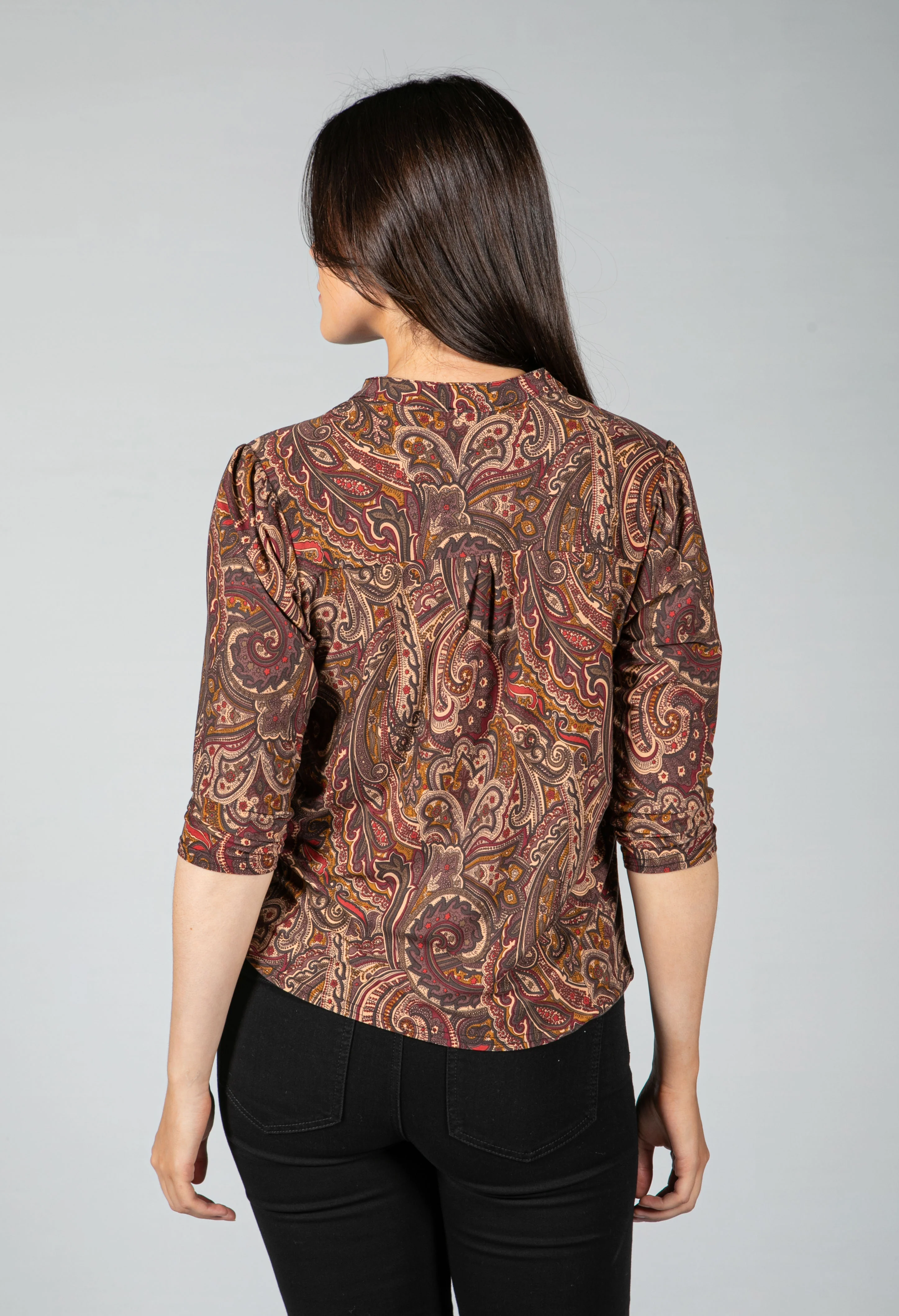 Paisley V neck blouse in Wine