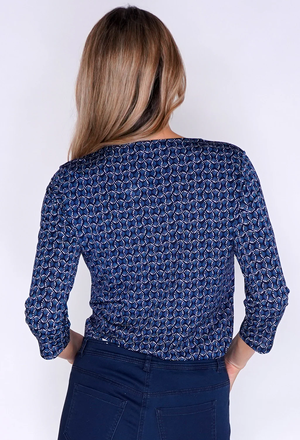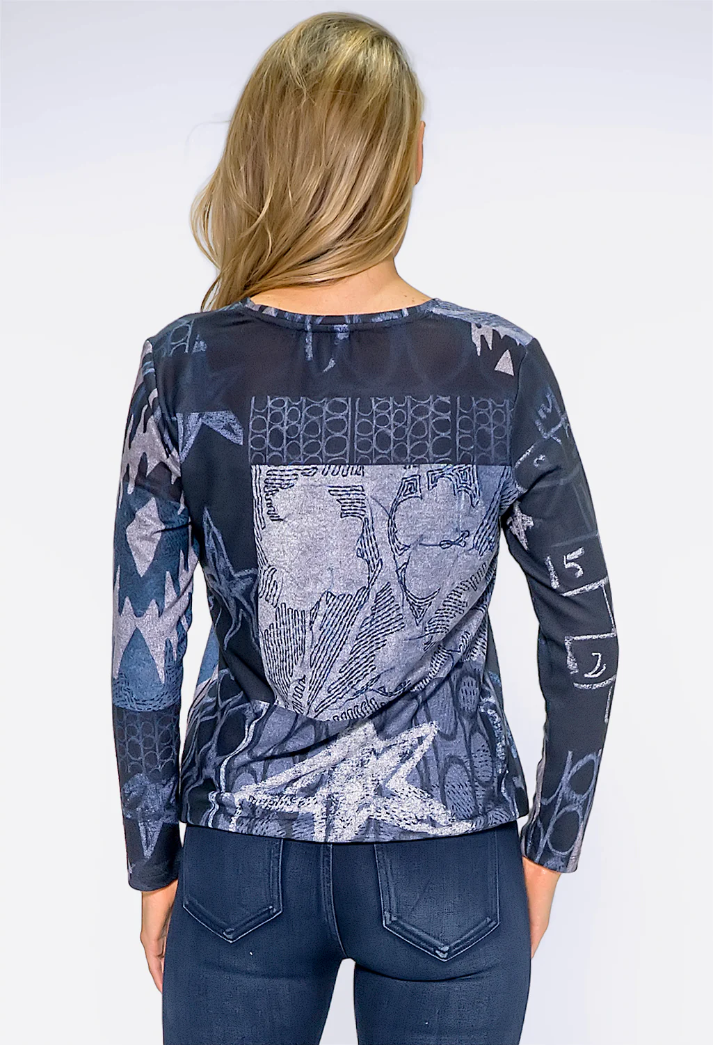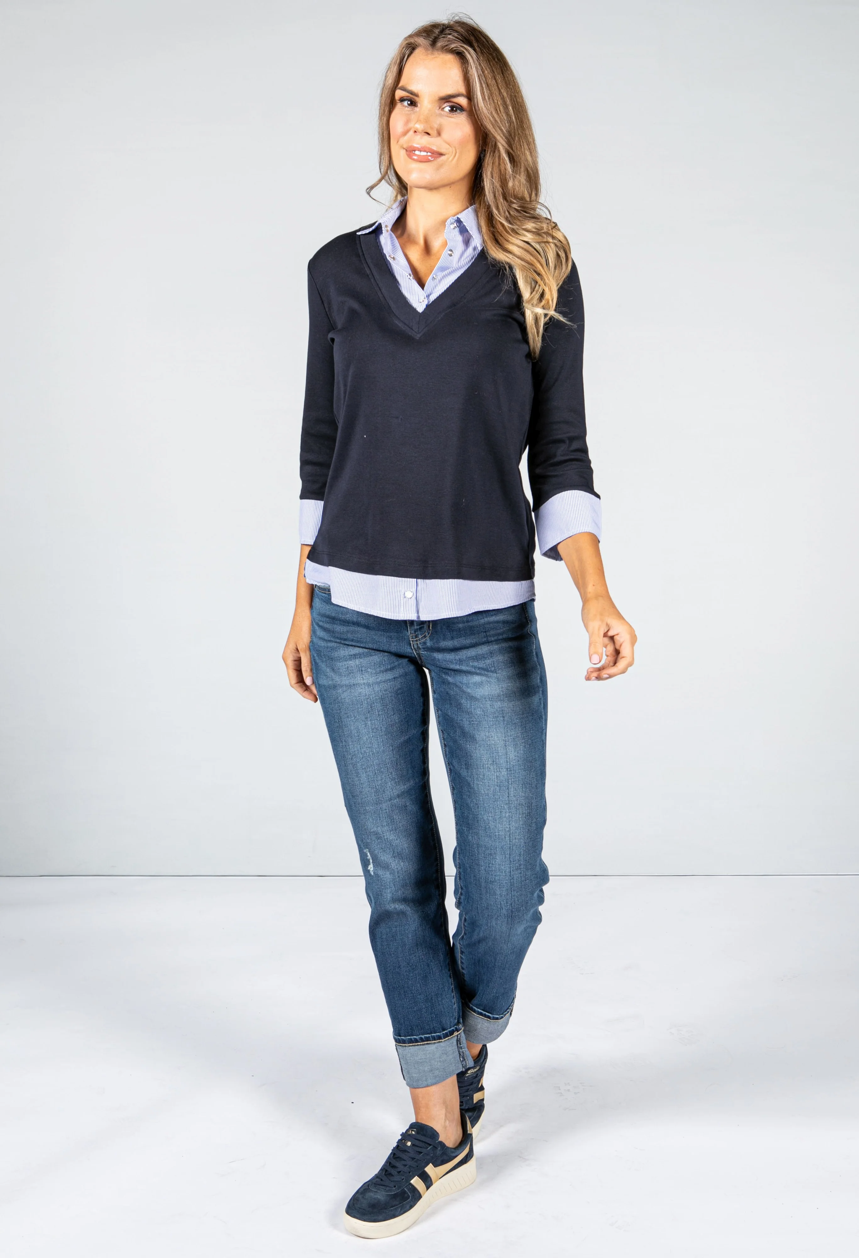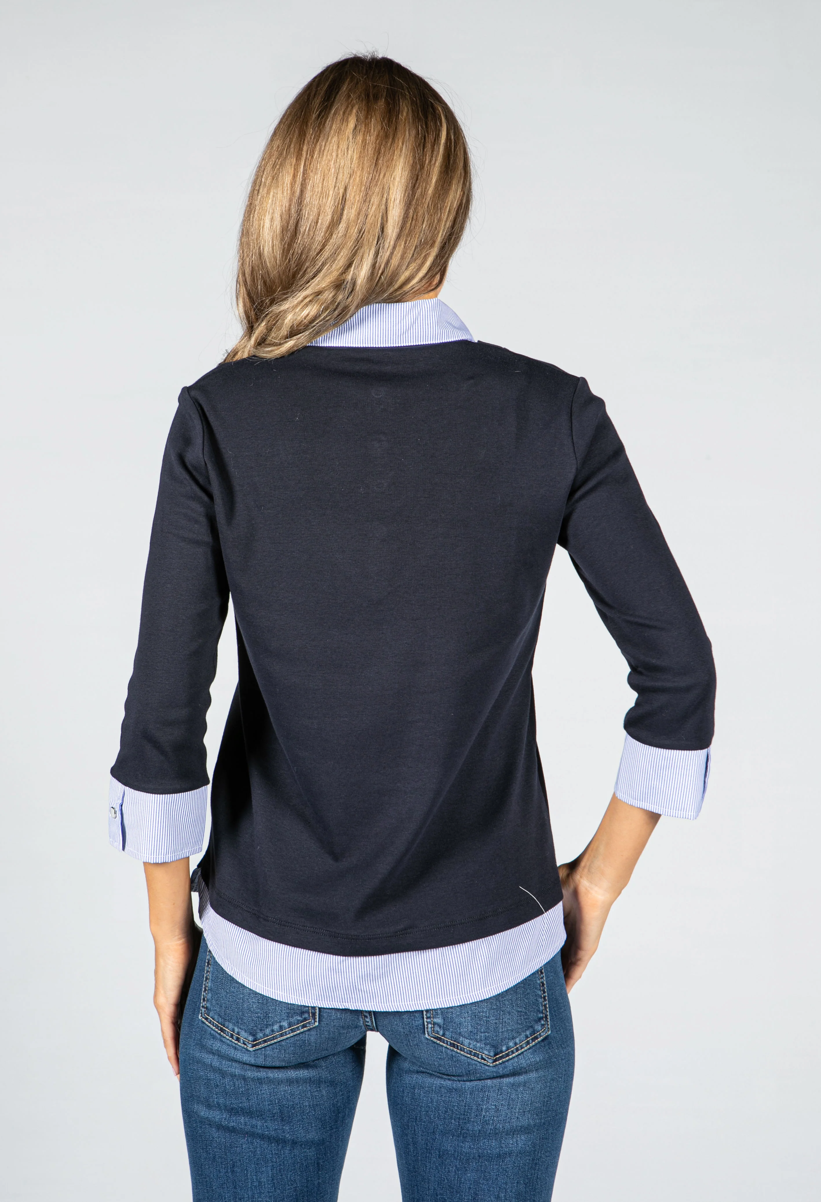 Navy Long Sleeve Top with Attached Under Shirt Detail
