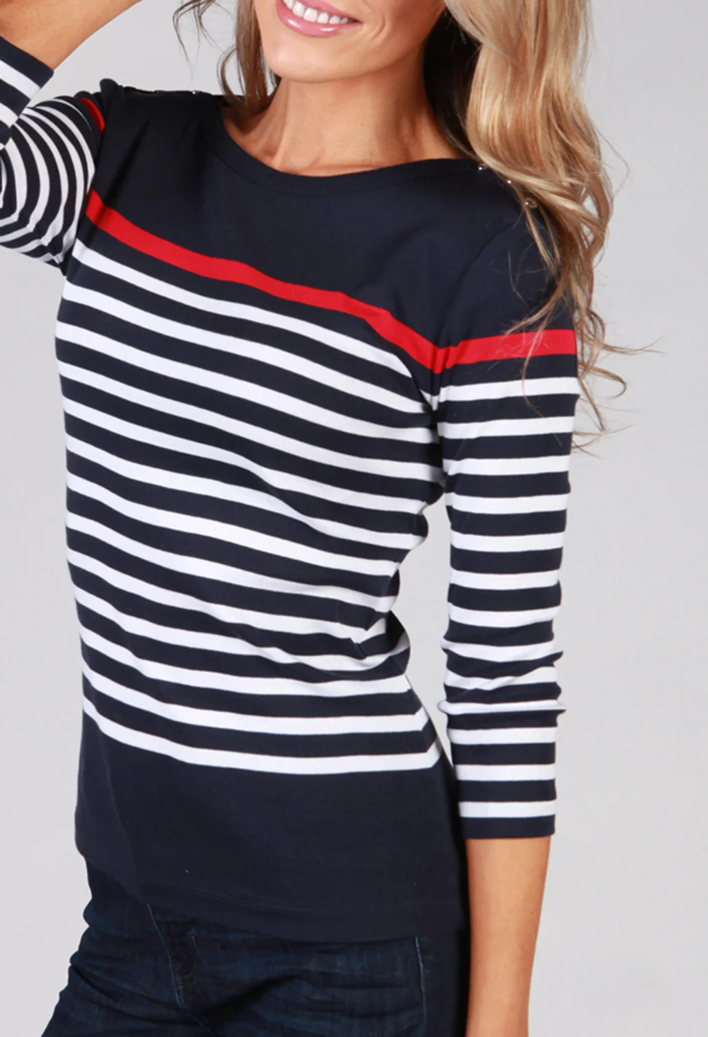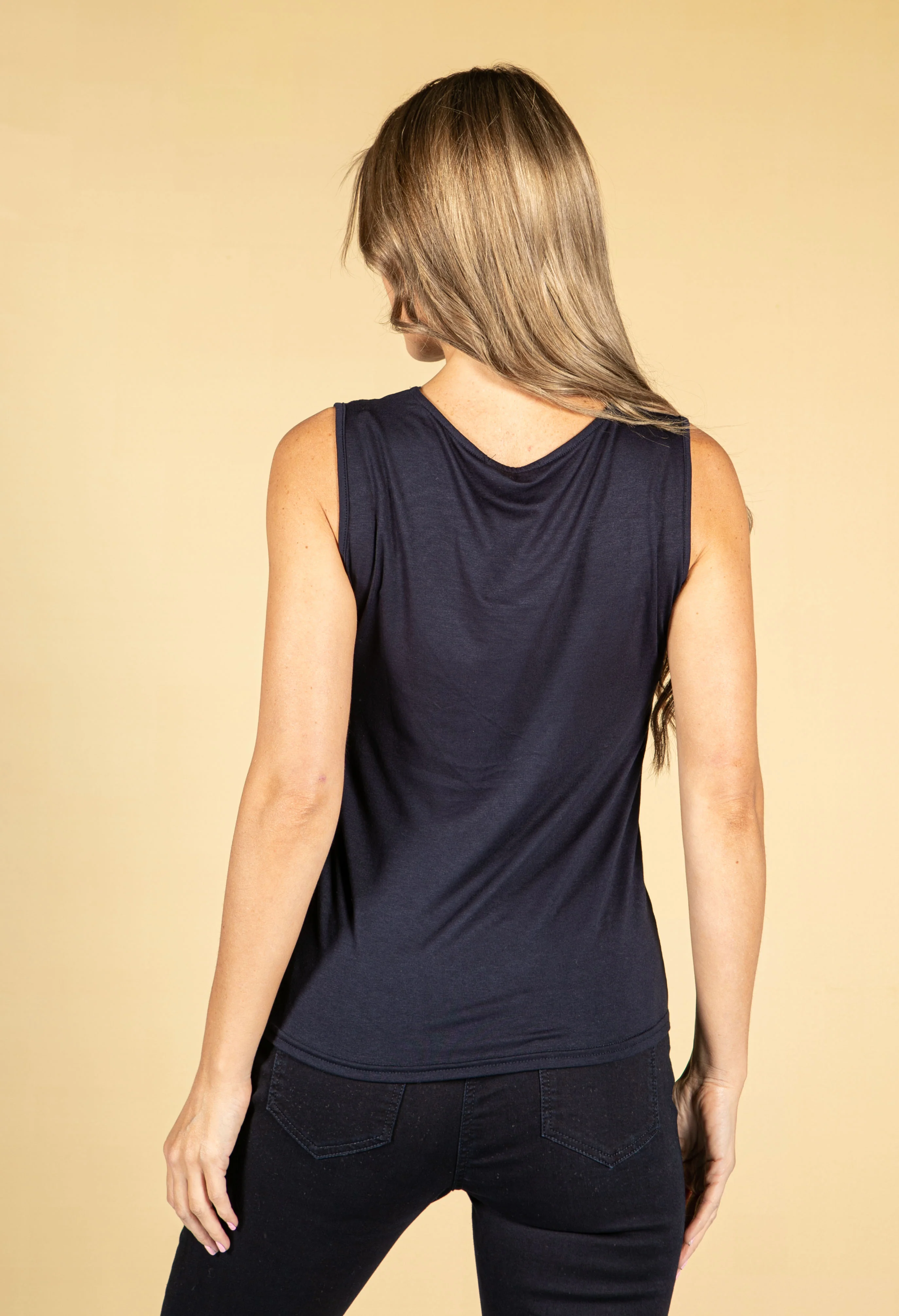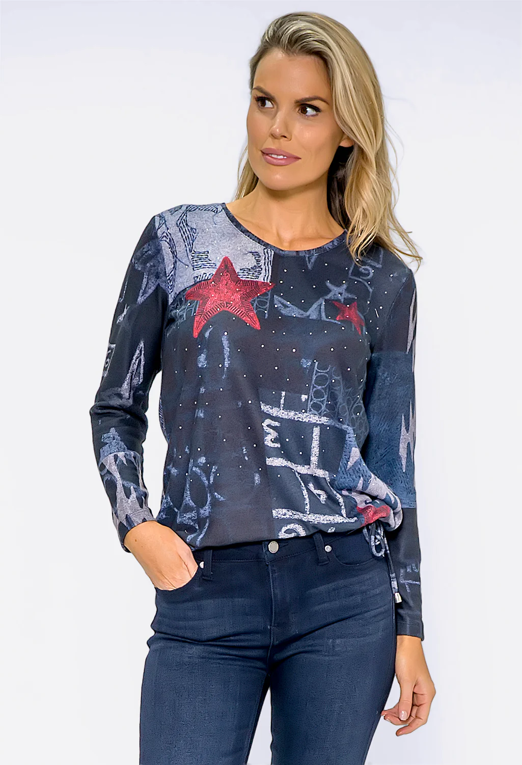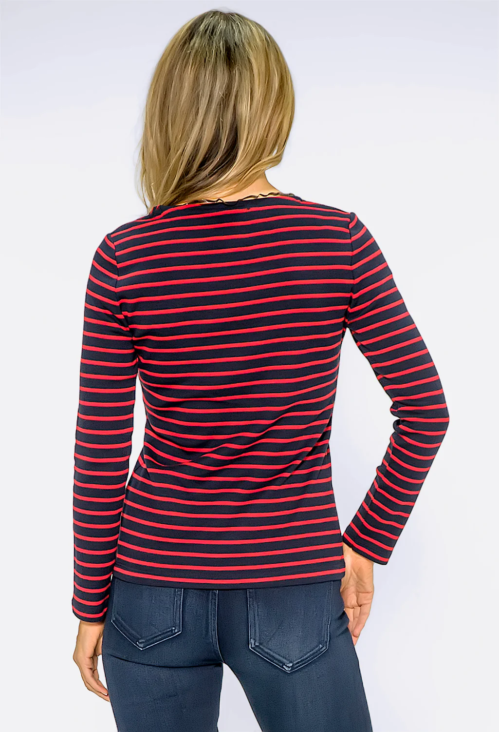 Navy Long Sleeve Top with Attached Under Shirt Detail