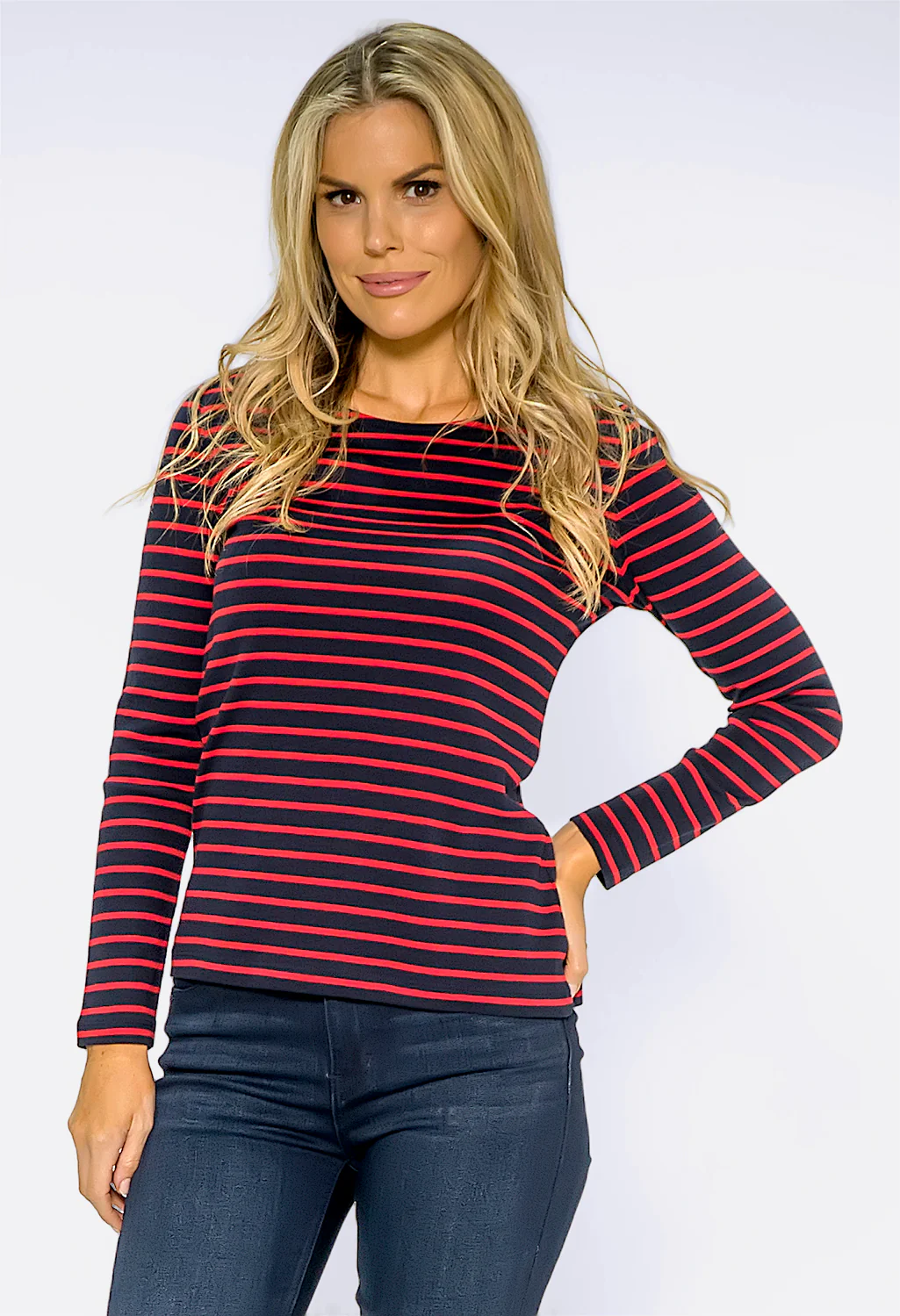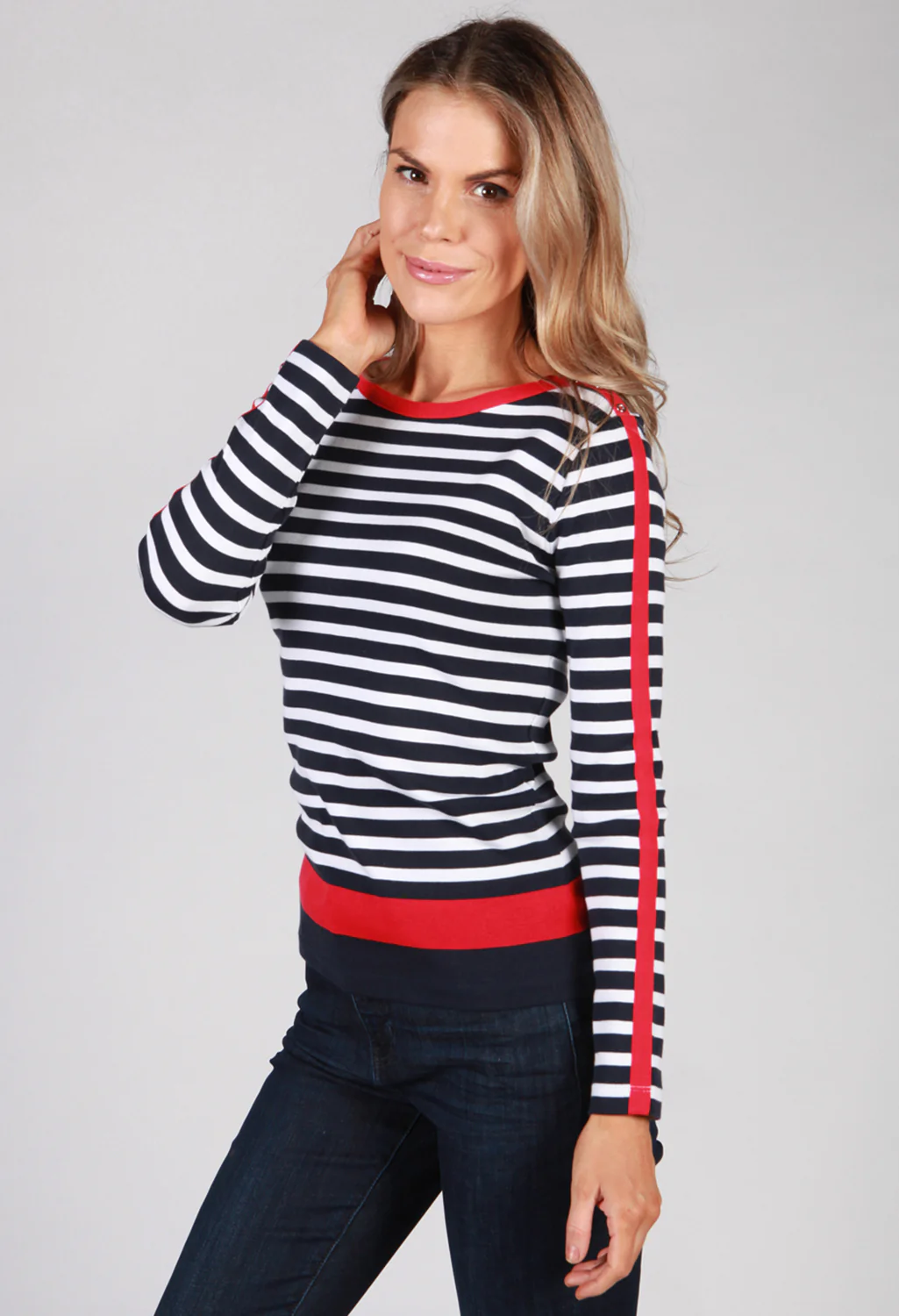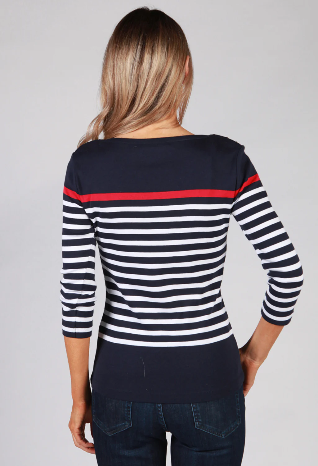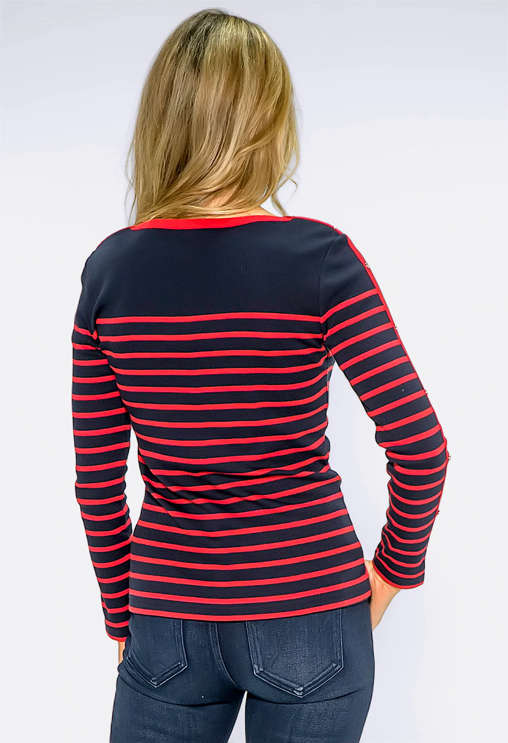 Navy Long Sleeve Top with Attached Under Shirt Detail