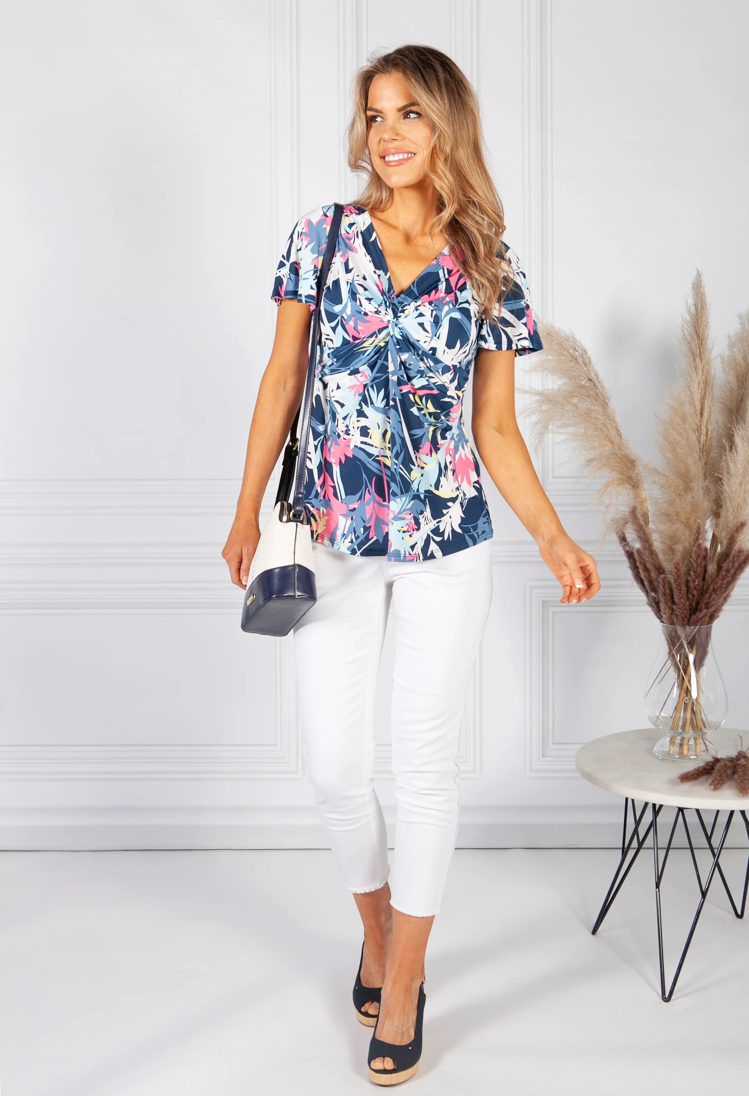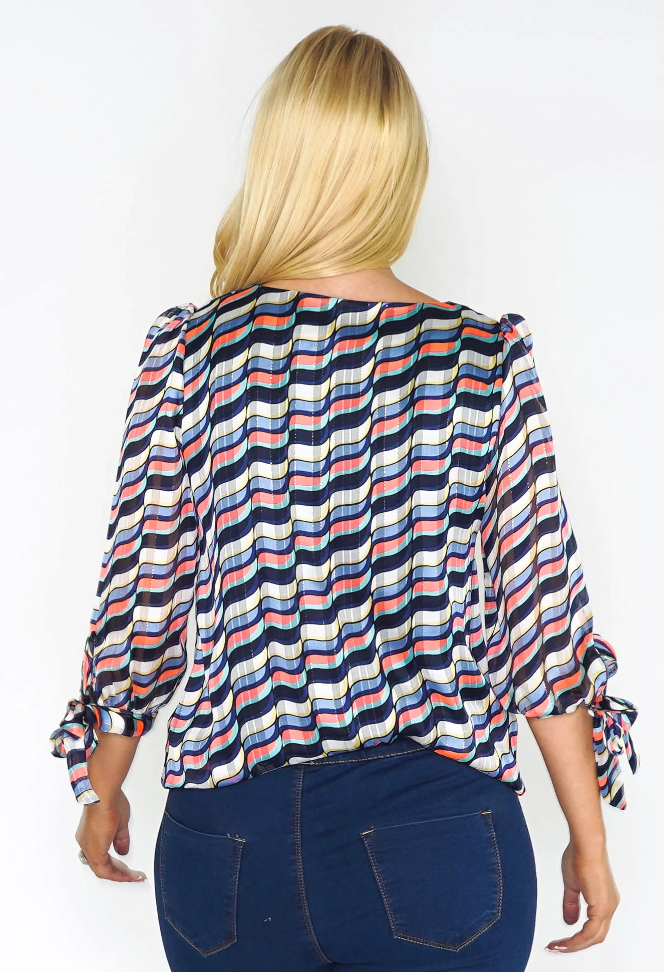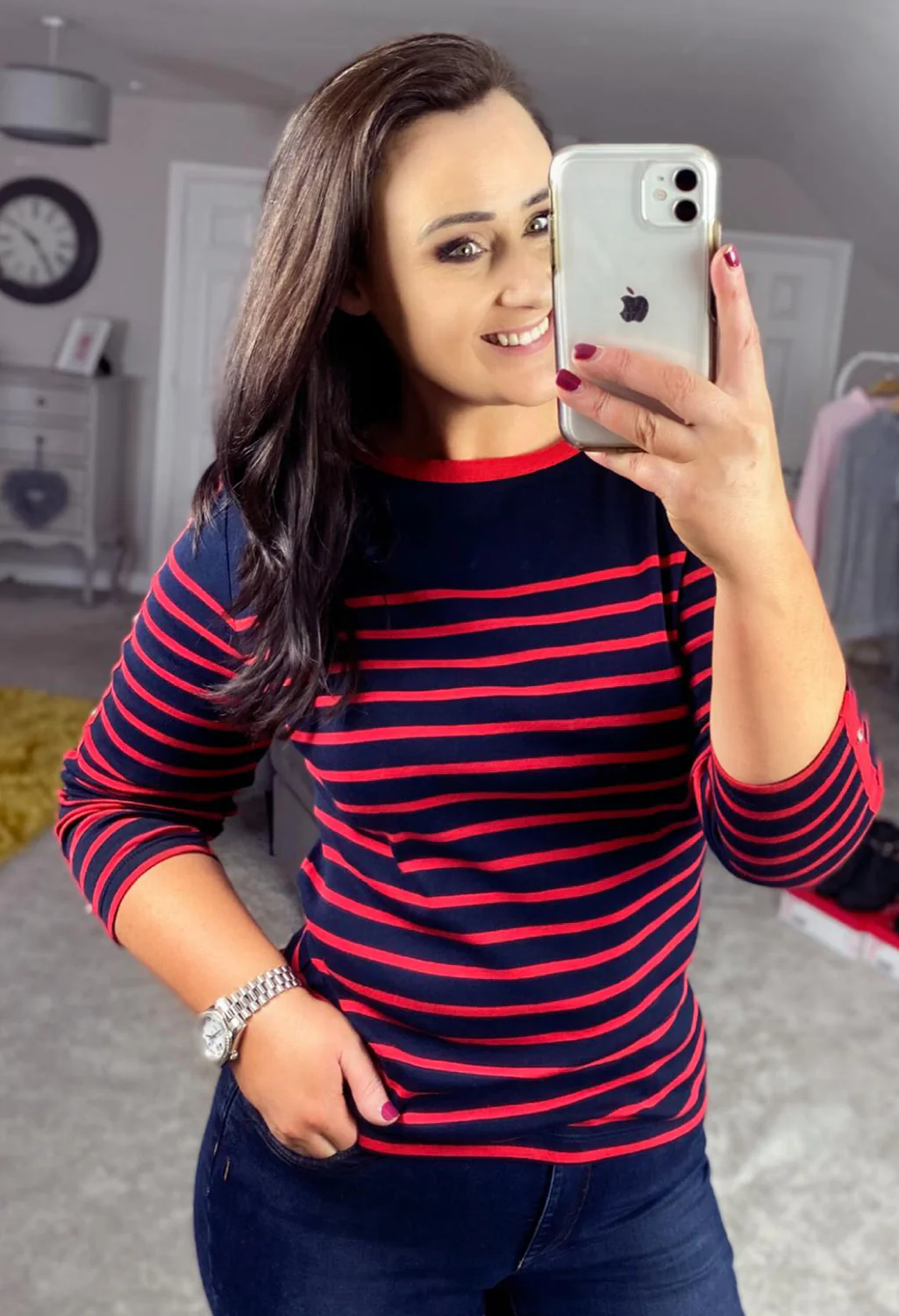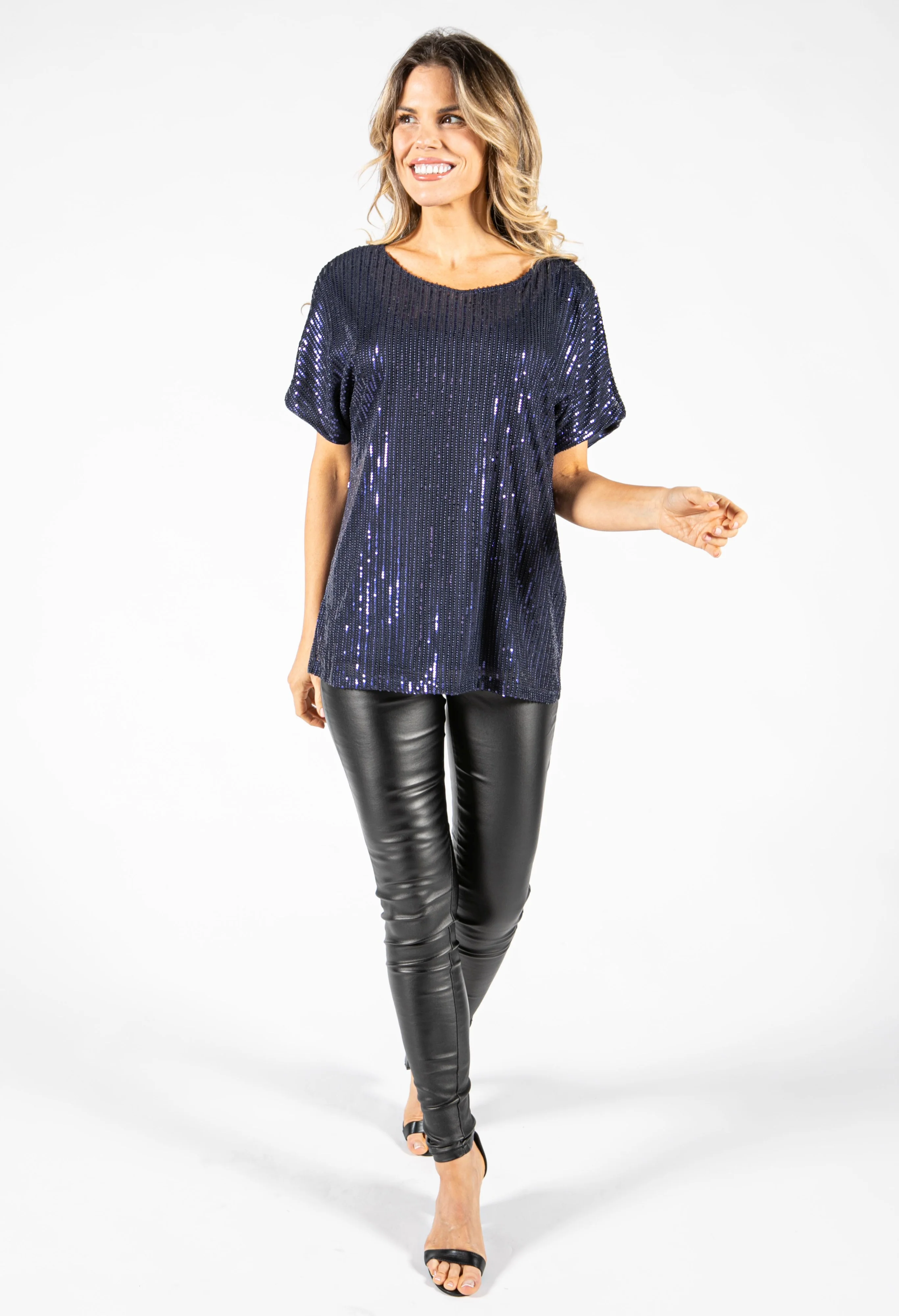 Navy Long Sleeve Top with Attached Under Shirt Detail