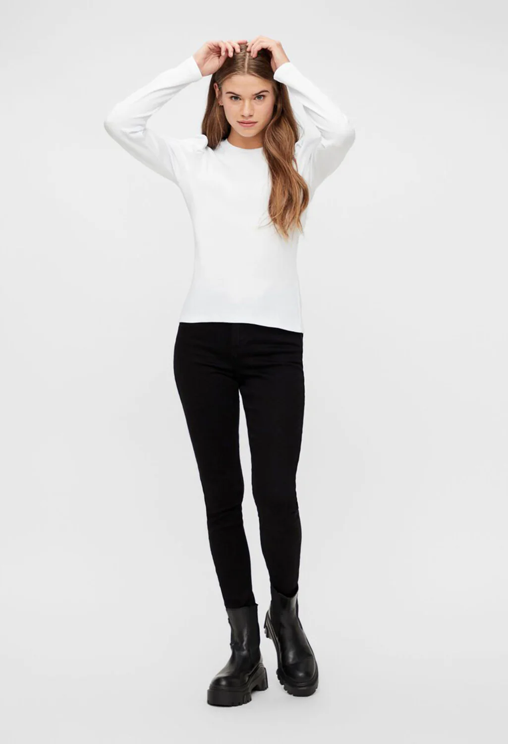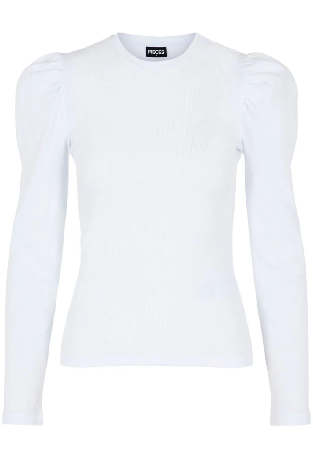 LONG PUFF SLEEVE RIBBED TOP IN WHITE
