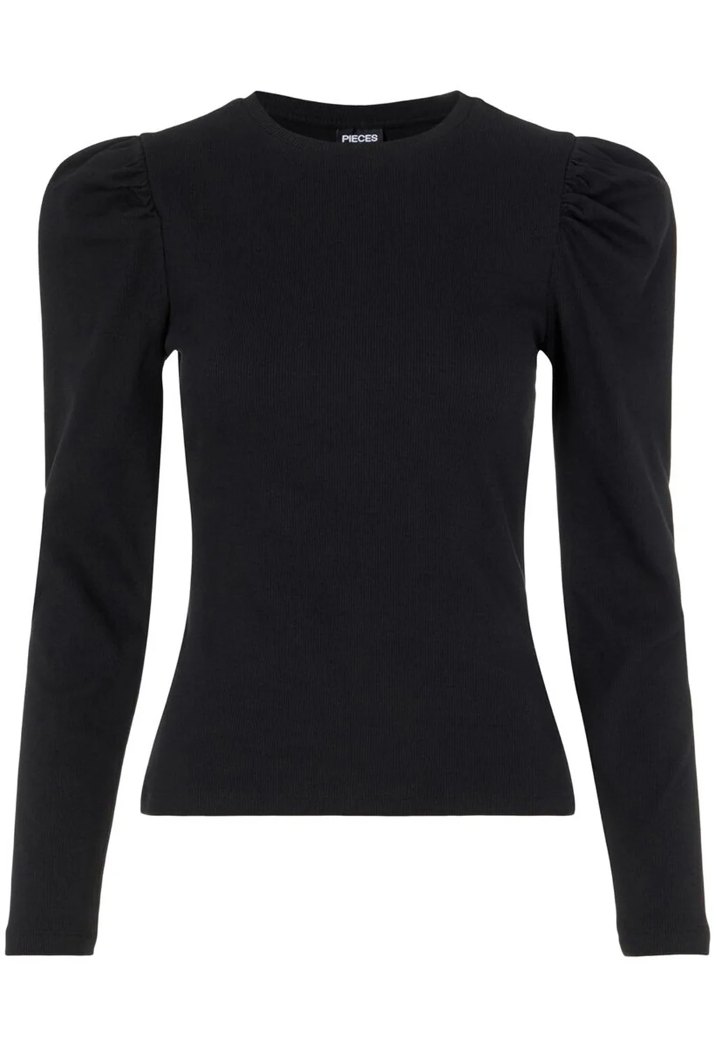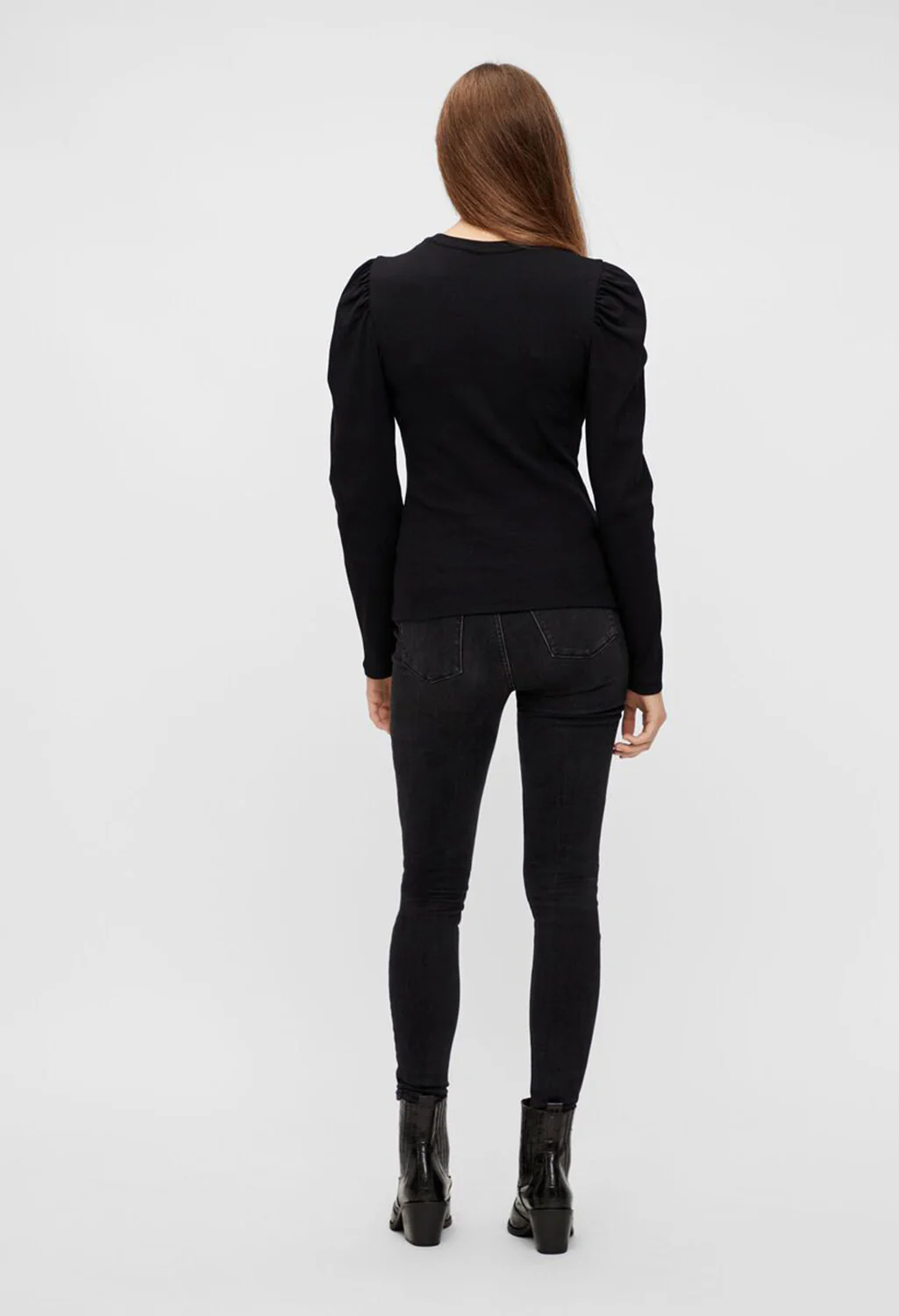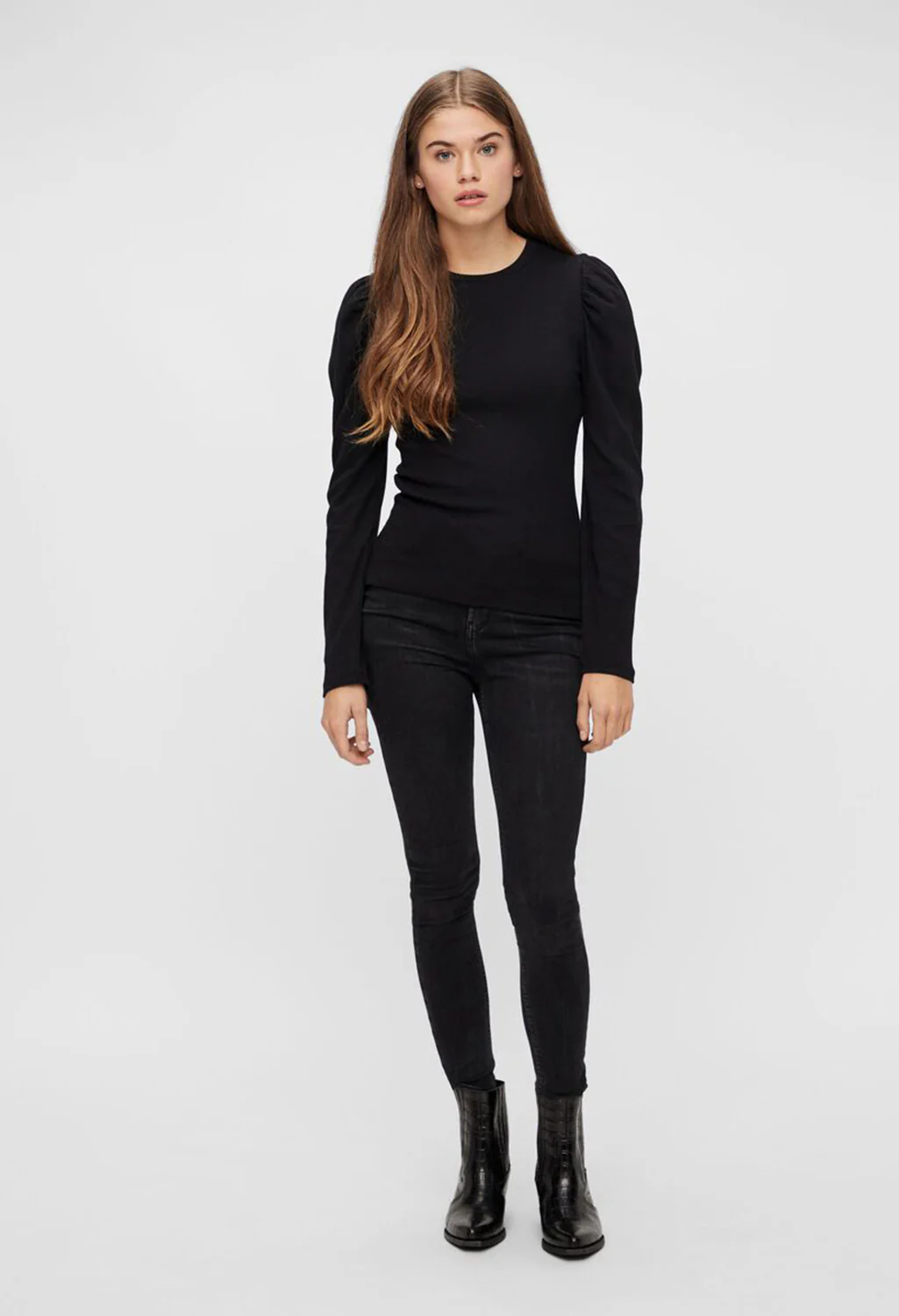 LONG PUFF SLEEVE RIBBED TOP IN BLACK