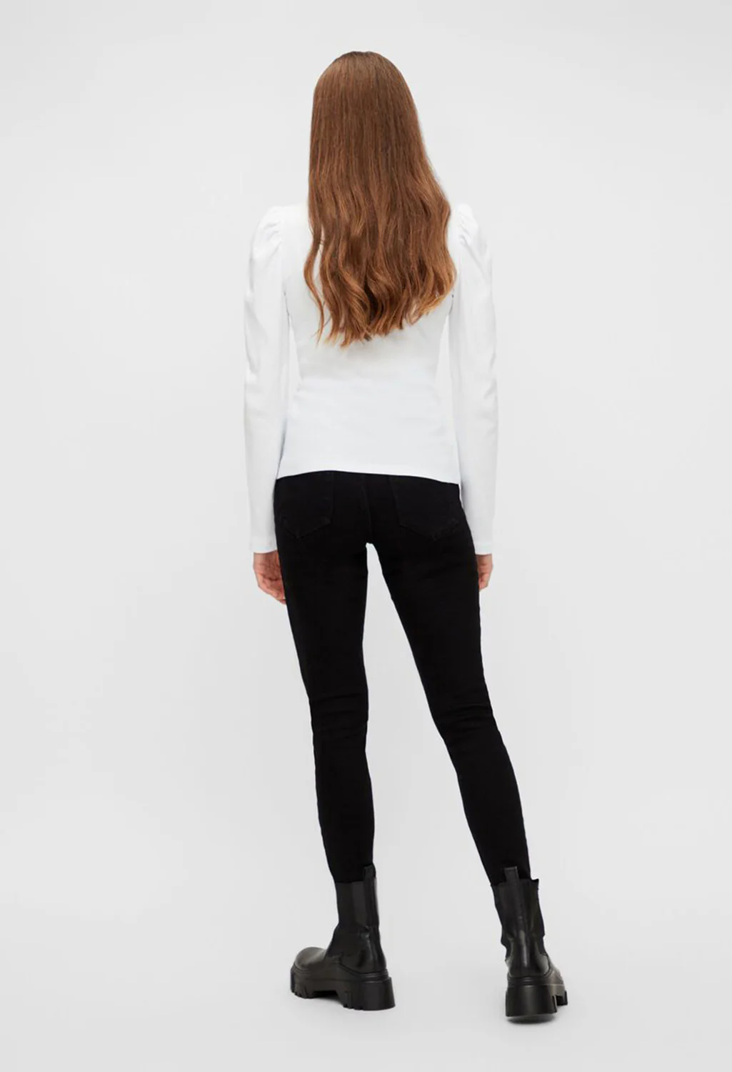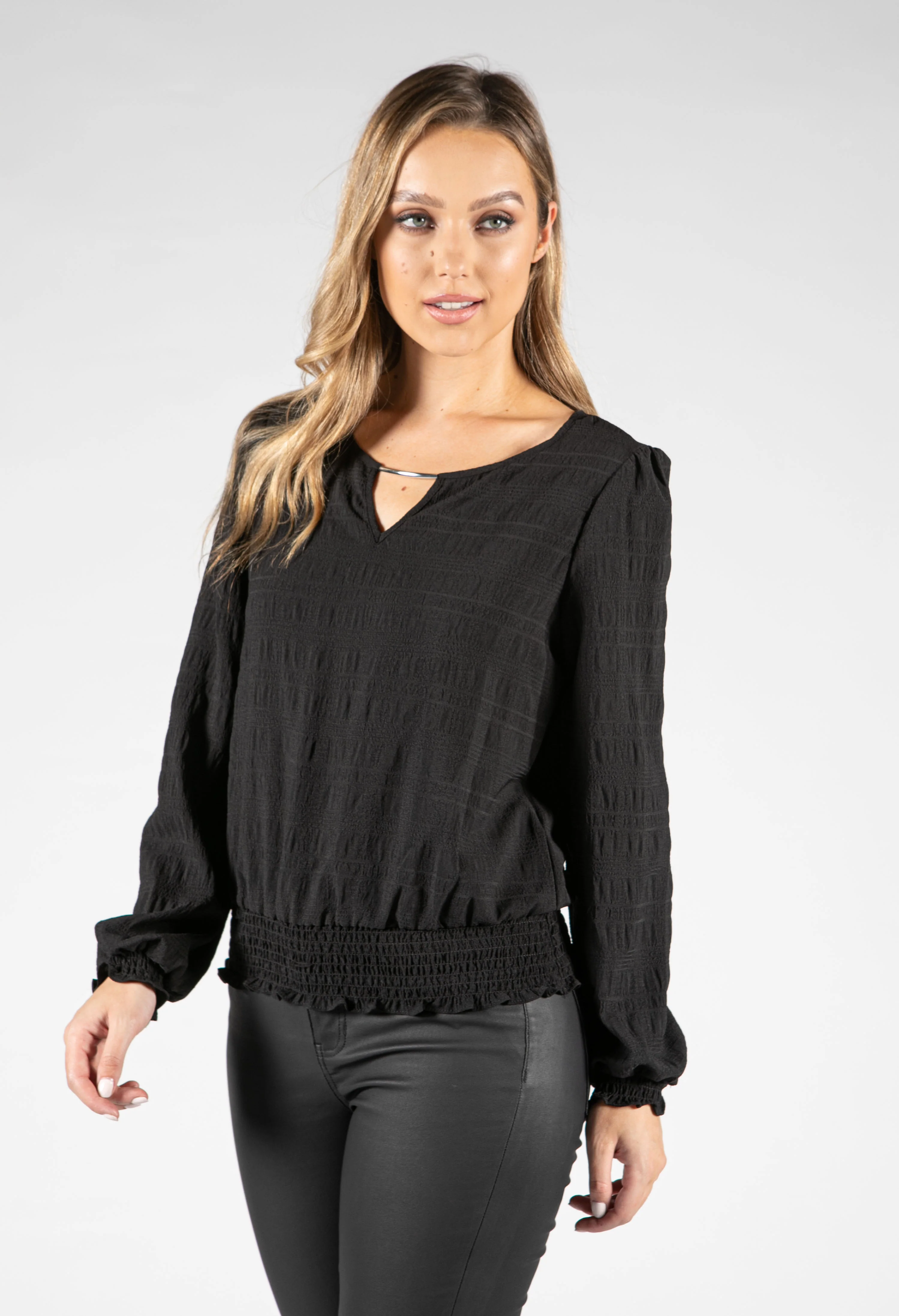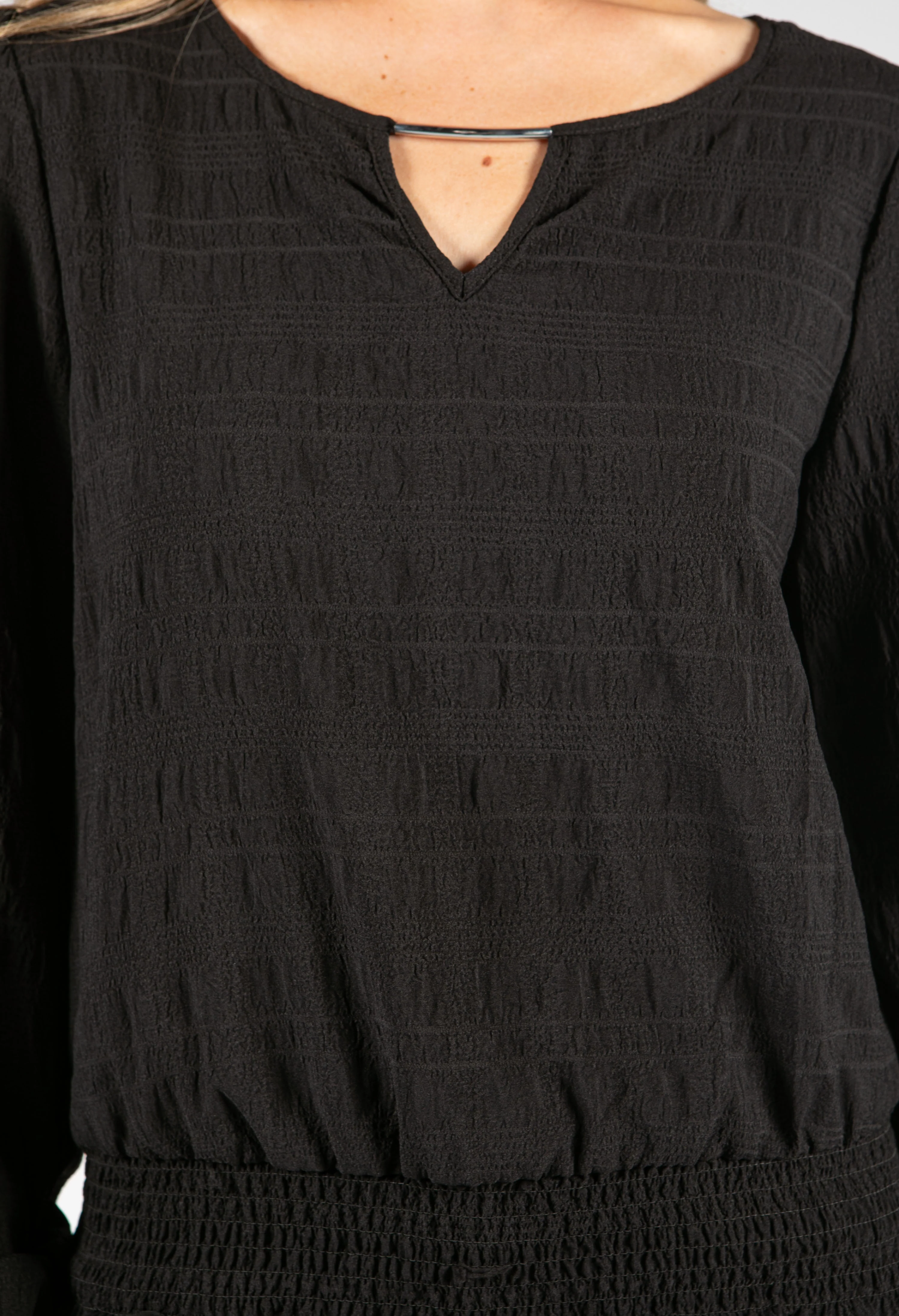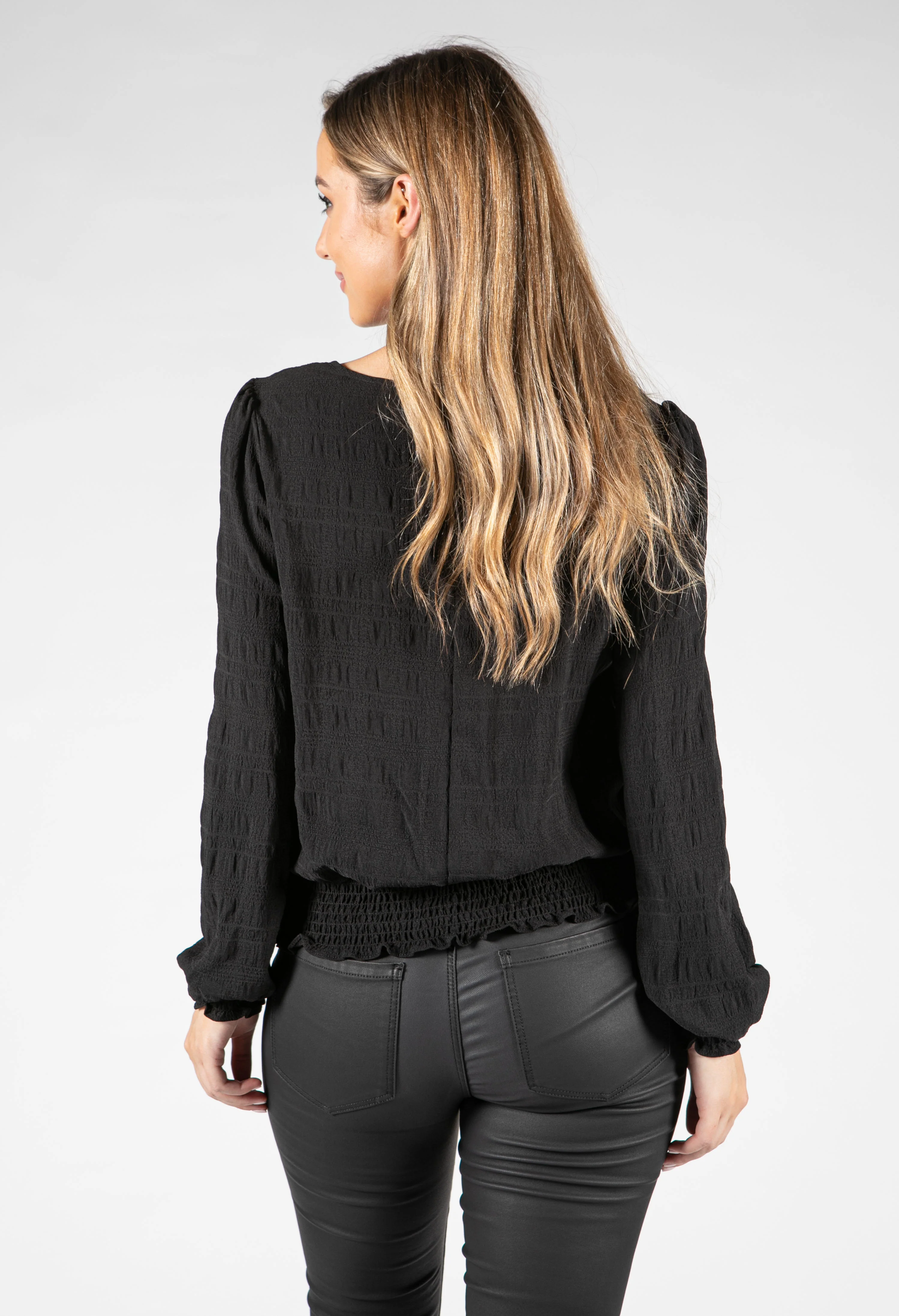 LONG PUFF SLEEVE RIBBED TOP IN BLACK
