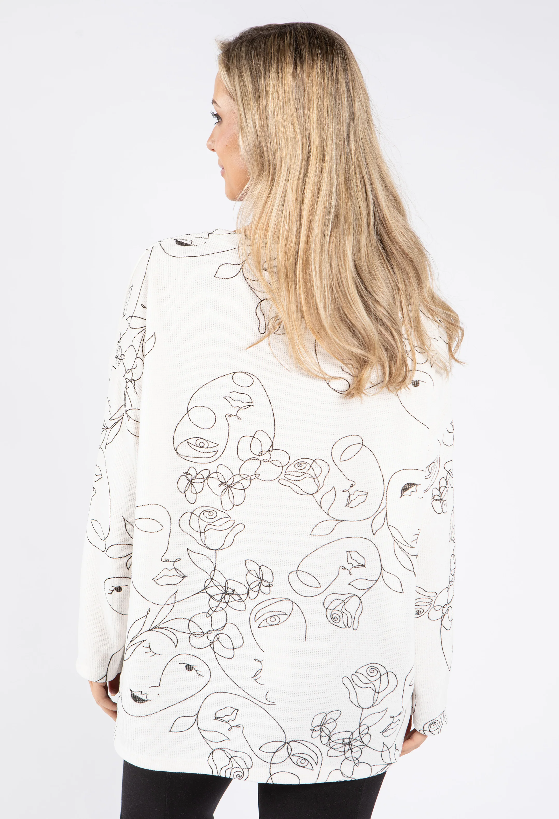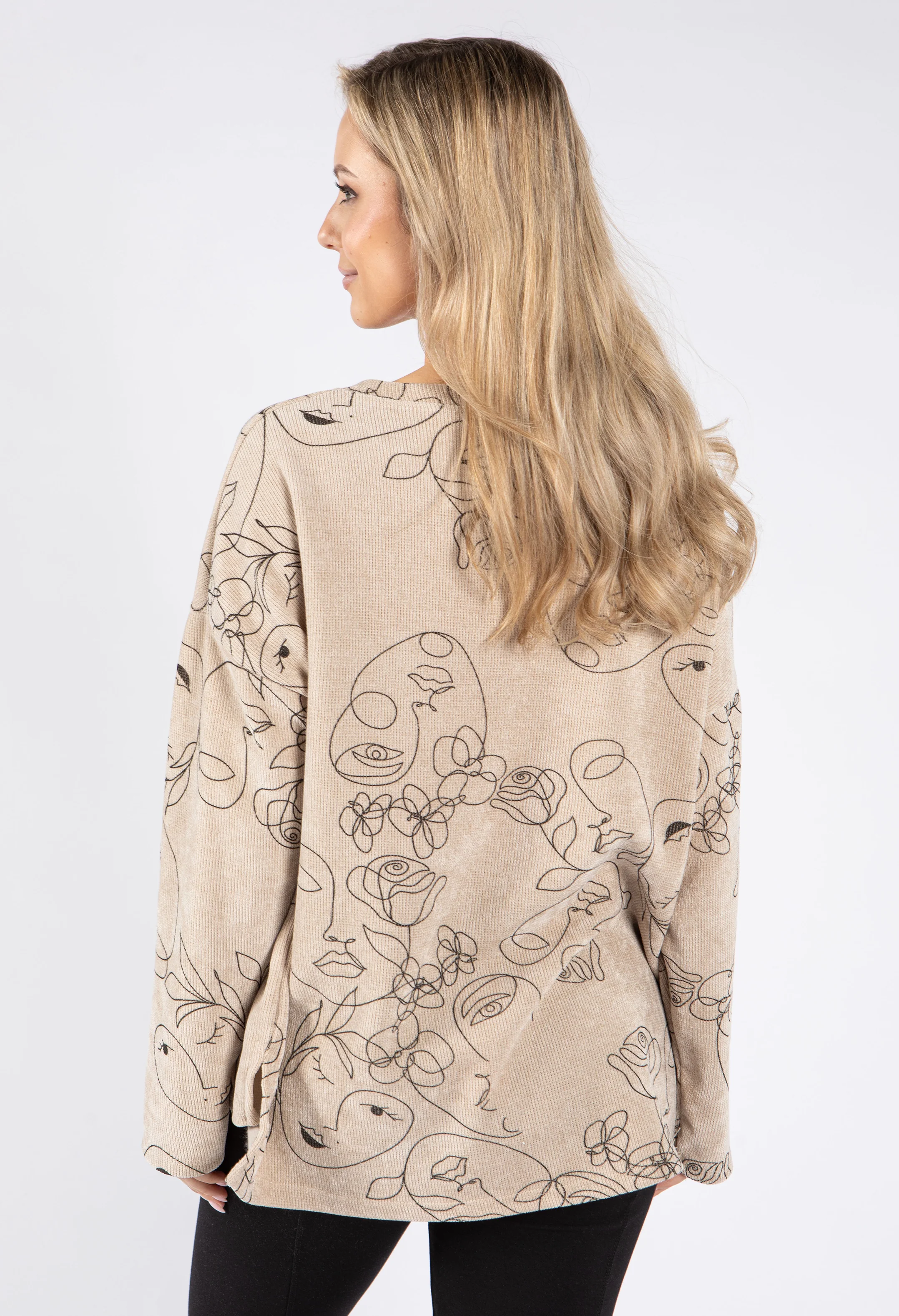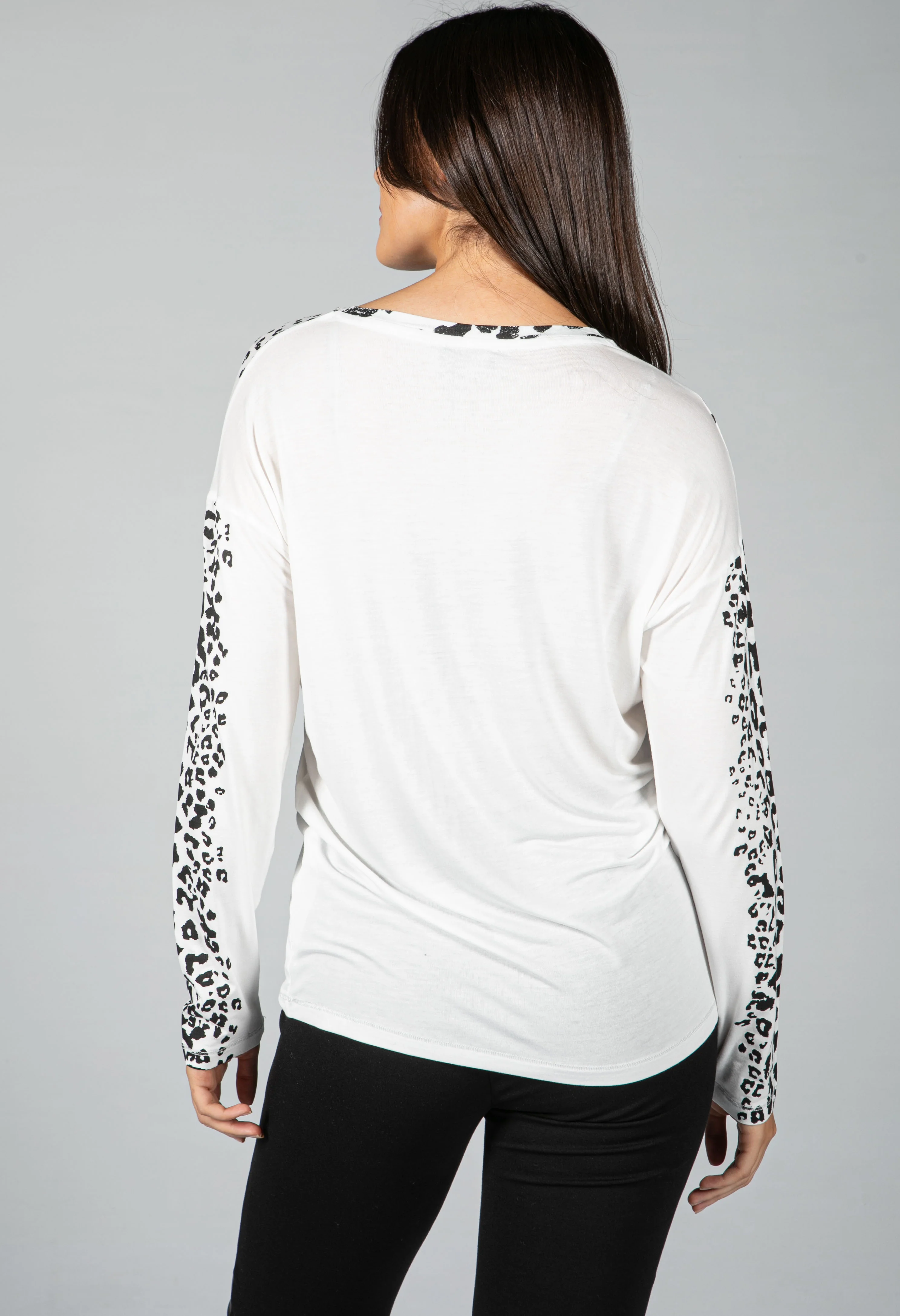 Long Sleeve Crew Neck Button Placket Knit Top with Chain Detail