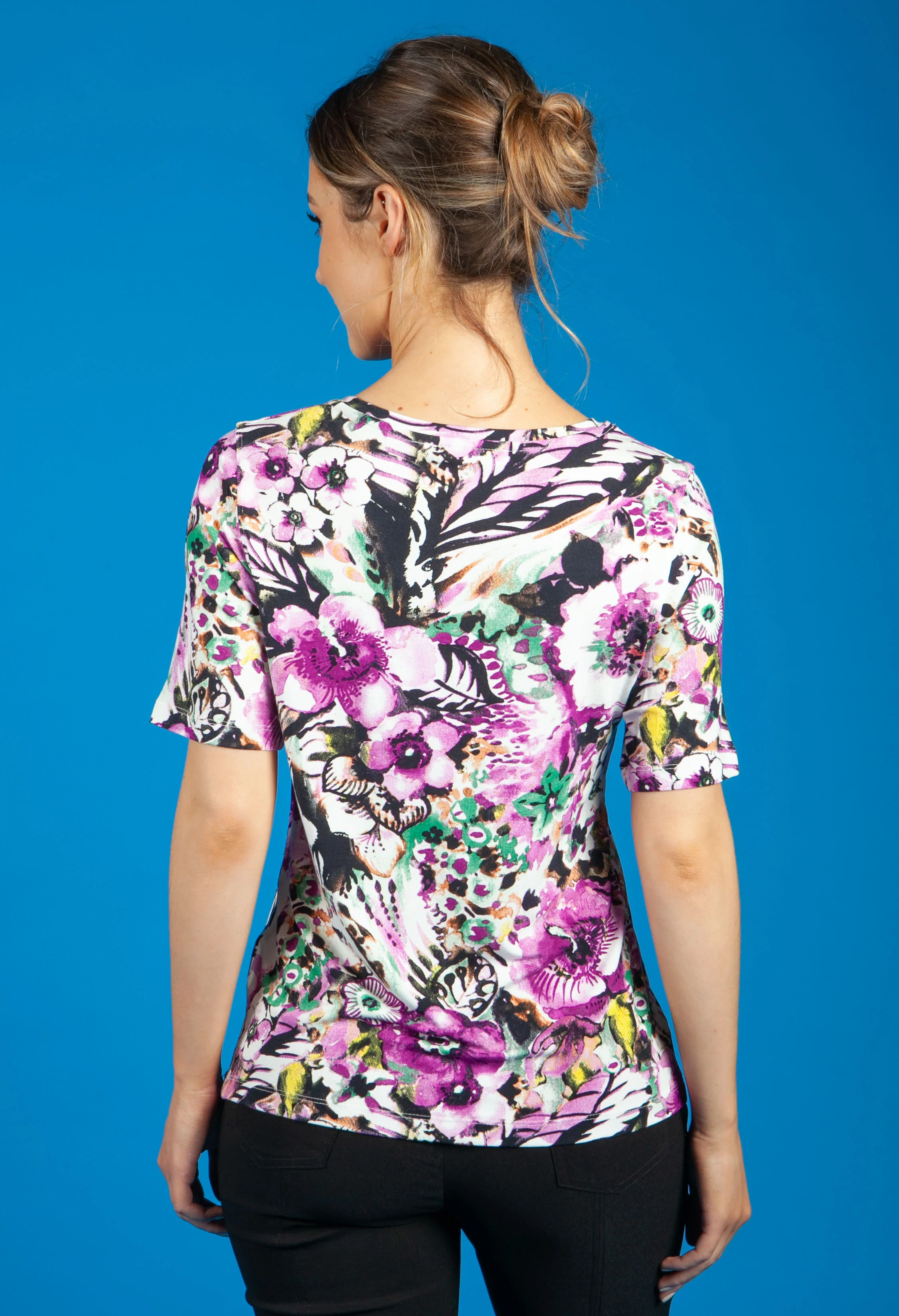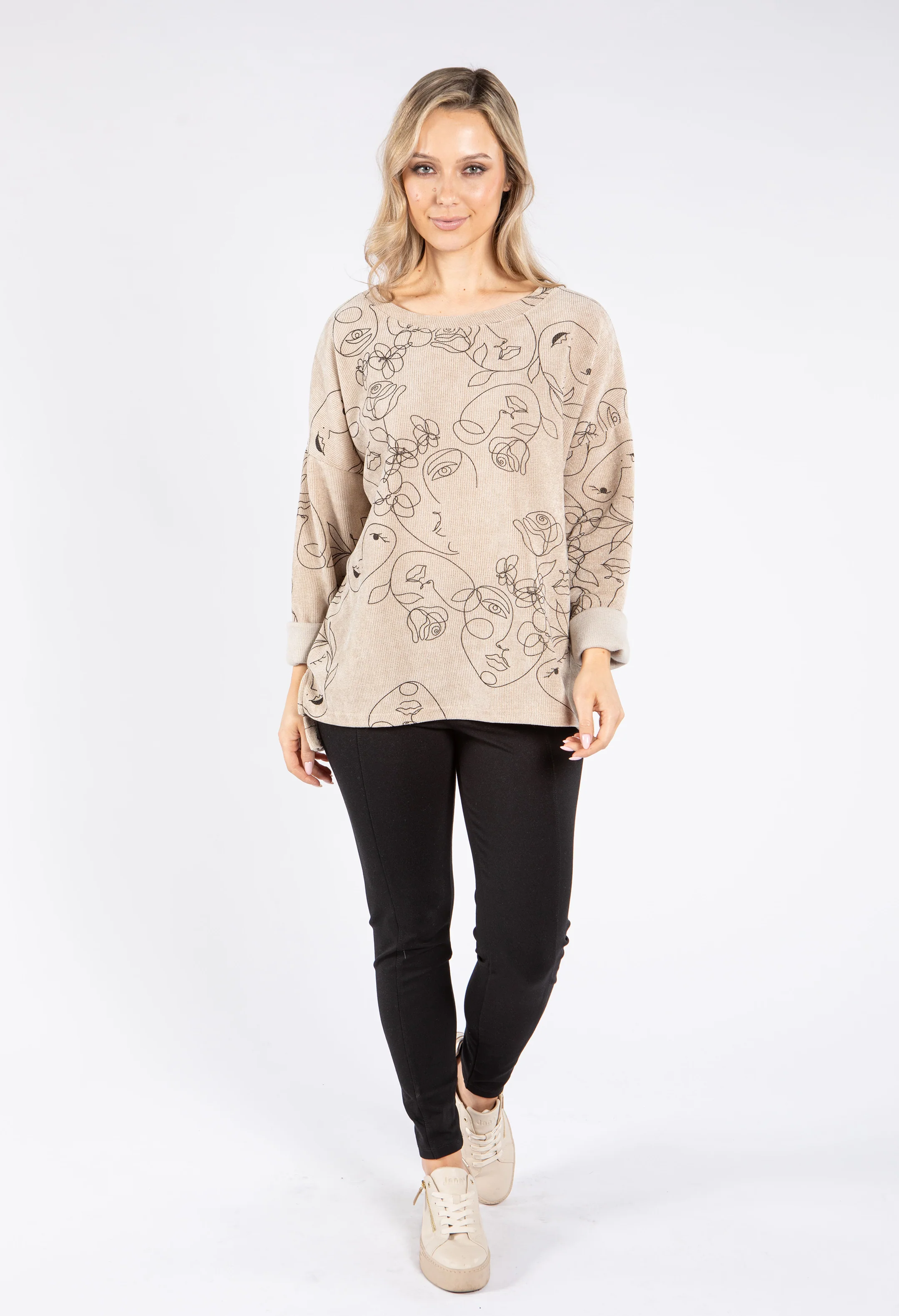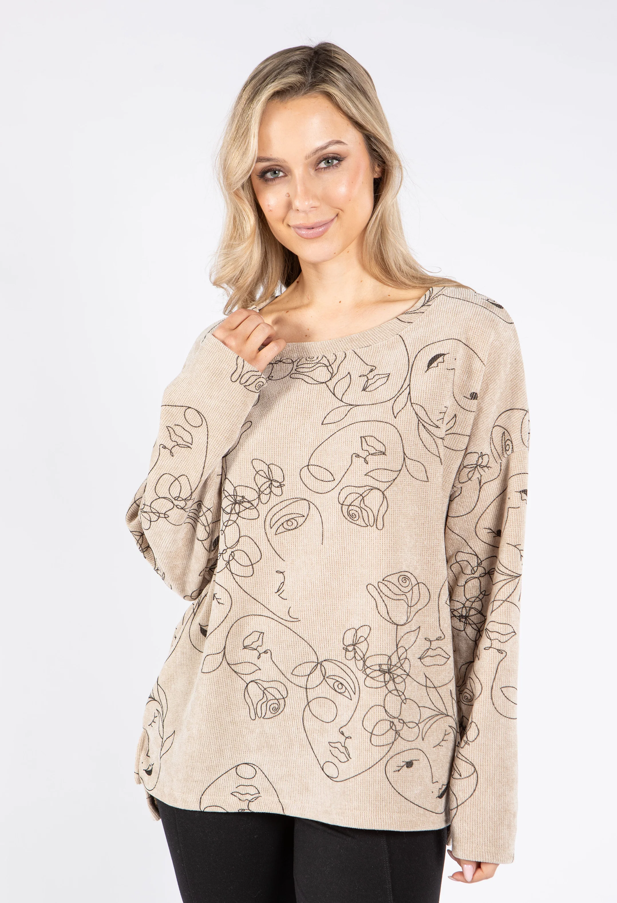 Long Sleeve Crew Neck Button Placket Knit Top with Chain Detail