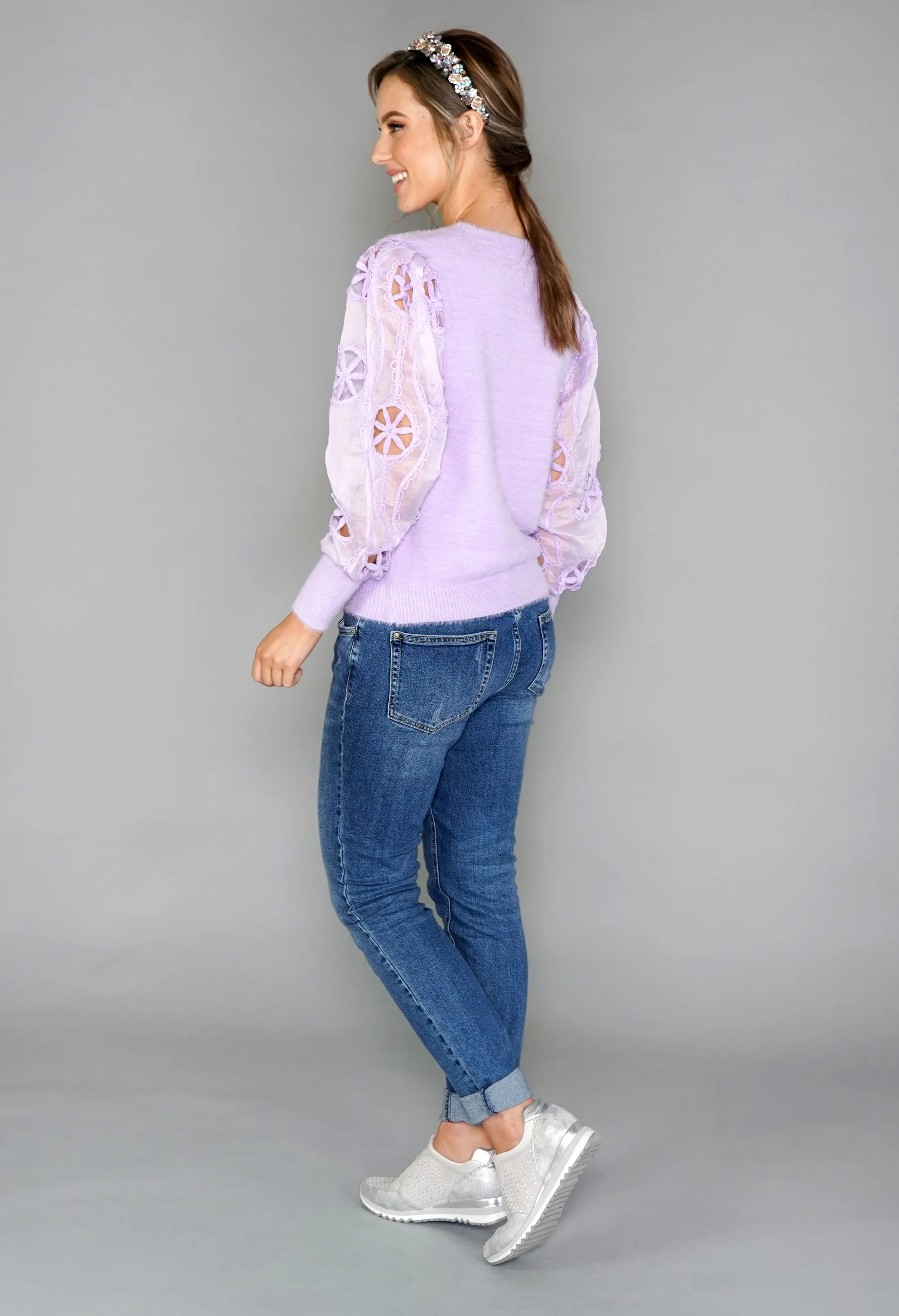 LILAC JUMPER WITH TEXTURED LACE SLEEVE