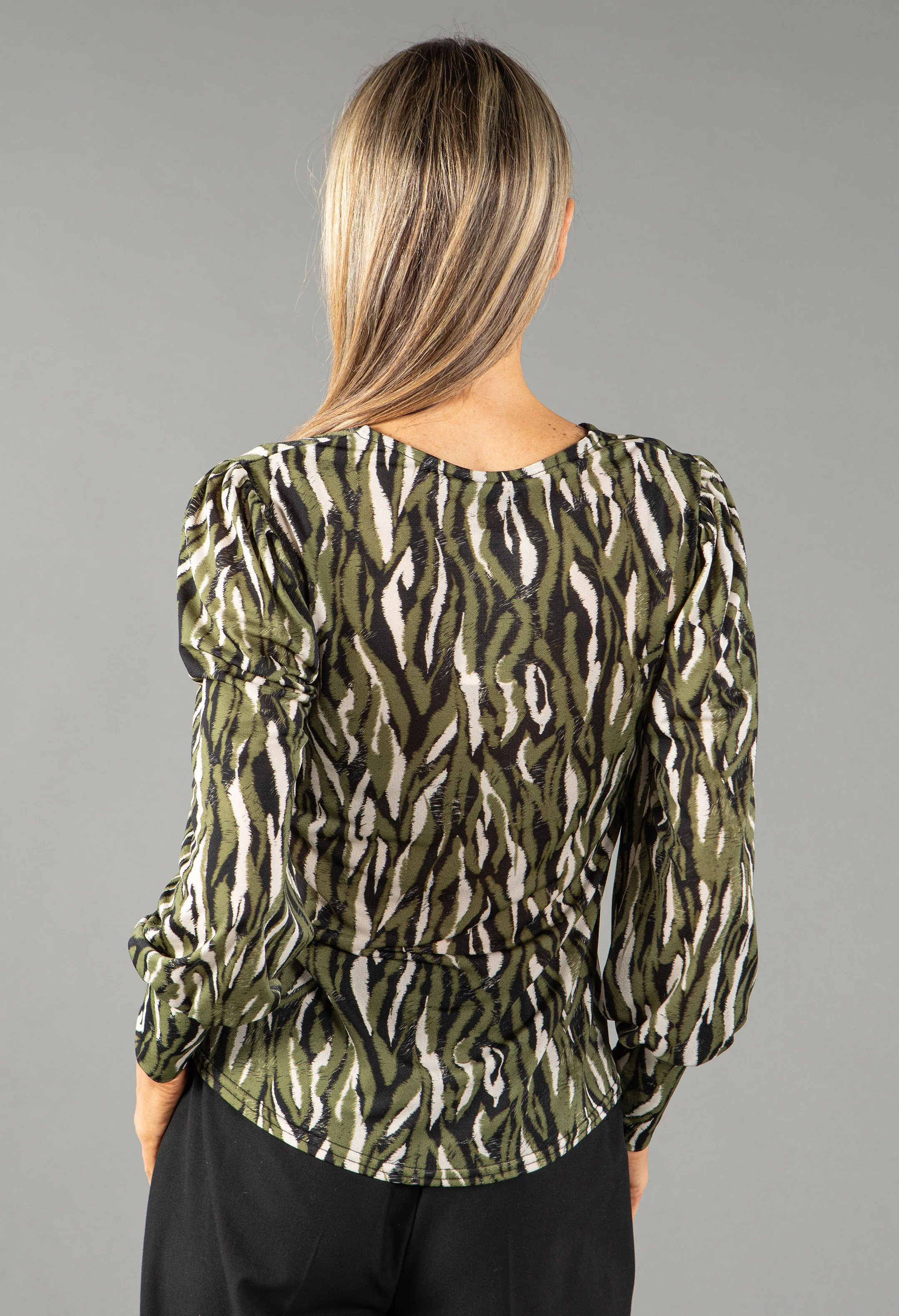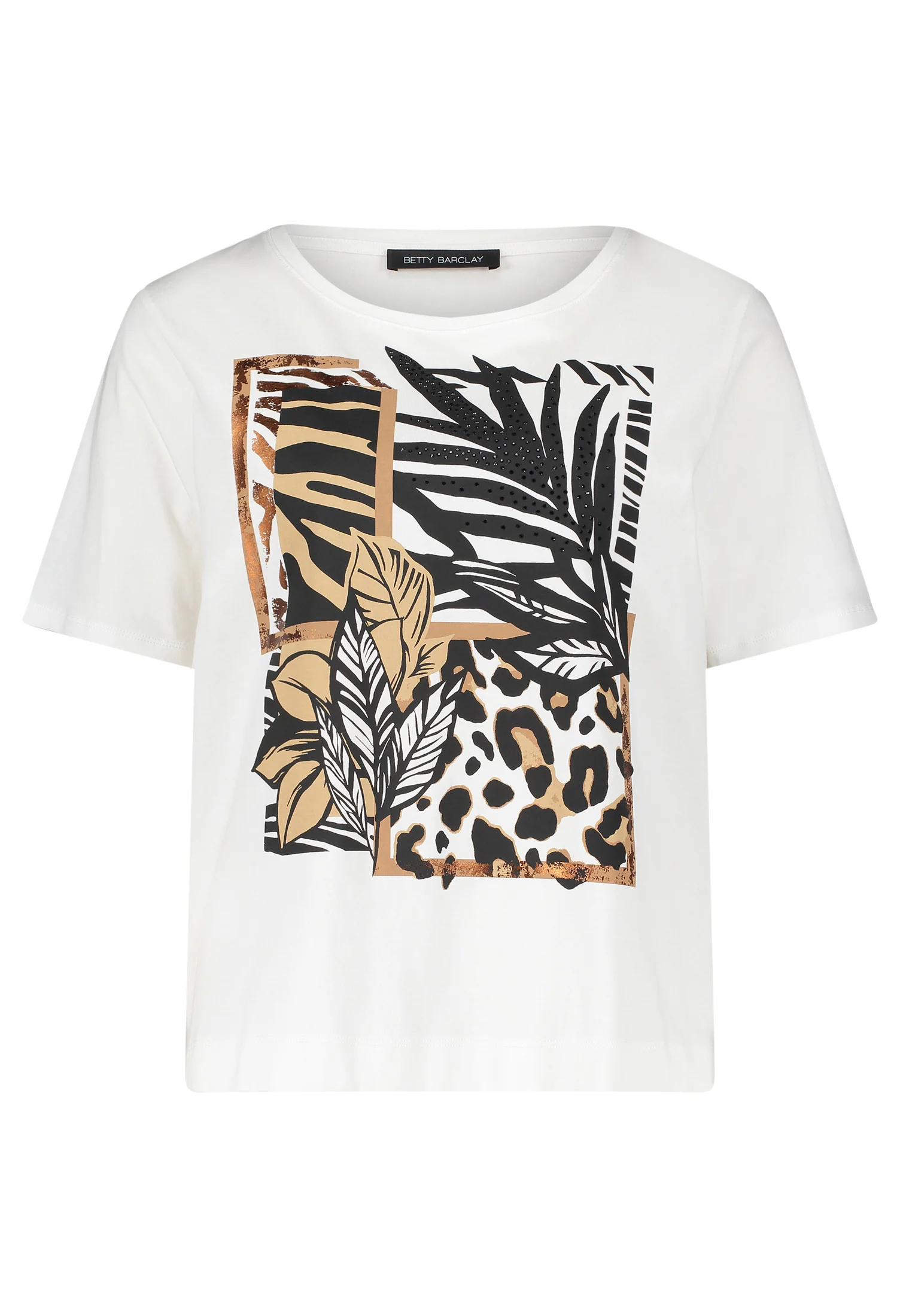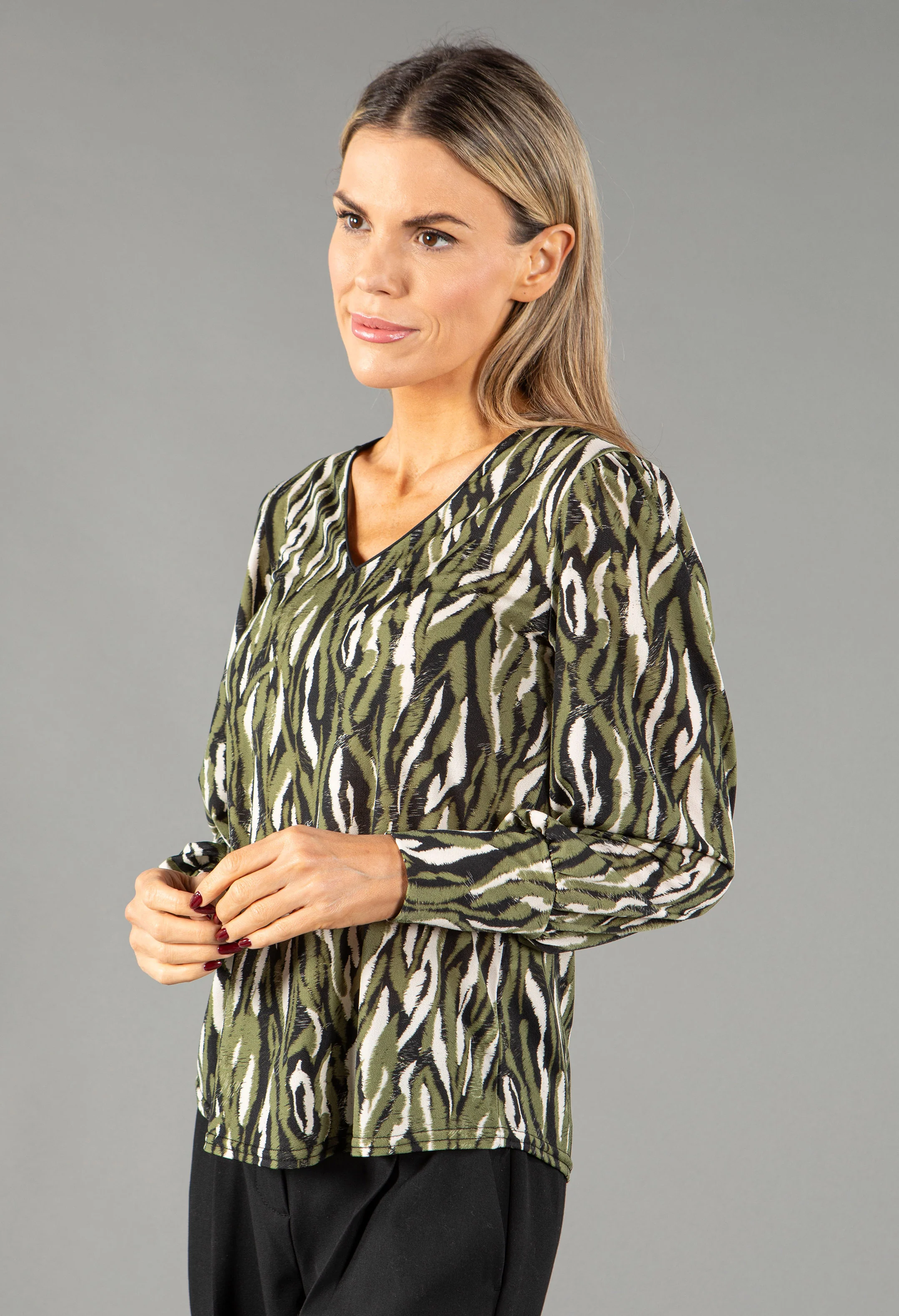 ¾ SLEEVE TOP WITH ALL OVER PRINT IN IVORY
