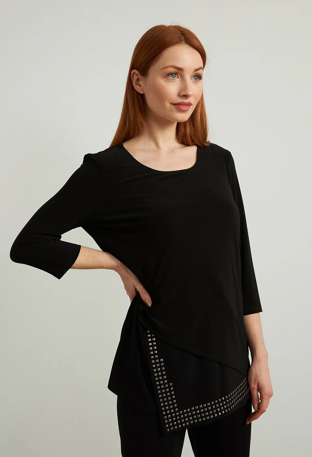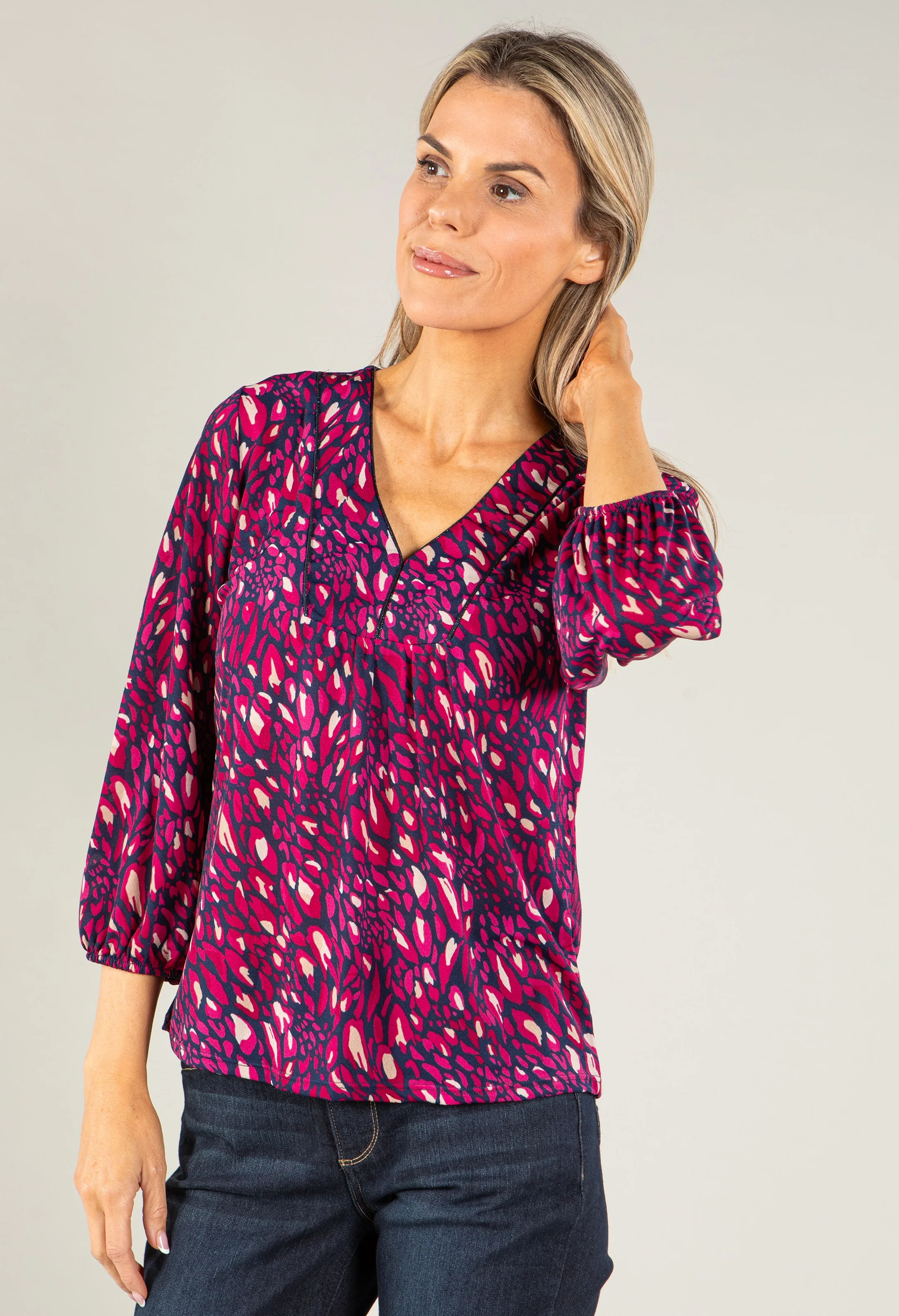 ¾ SLEEVE TOP WITH PLACEMENT PRINT IN IVORY