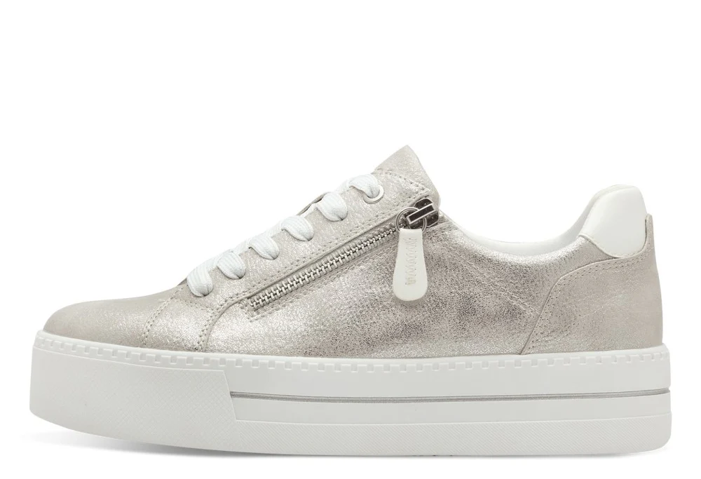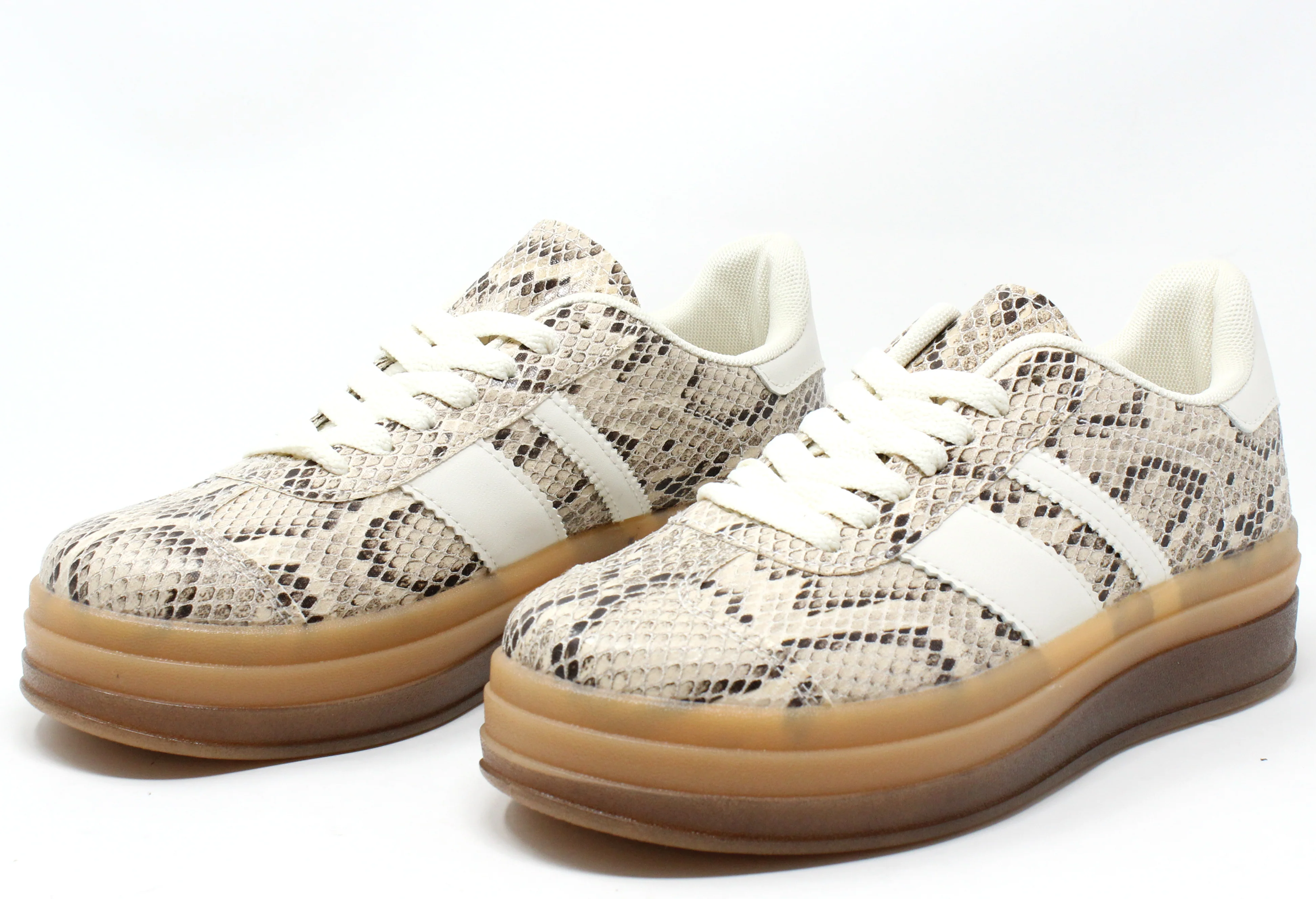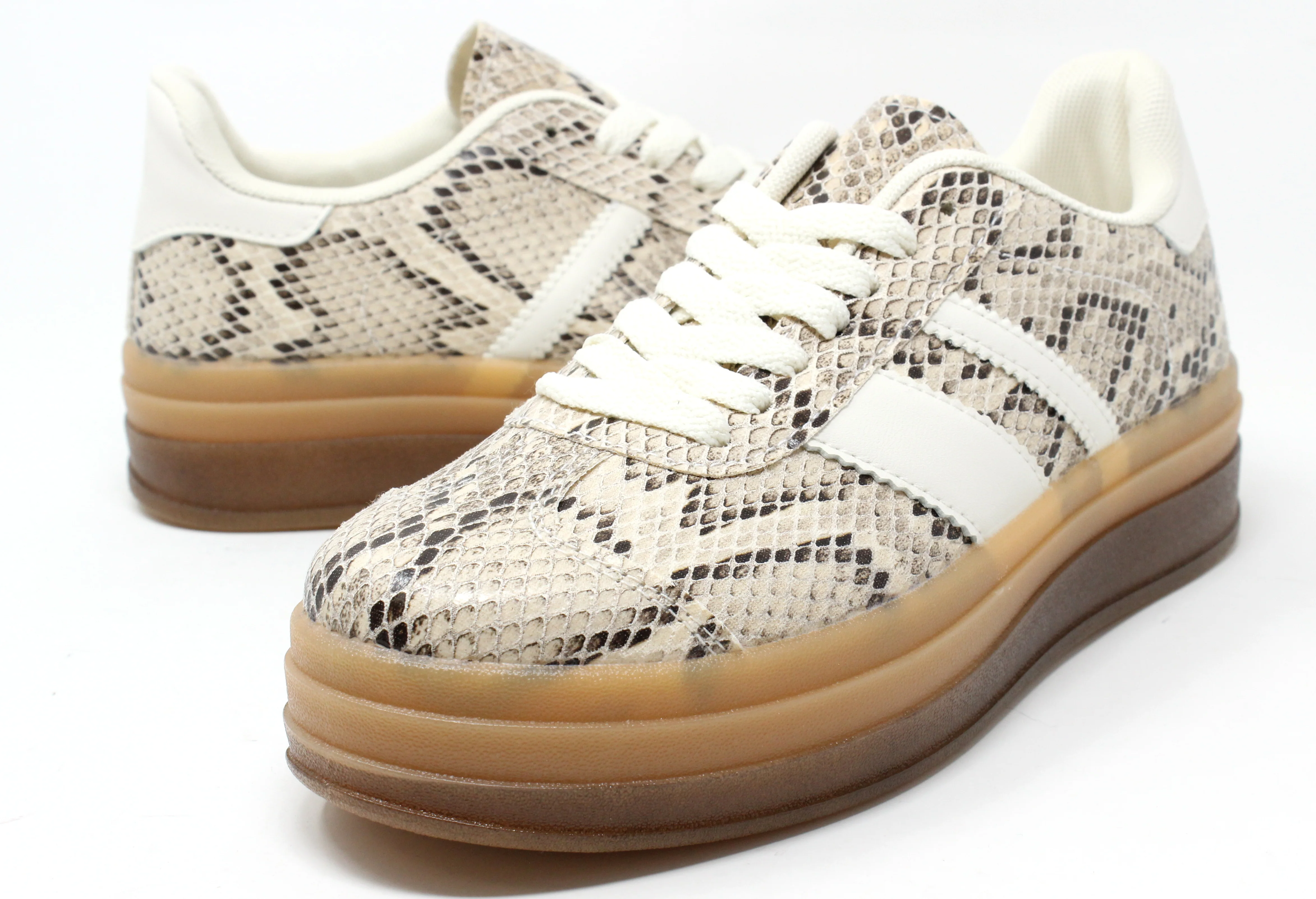 Silver Snakeskin Trainer with Chunky Rubber Sole