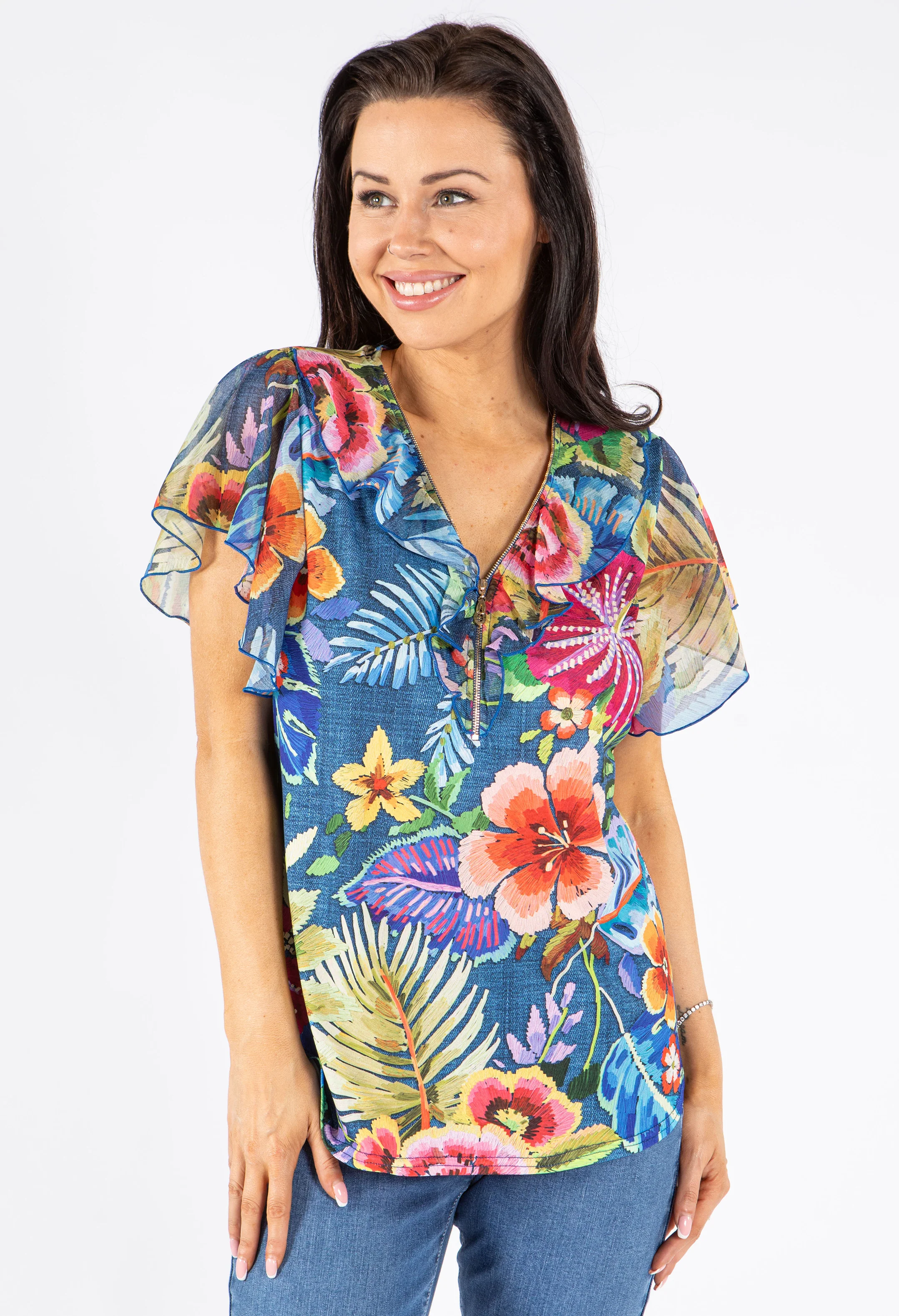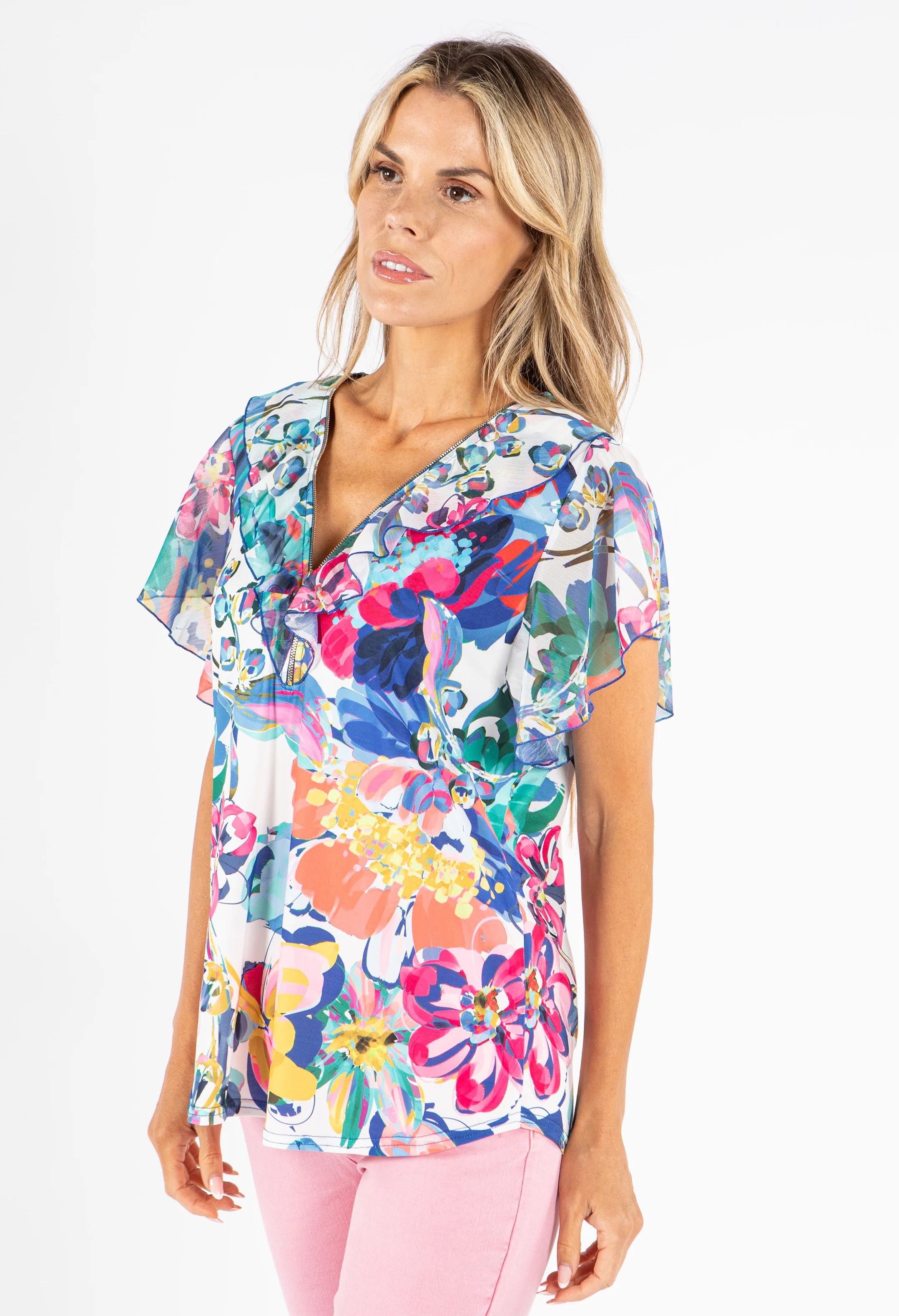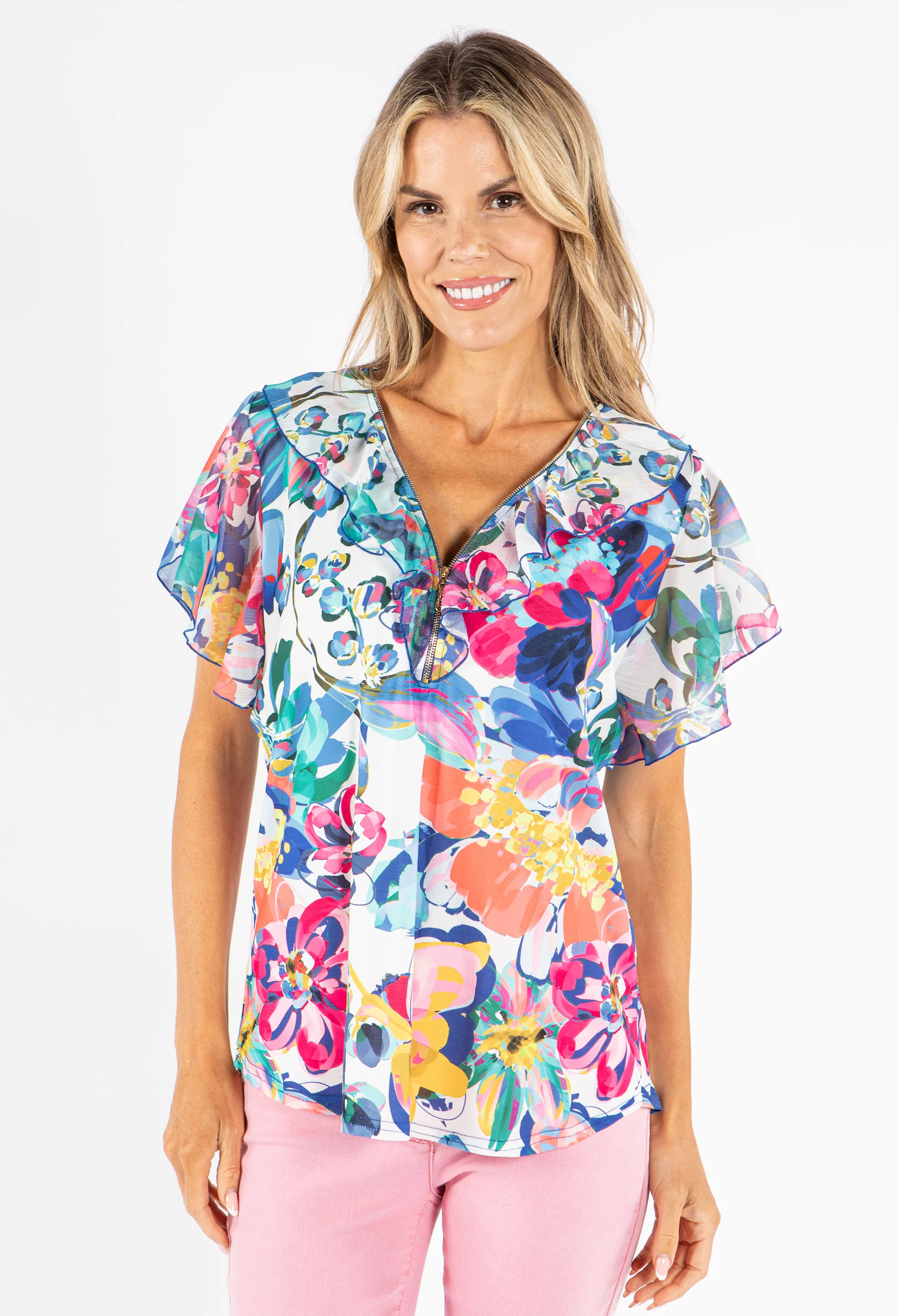 Zip-Up Floral Print Blouse