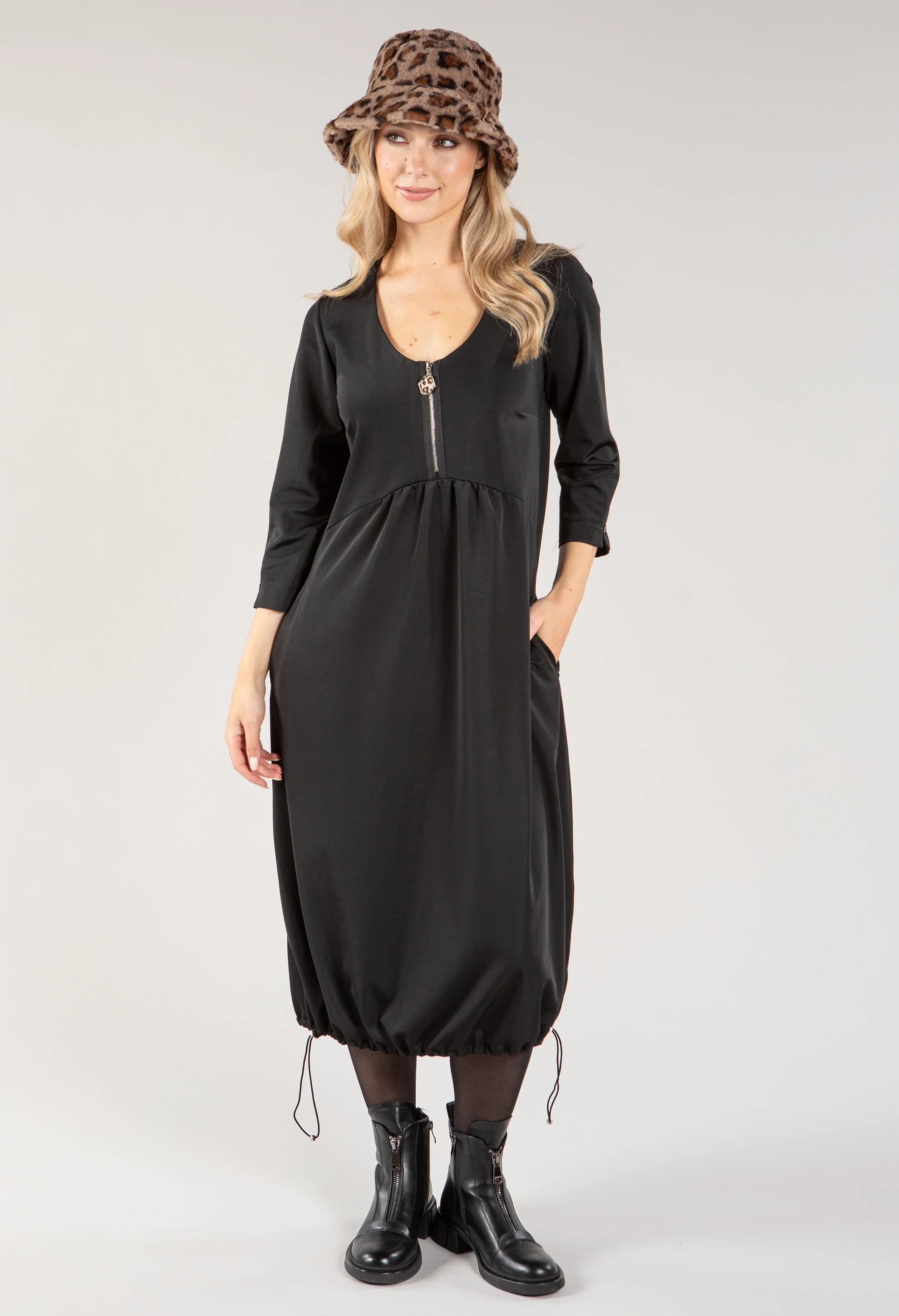 Zip Detail Neckline Dress