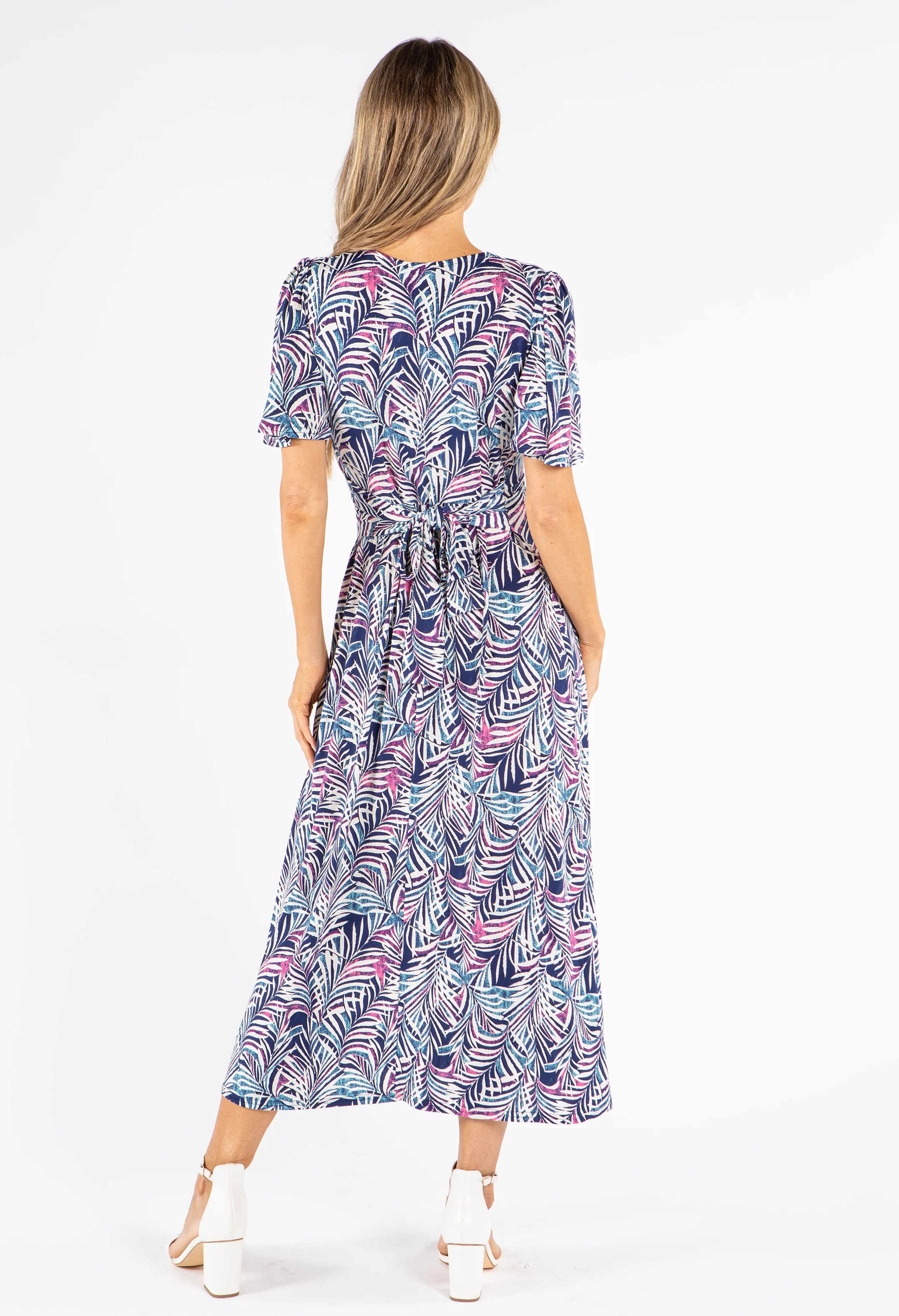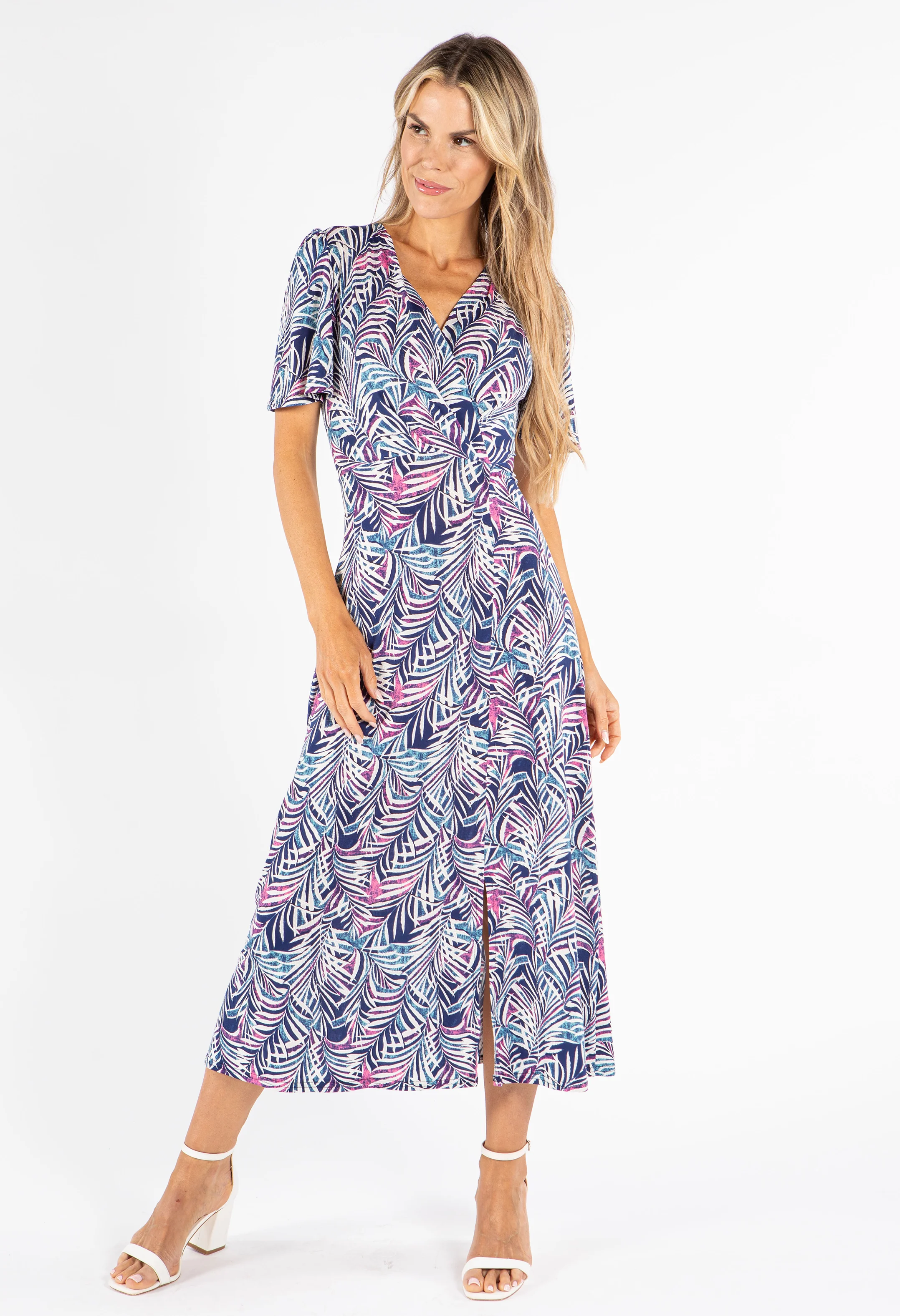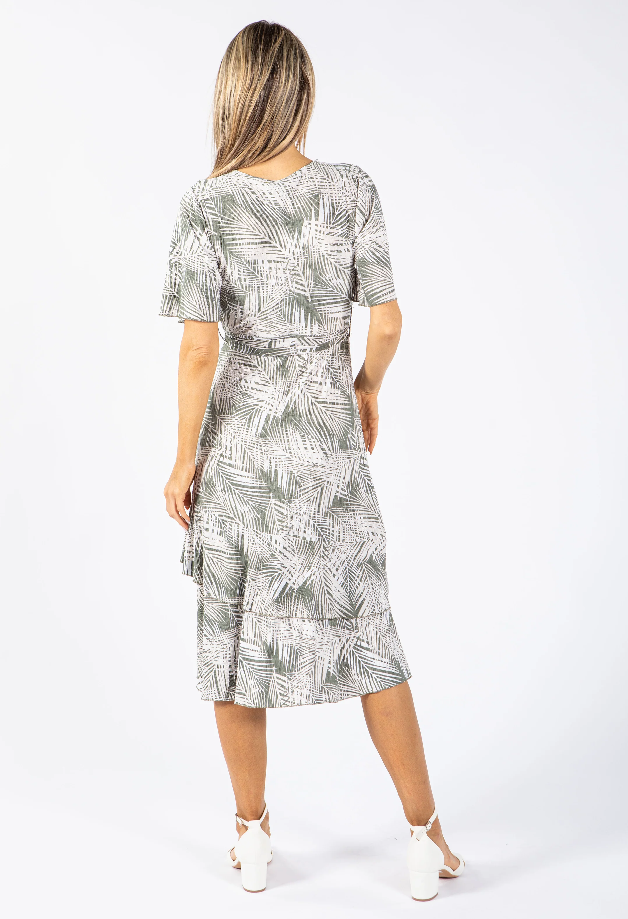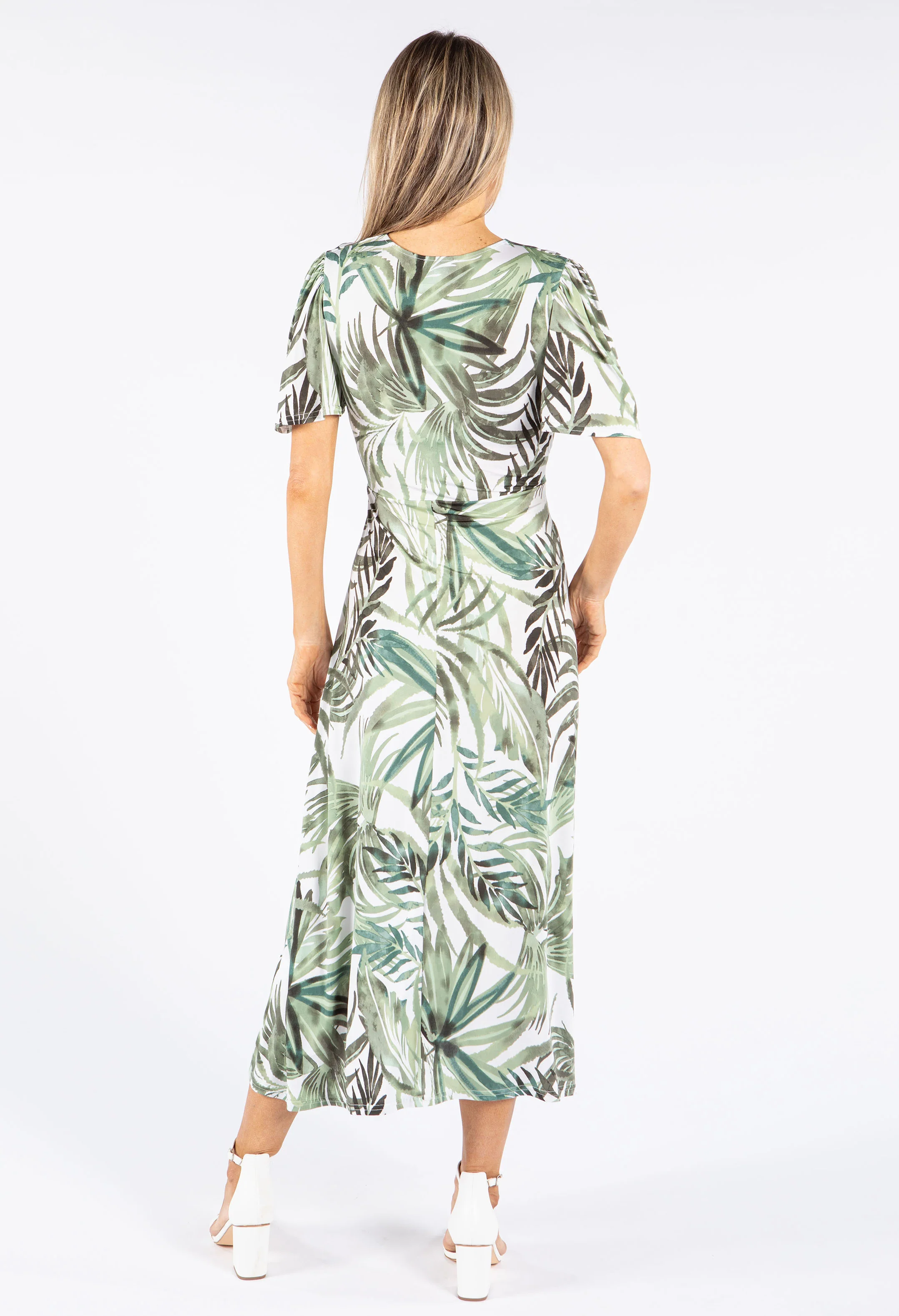 Palm Print V Neck Midi Dress