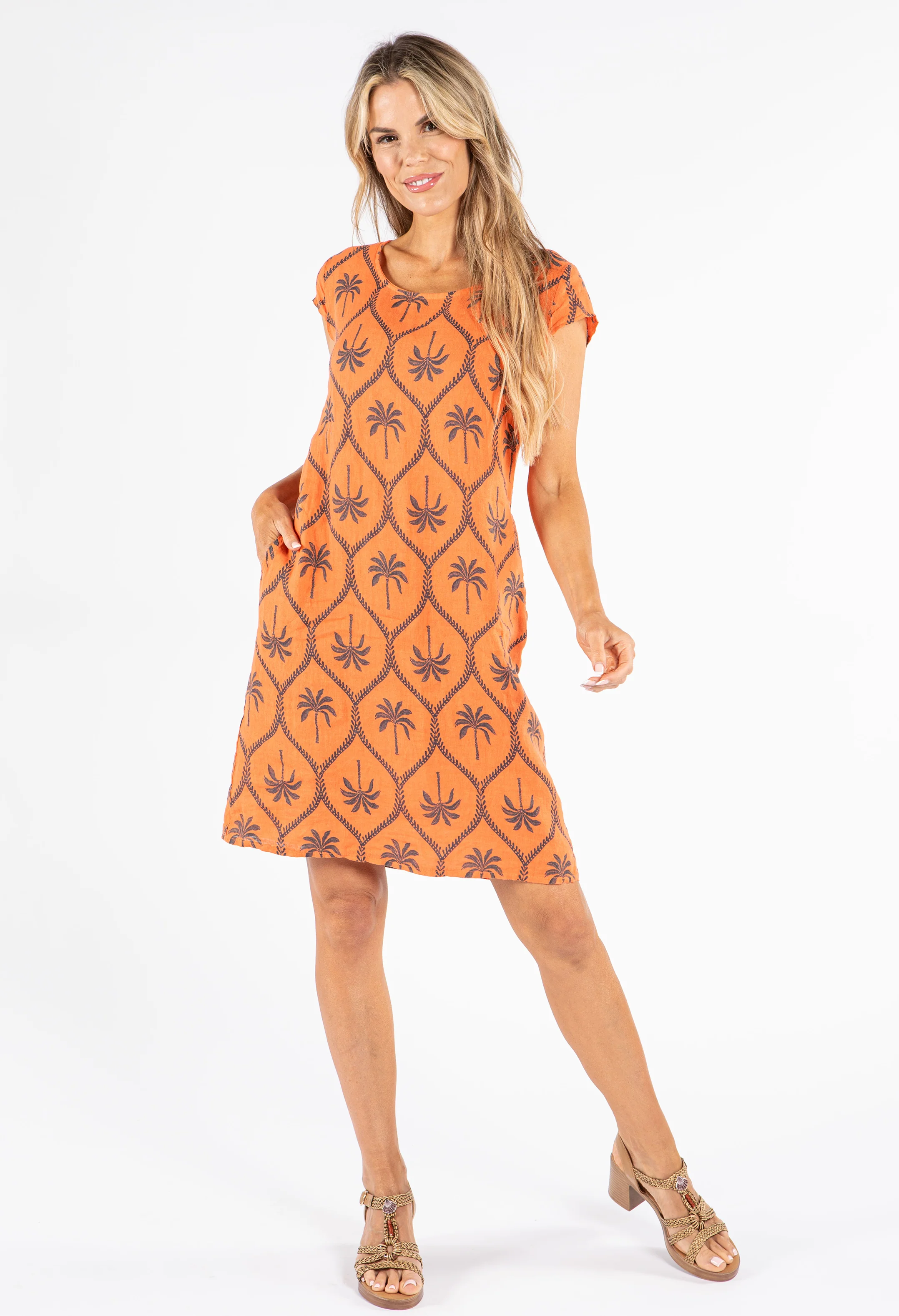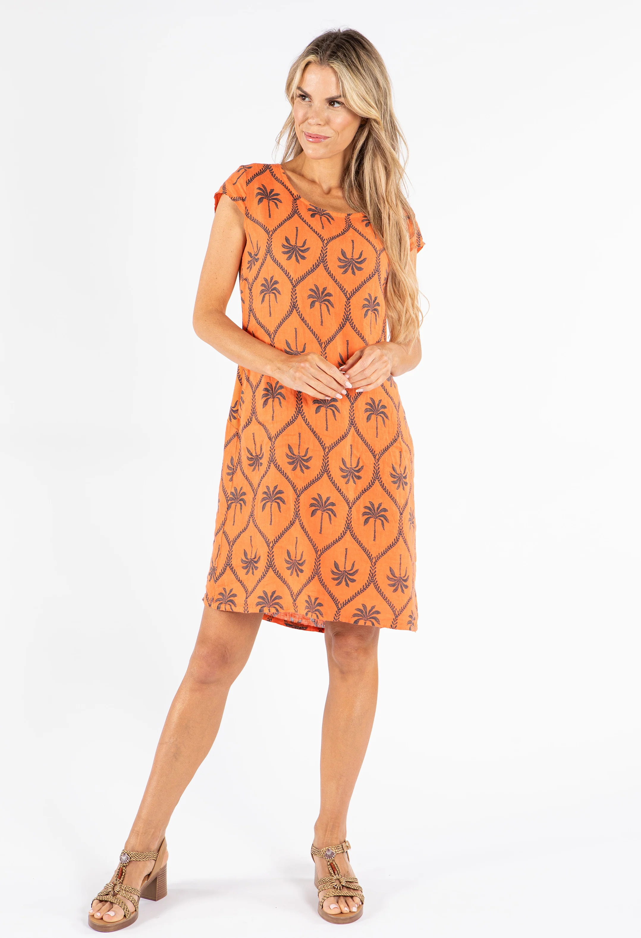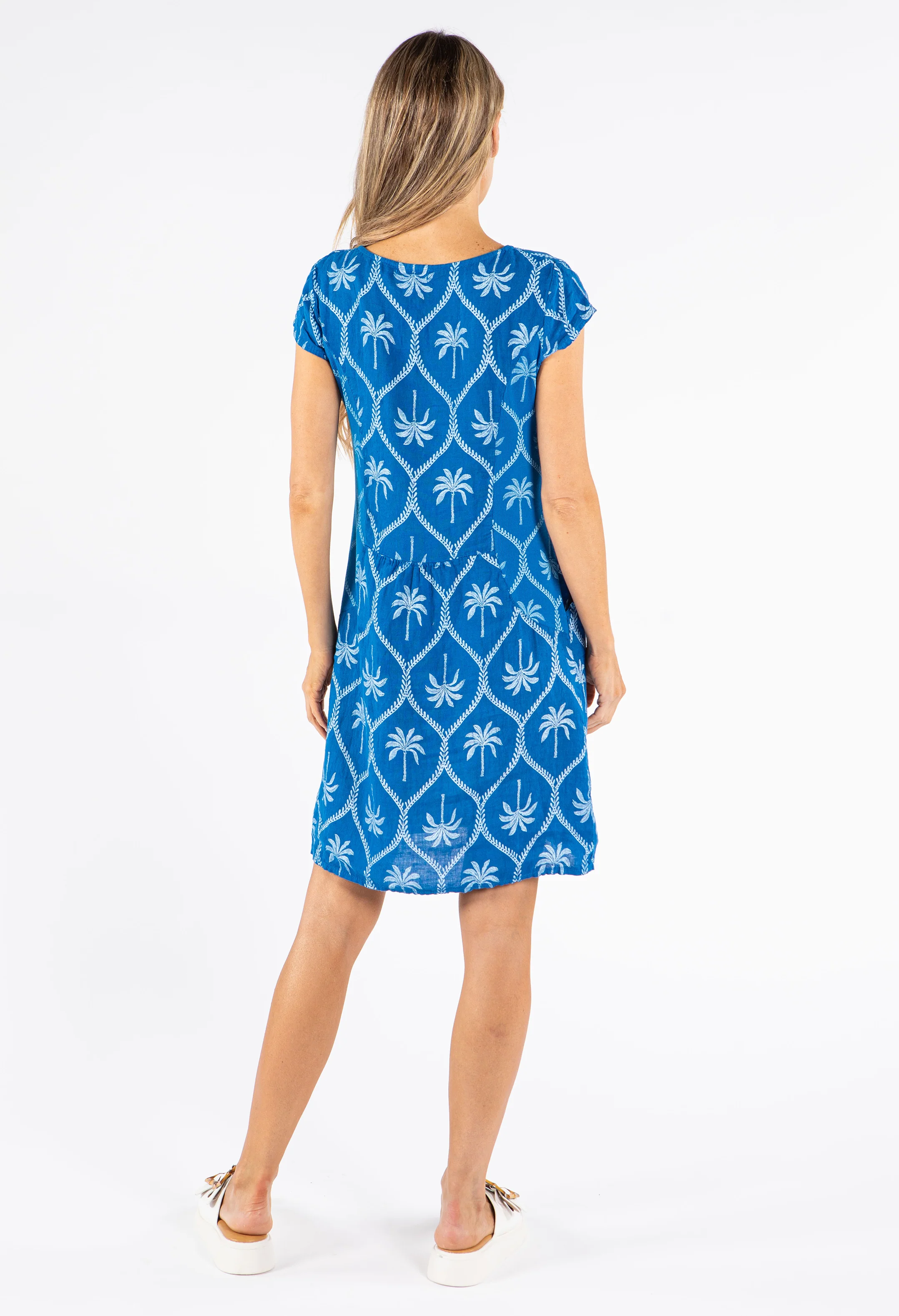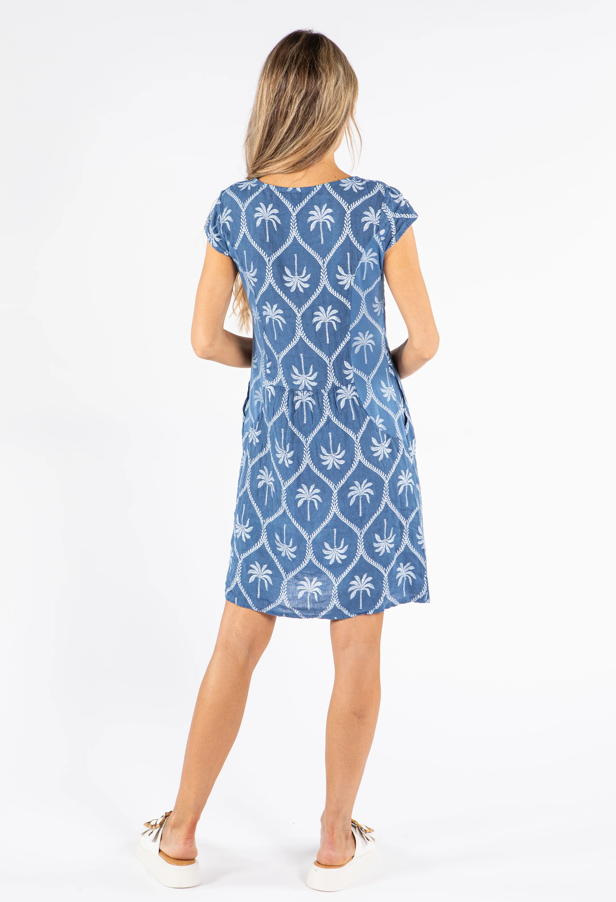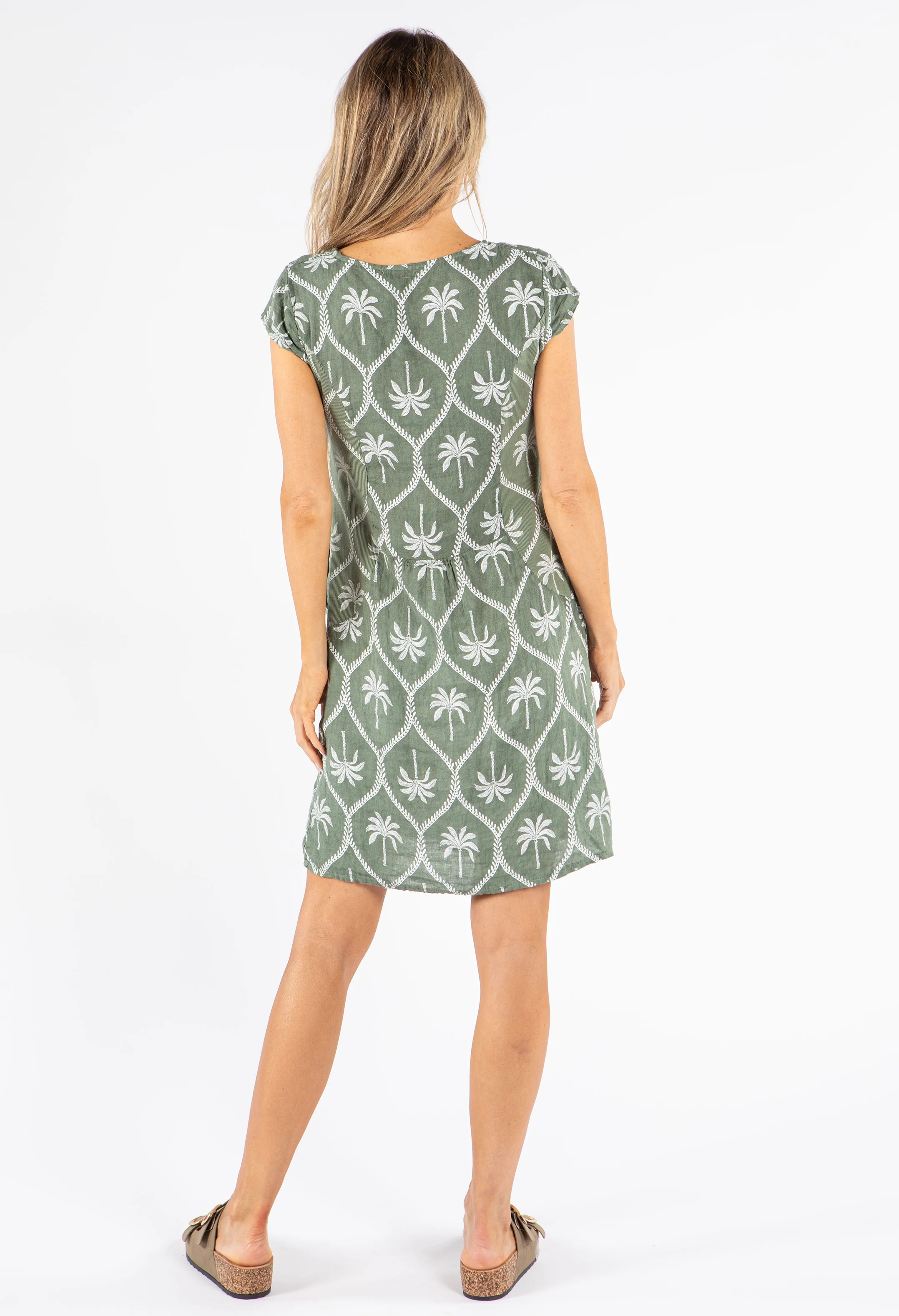 Palm Print Linen Dress